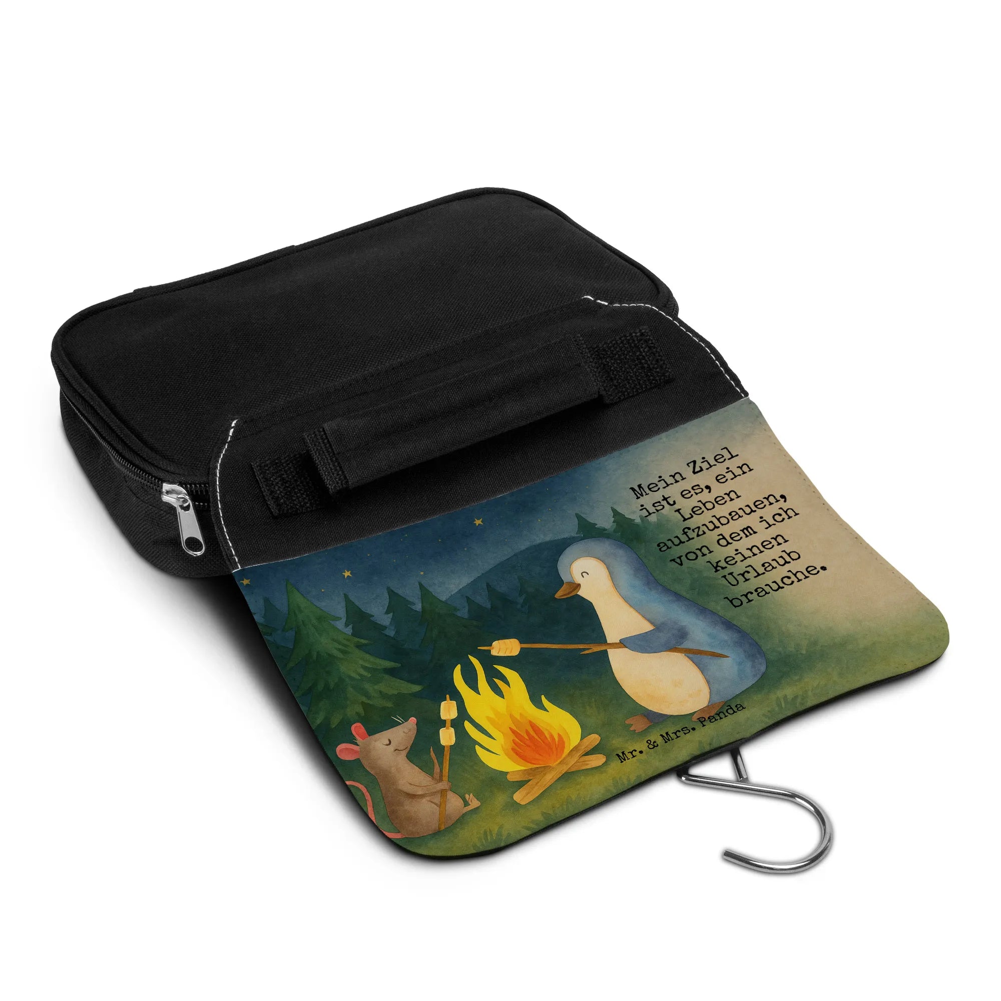 Kulturbeutel Pinguin Lagerfeuer Design - mit Spruch