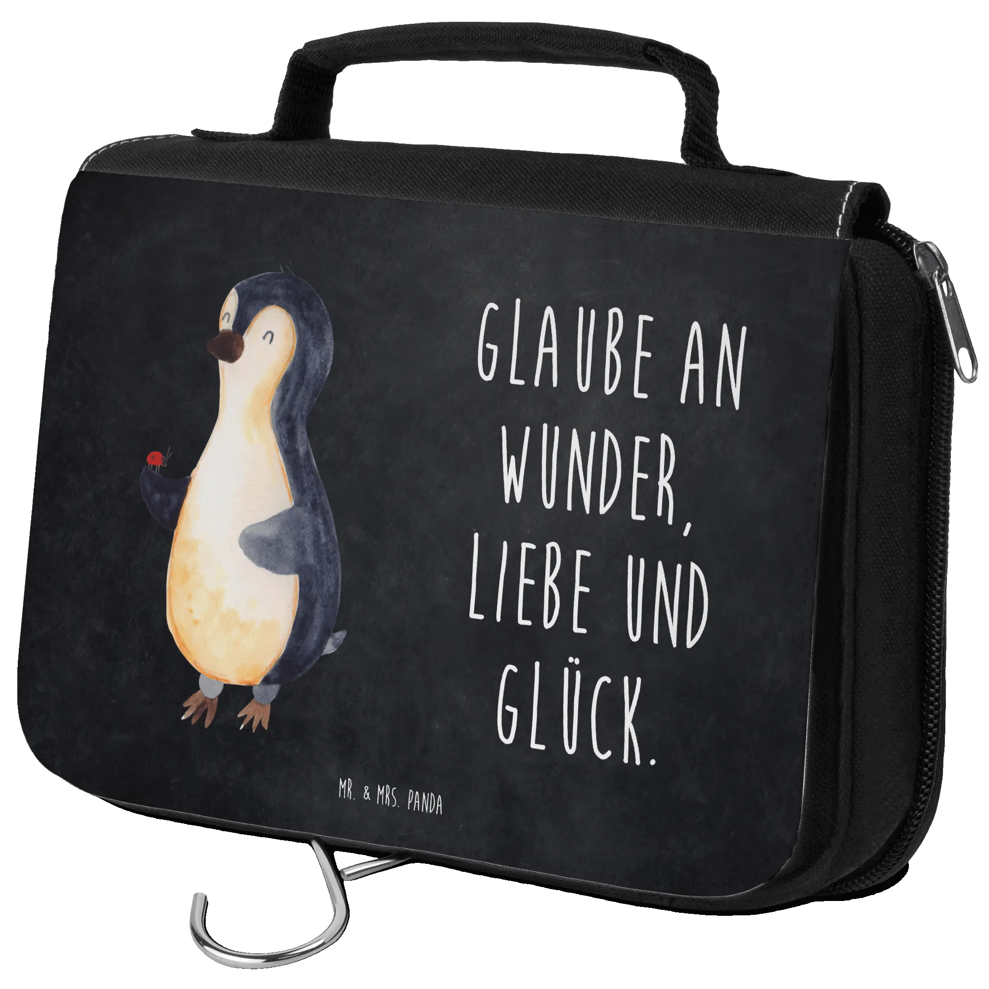 Kulturbeutel Pinguin Marienkäfer - mit Spruch - Kreidetafel