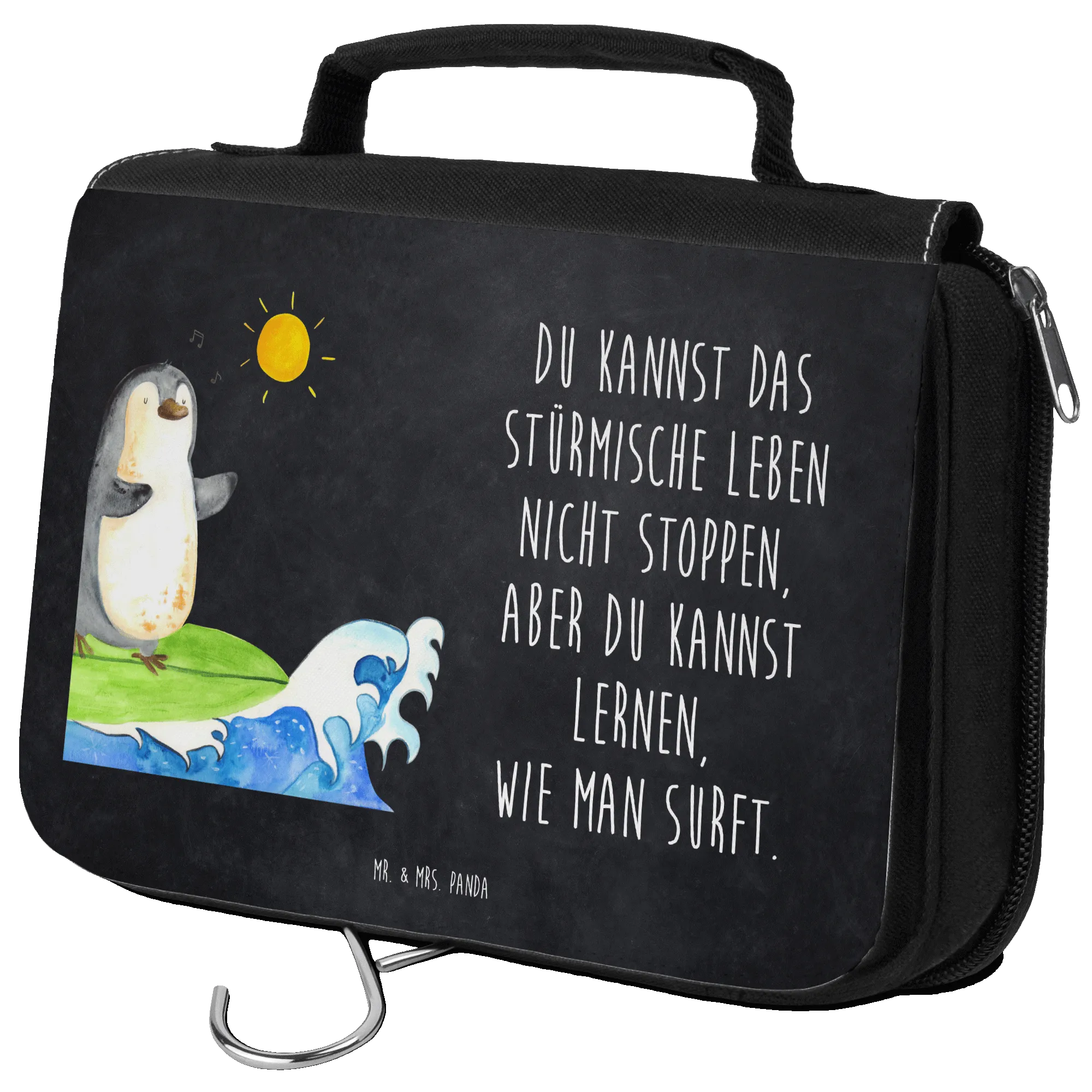 Der Kulturbeutel Pinguin Surfer von Mr. & Mrs. Panda ist das perfekte Accessoire für alle, die das Surf-Feeling lieben und ihre Kosmetikprodukte stilvoll verstauen möchten. Dank des süßen Pinguin-Motivs, das einen coolen Pinguin auf seinem Surfbrett zeigt, bringst du frischen Wind in deine Reiseutensilien. Egal, ob beim Urlaub in Portugal oder beim Wellenreiten in Hawaii, mit diesem Kulturbeutel hast du nicht nur dein persönliches Styling immer dabei, sondern auch einen tollen Begleiter, der dich an deine Träume erinnert. Der Slogan "Du kannst das stürmische Leben nicht stoppen, aber du kannst lernen, wie man surft." ist eine wundervolle Ermutigung, die jeden Tag aufs Neue motiviert.