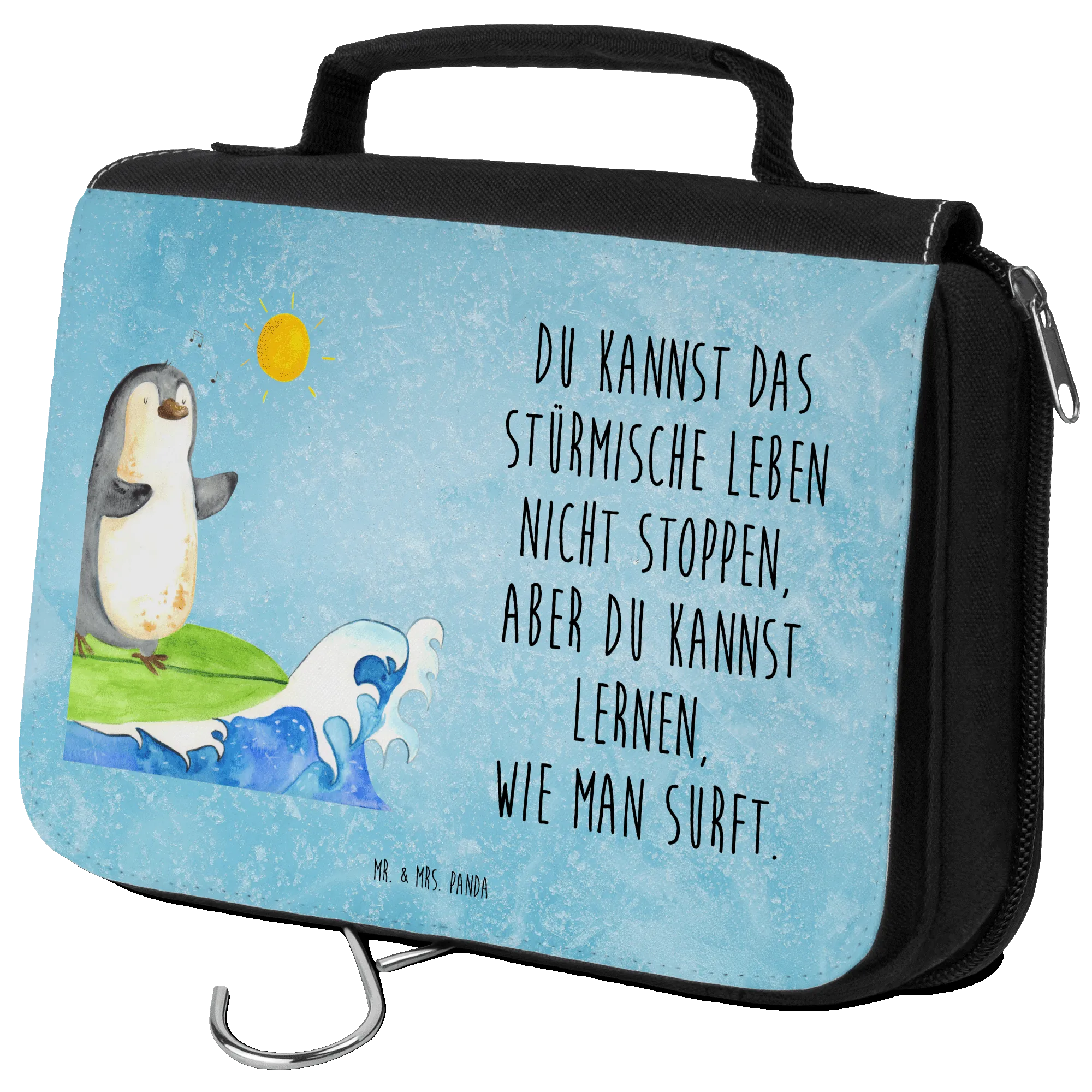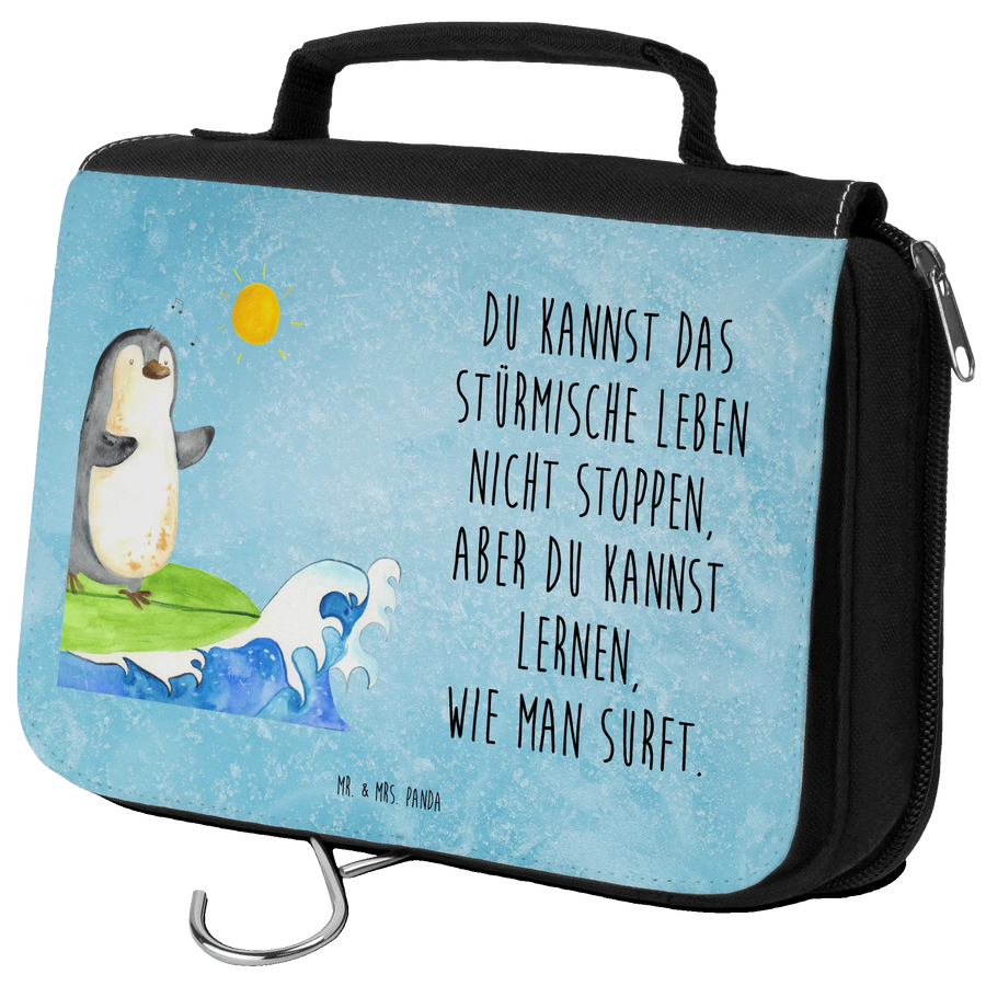Kulturbeutel Pinguin Surfer - mit Spruch - Eisblau