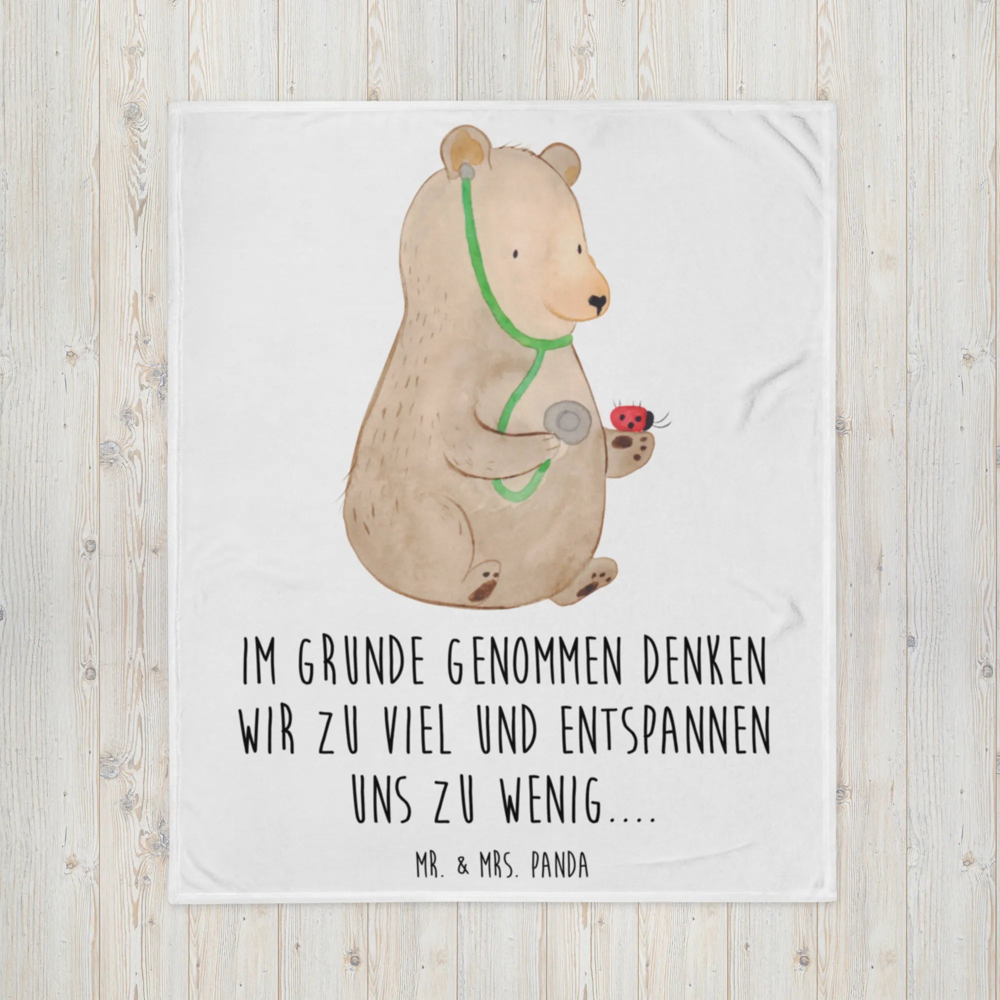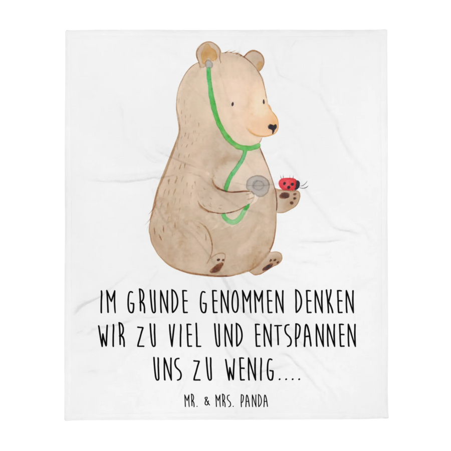 Kuscheldecke Bär Arzt - mit Spruch - Weiß