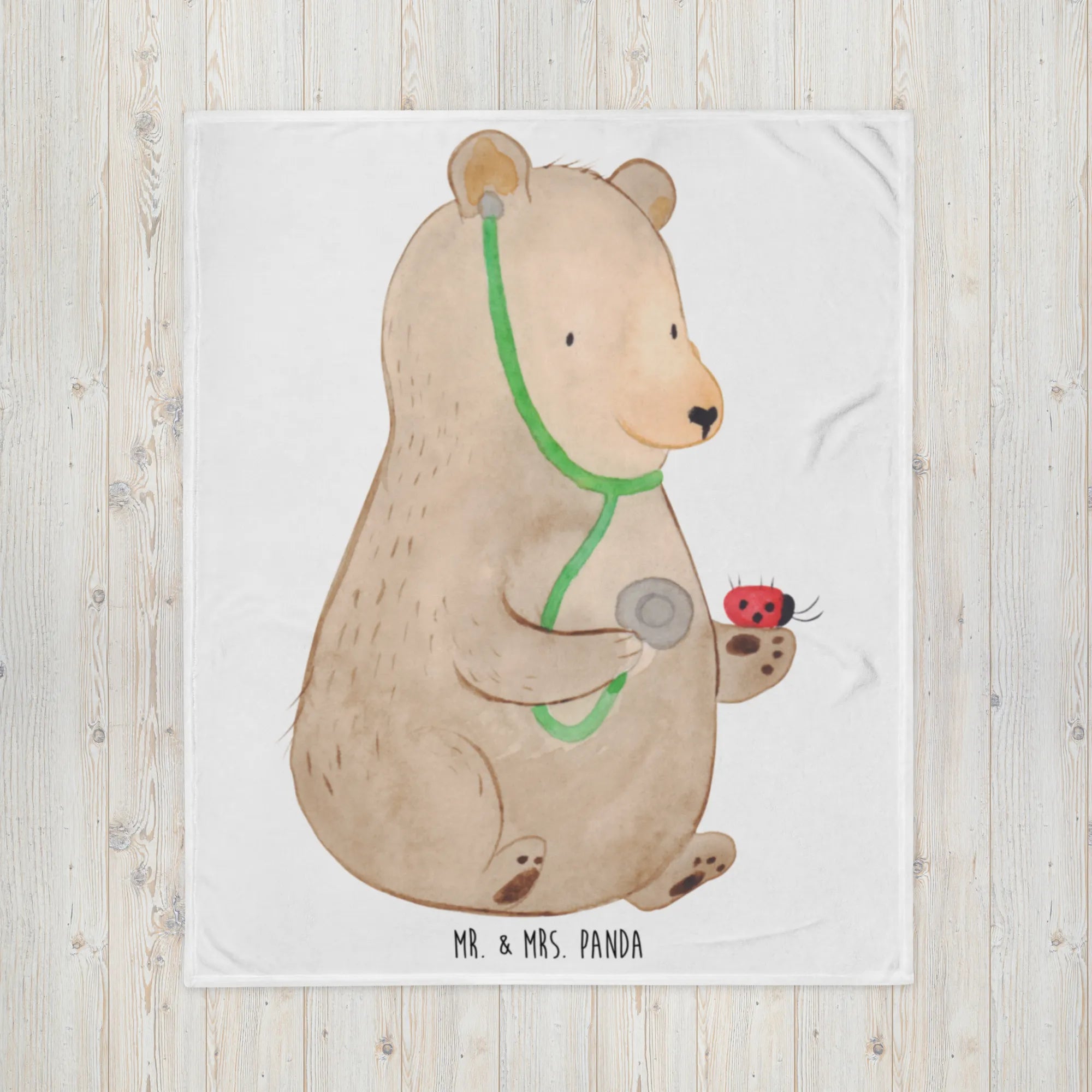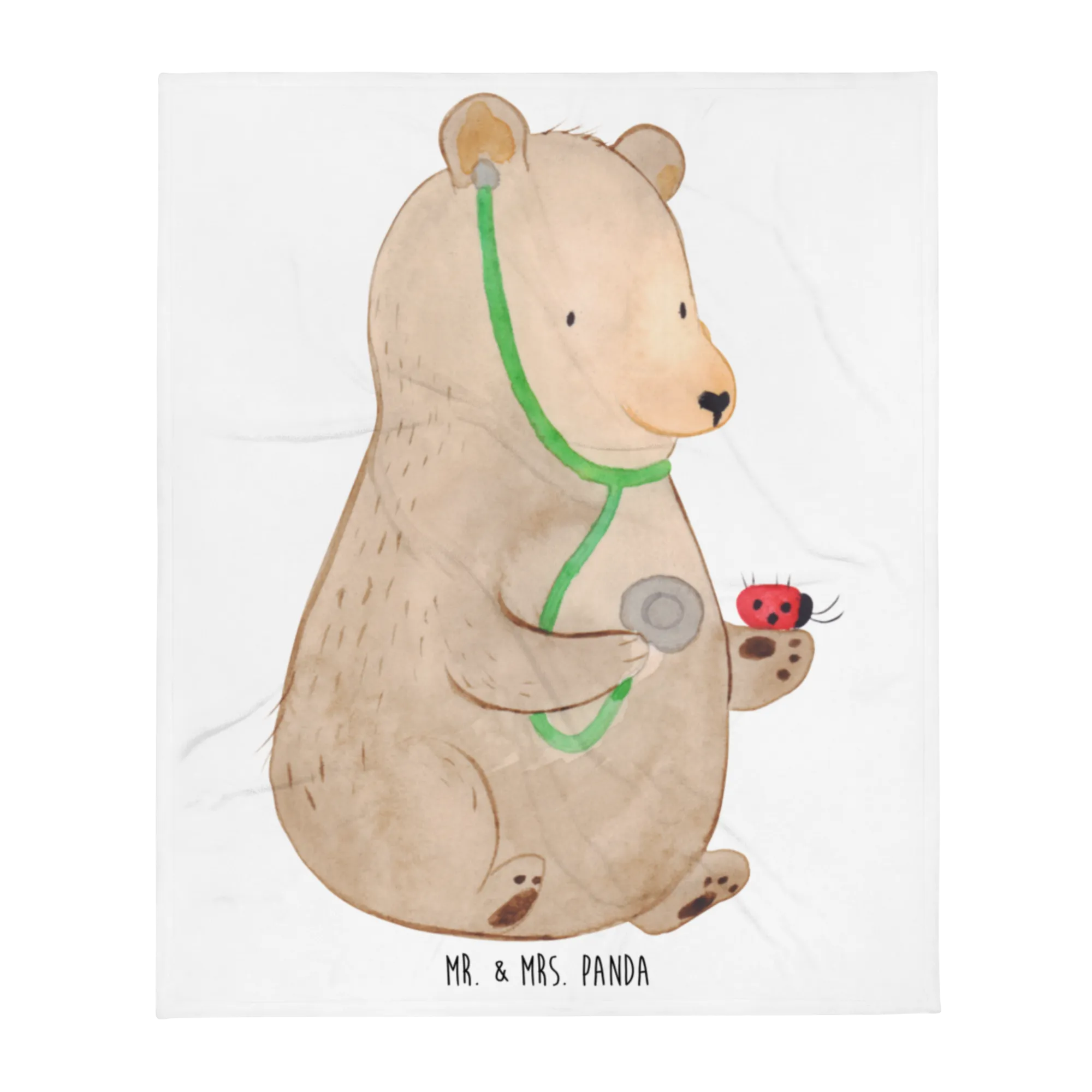 Mr. & Mrs. Panda Motiv – Bär Arzt mit Marienkäfer | Süßes Kinder-Design für T-Shirt, Kissen & Poster