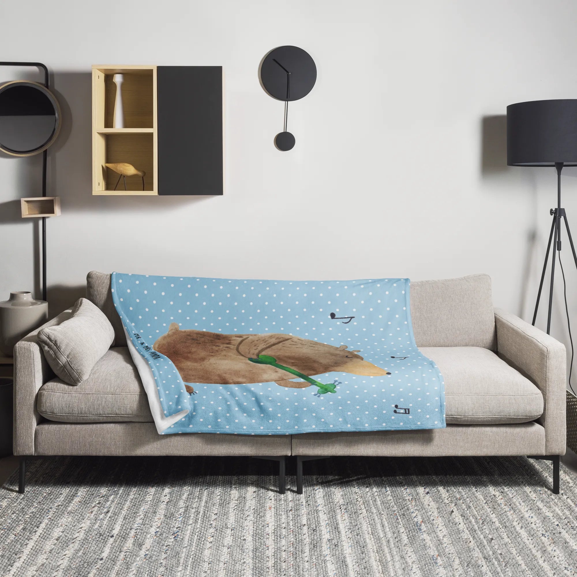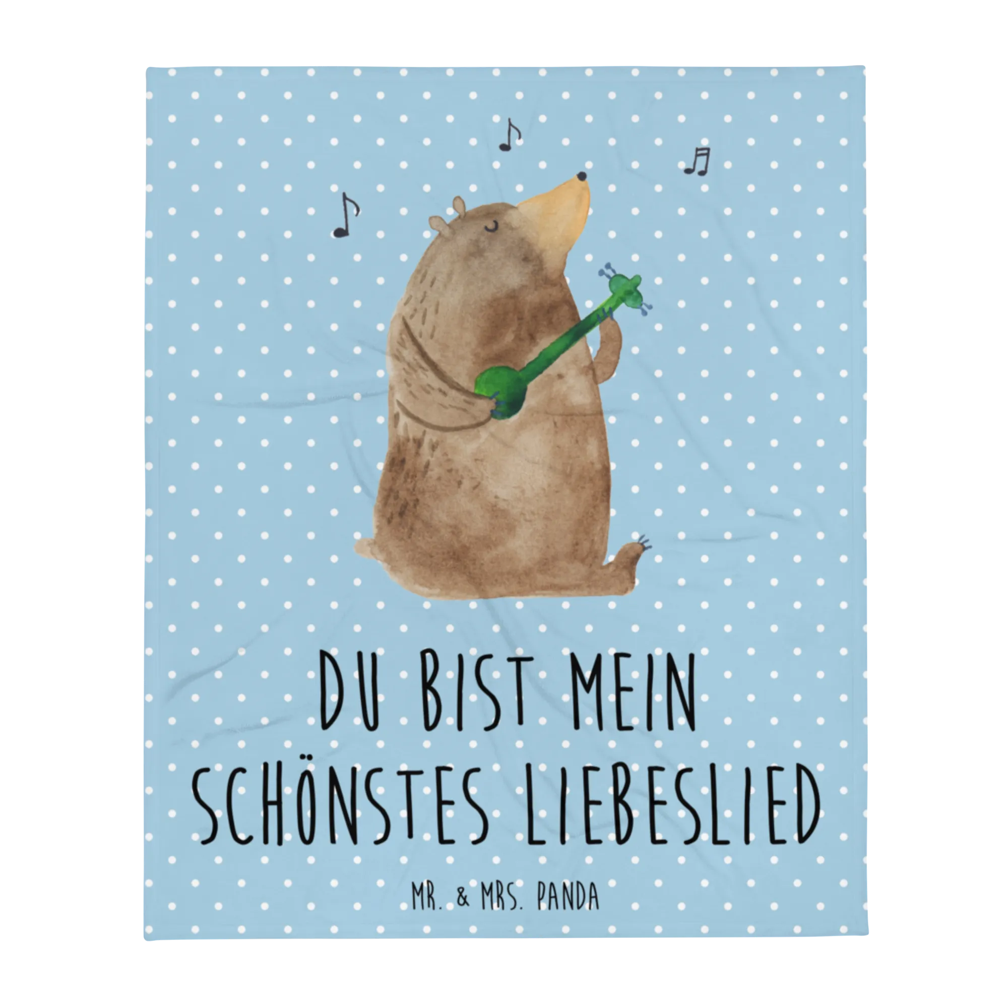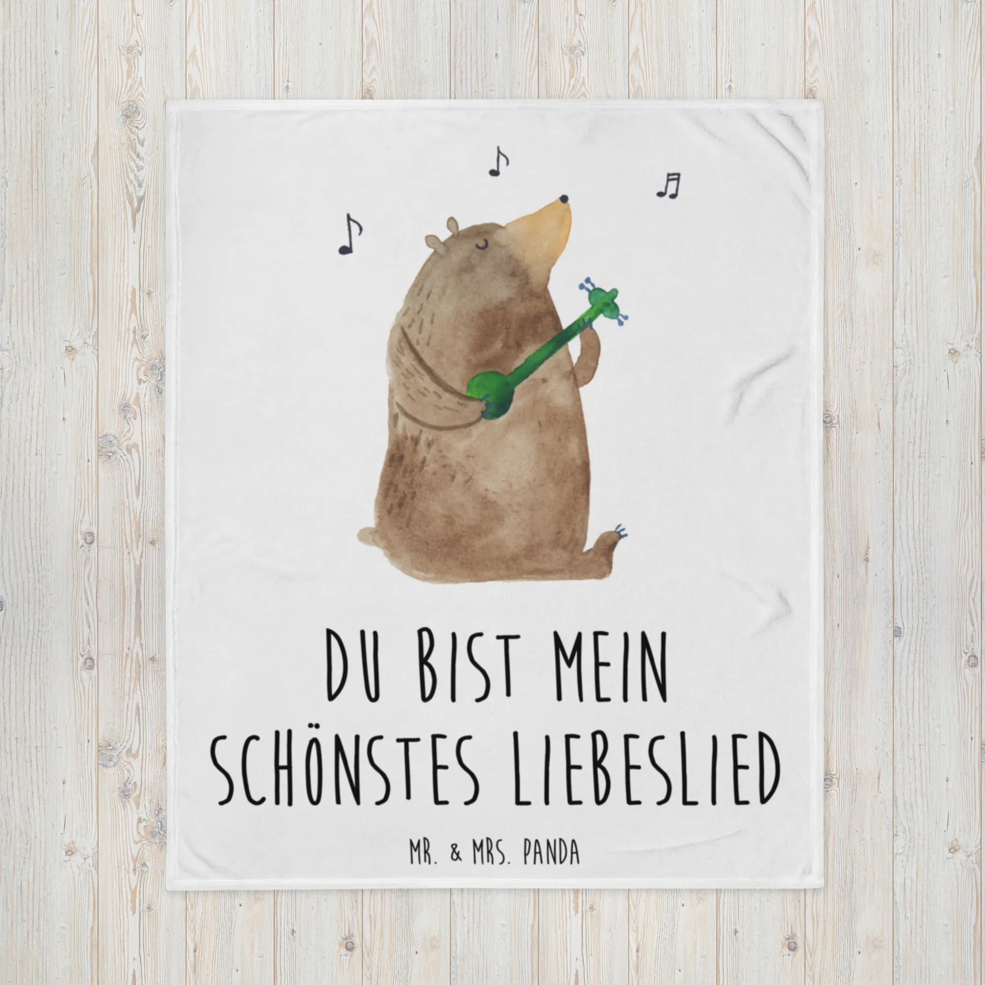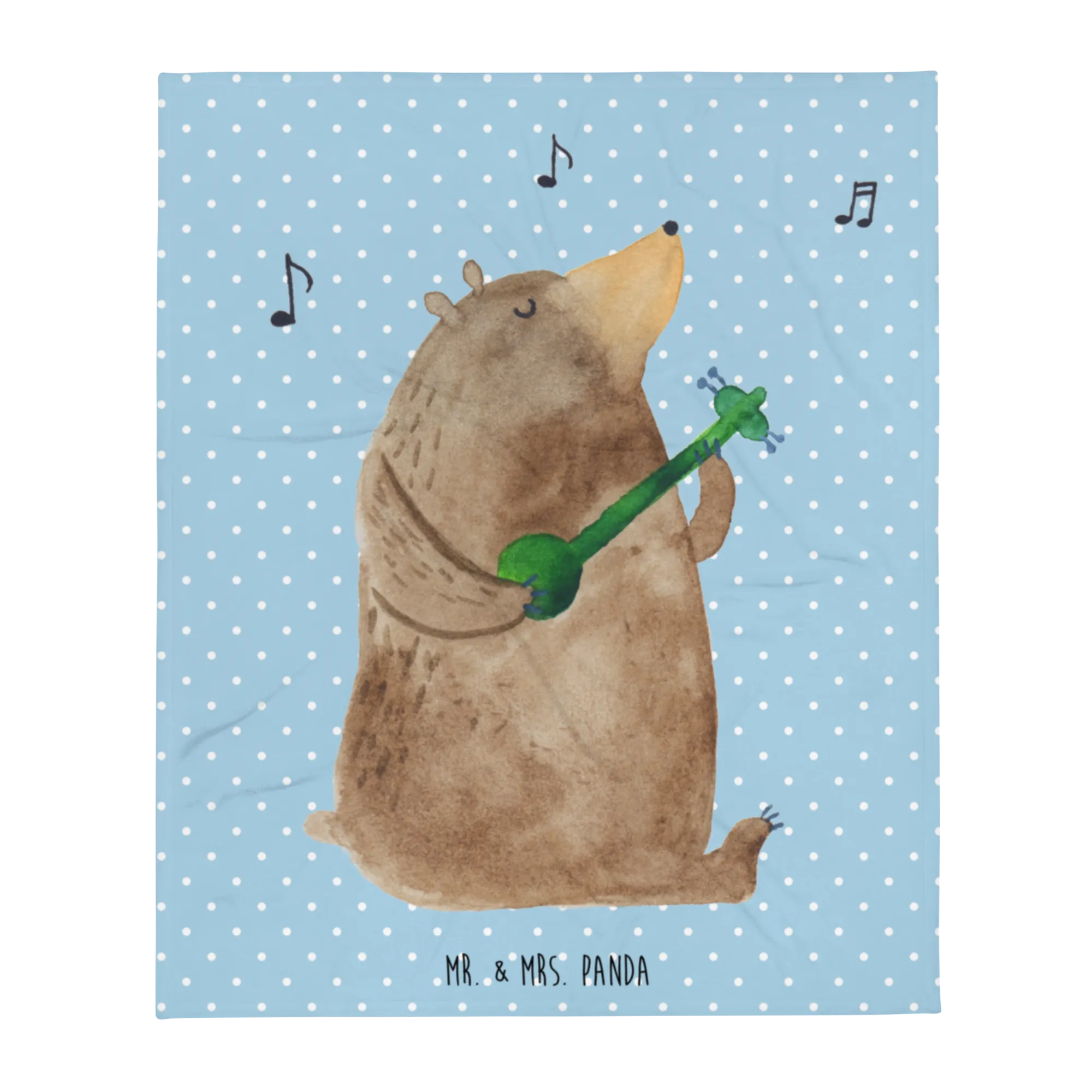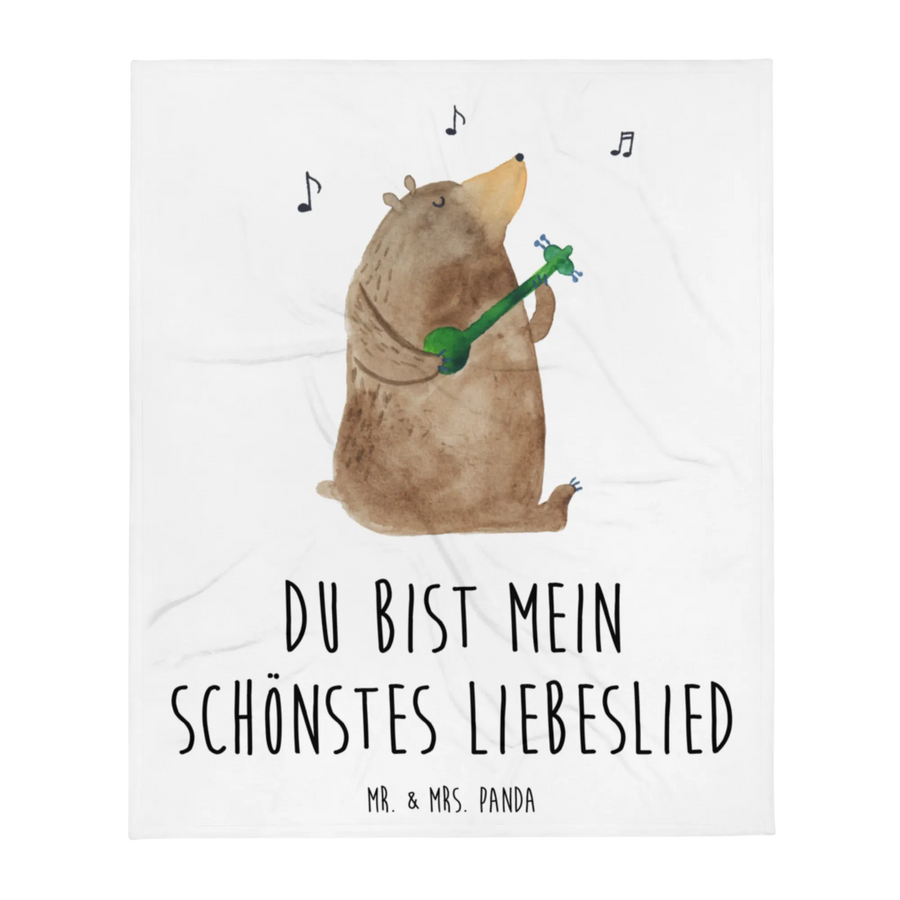 Unsere kuschelige Decke aus der Bär Kollektion von Mr. & Mrs. Panda zeigt einen niedlichen Bären, der eine Gitarre spielt. Die liebevoll von Mrs. Panda handgezeichnete Aquarell-Illustration verleiht der Decke einen warmen, persönlichen Charakter, perfekt für alle, die Bären, Musik und Gemütlichkeit lieben.