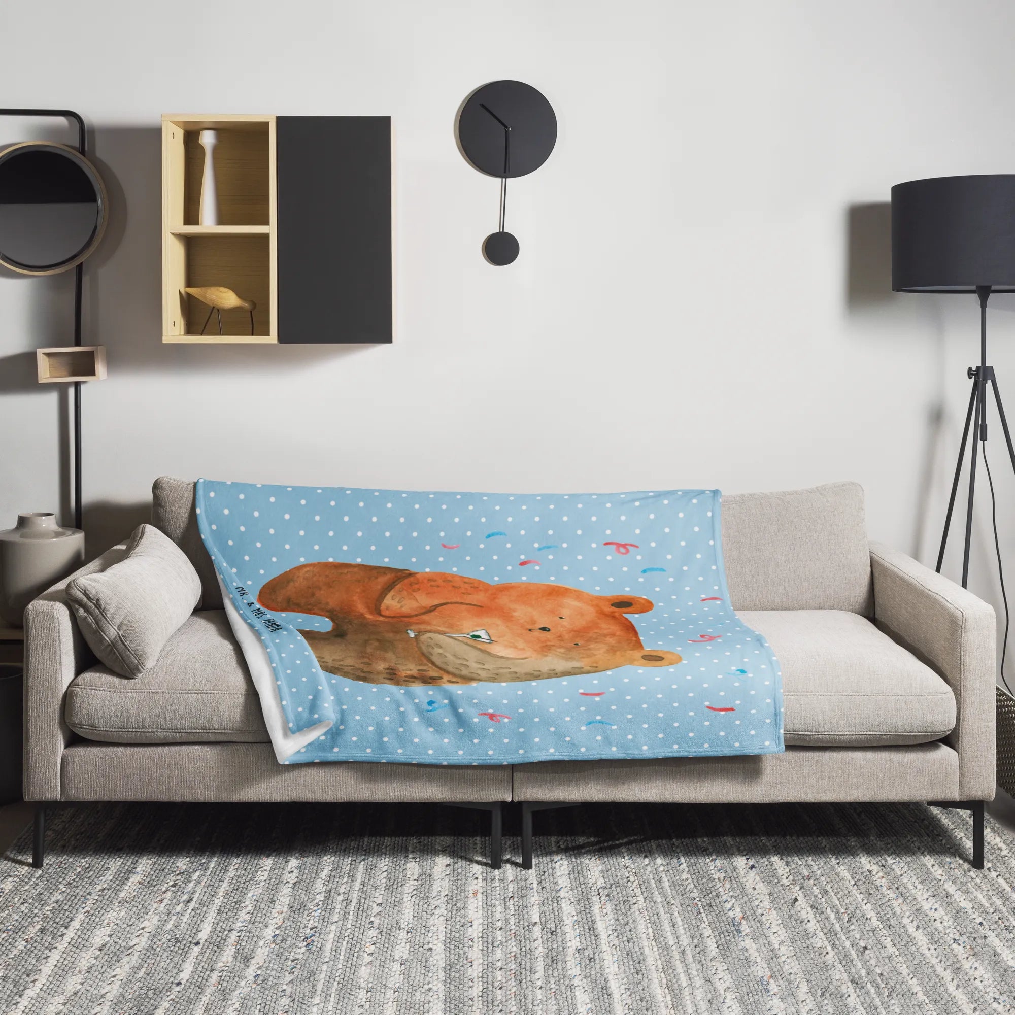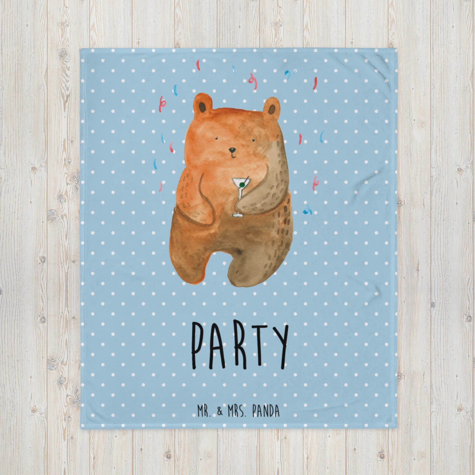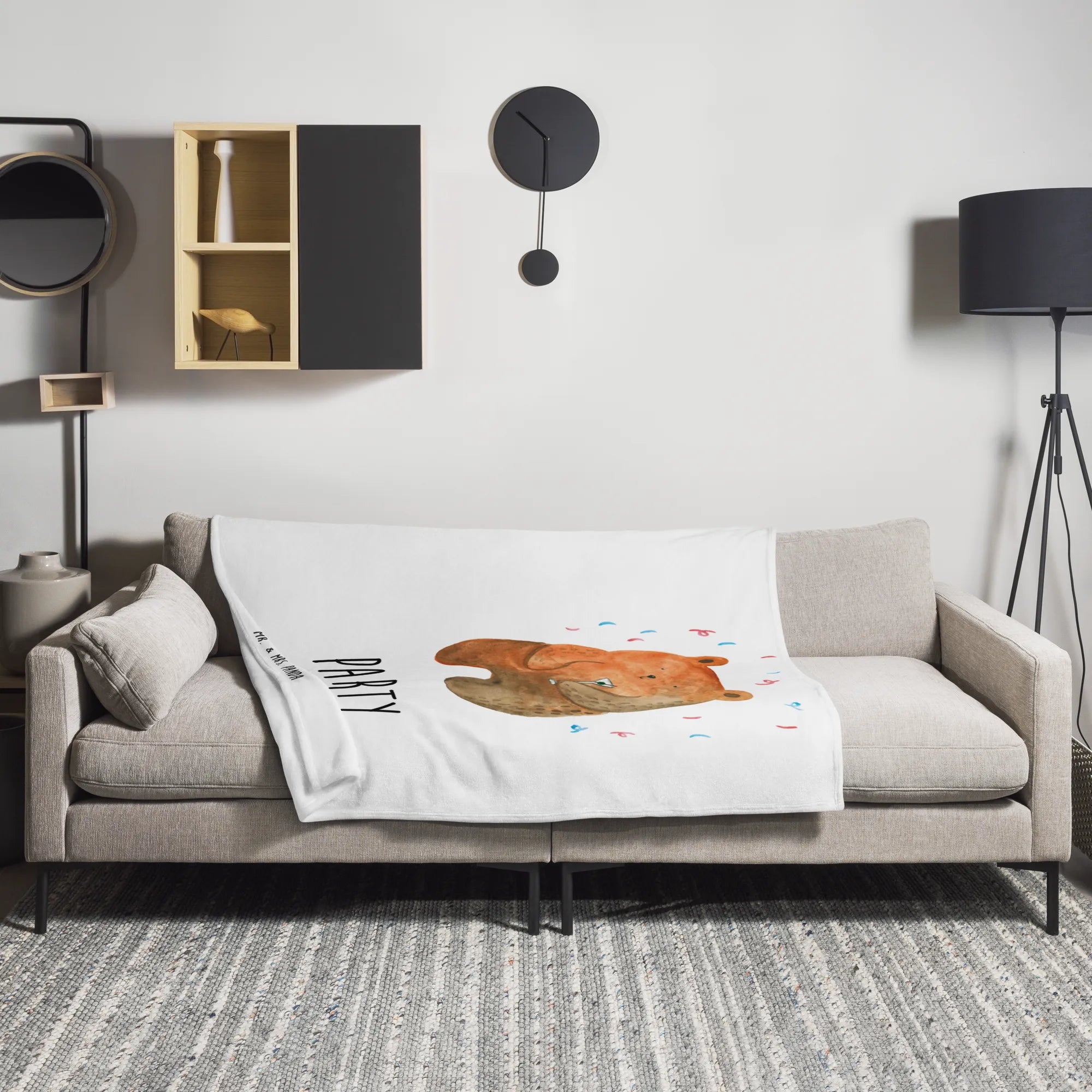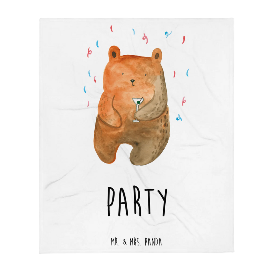 Mr. & Mrs. Panda Kuscheldecke „Bär Party“ – die perfekte Mischung aus Gemütlichkeit und guter Laune. Der niedliche Party-Bär mit seinem kleinen Partyhütchen und dem fröhlichen Slogan „Party“ macht die Decke zum idealen Geschenk für Weihnachten, Geburtstage oder einfach als Mitbringsel. Die lebendigen Farben und das liebevoll handgezeichnete Motiv bringen sofort Freude in Dein Zuhause.