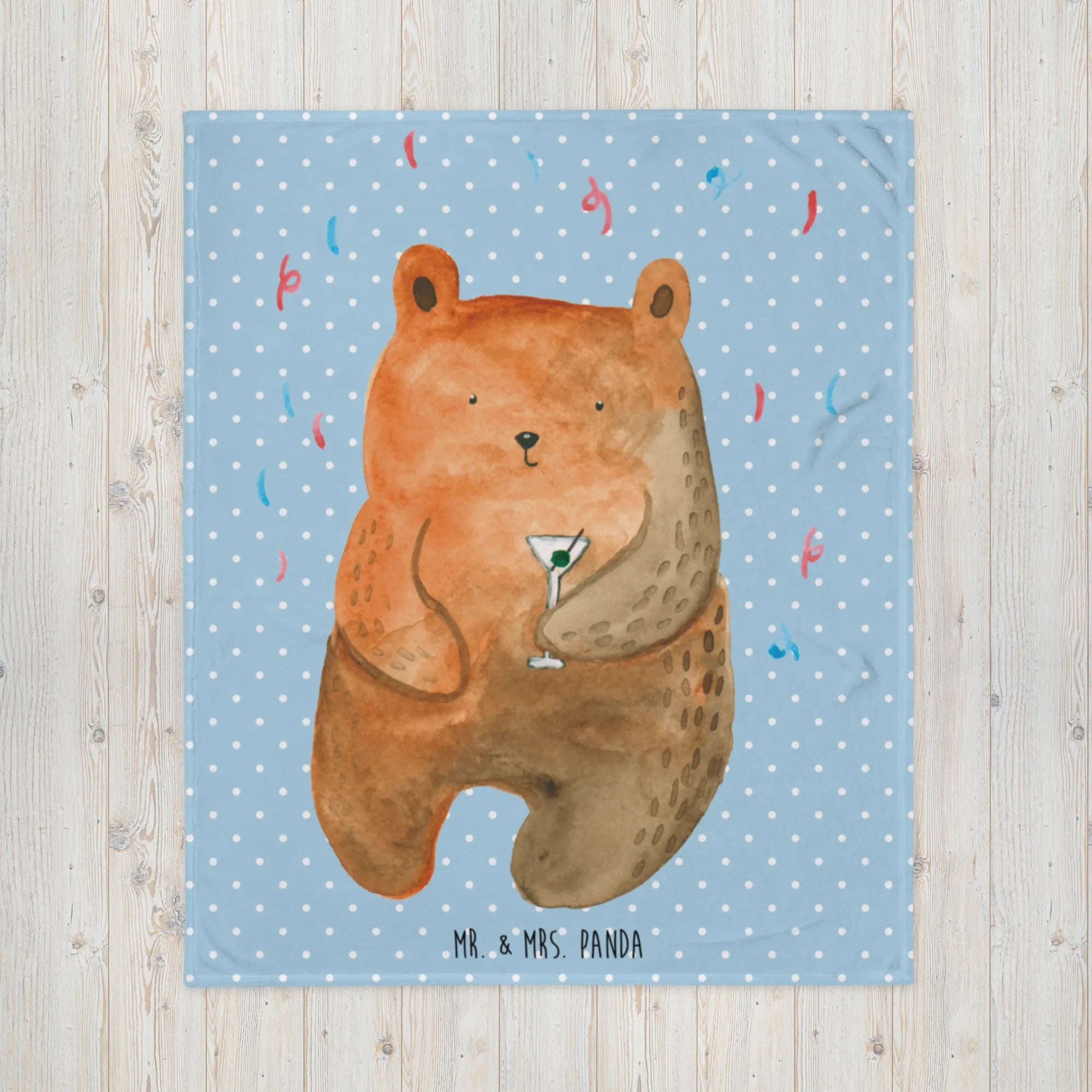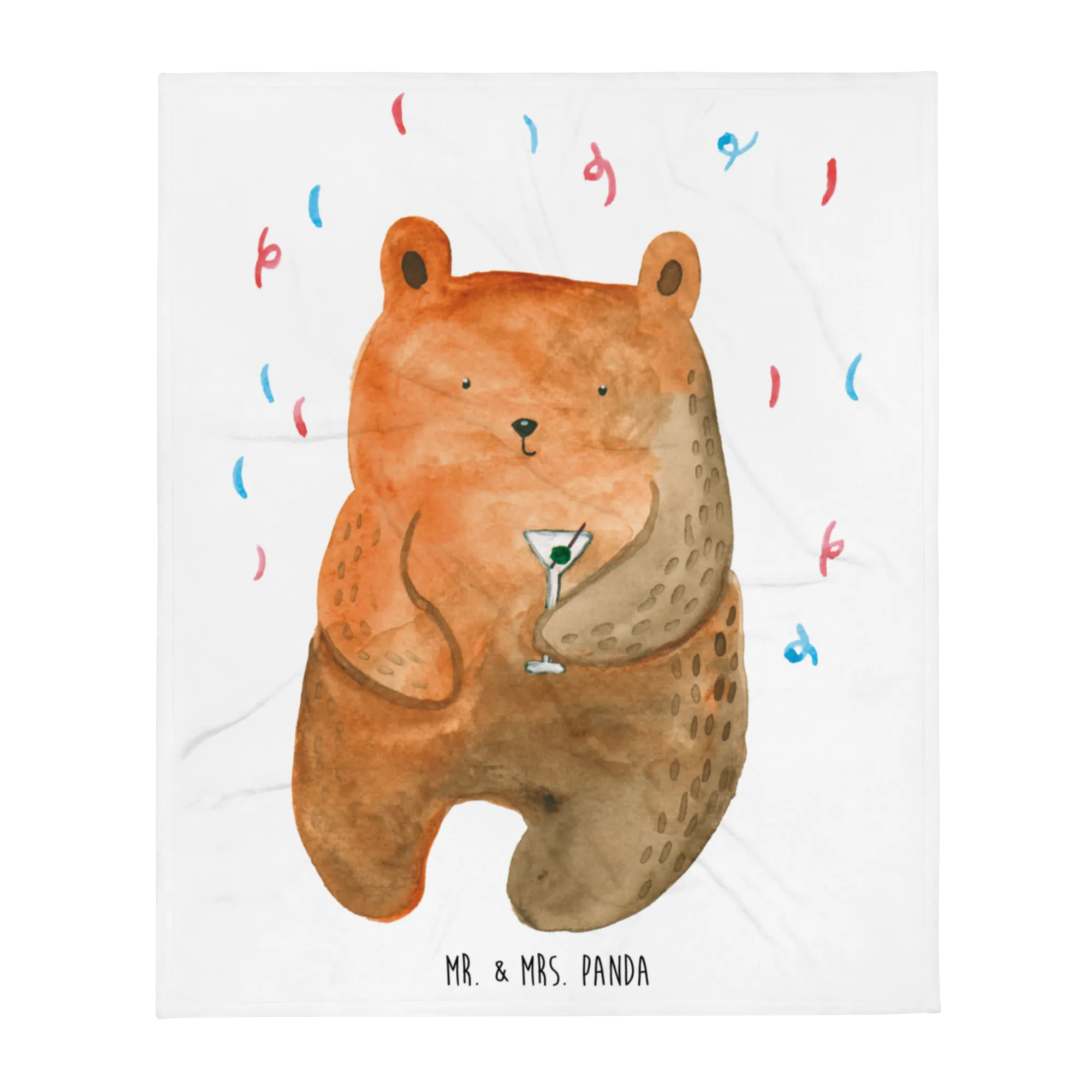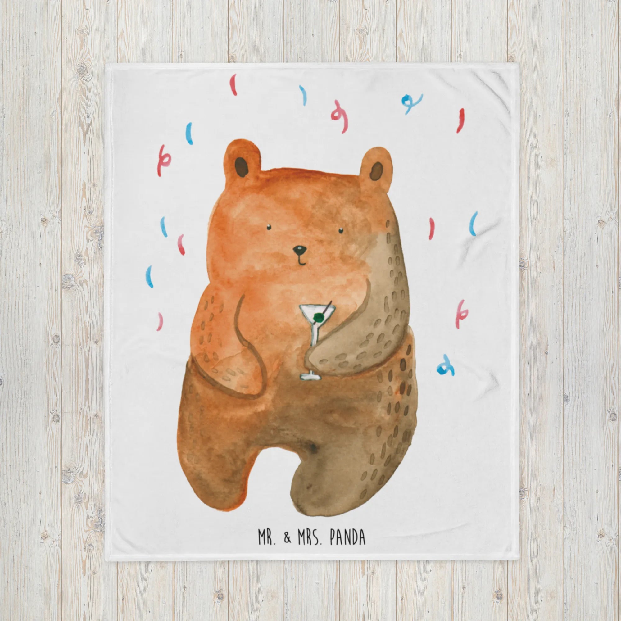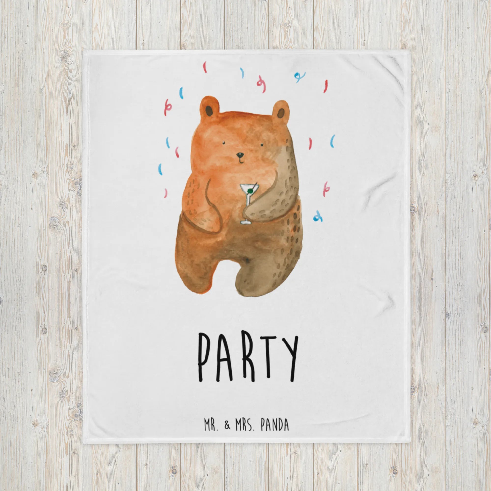 Kuscheldecke Bär Party - mit Spruch - Weiß