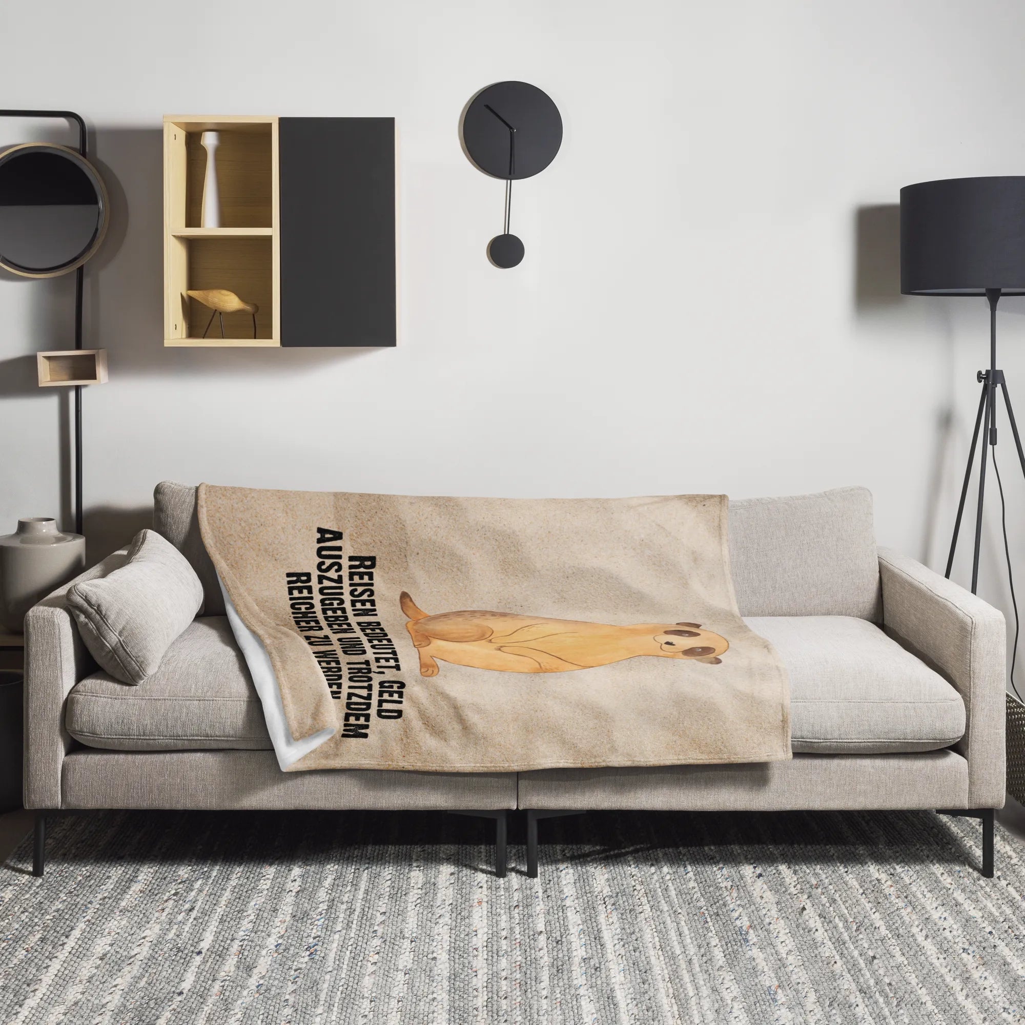 Kuscheldecke Erdmännchen - mit Spruch - Sandig