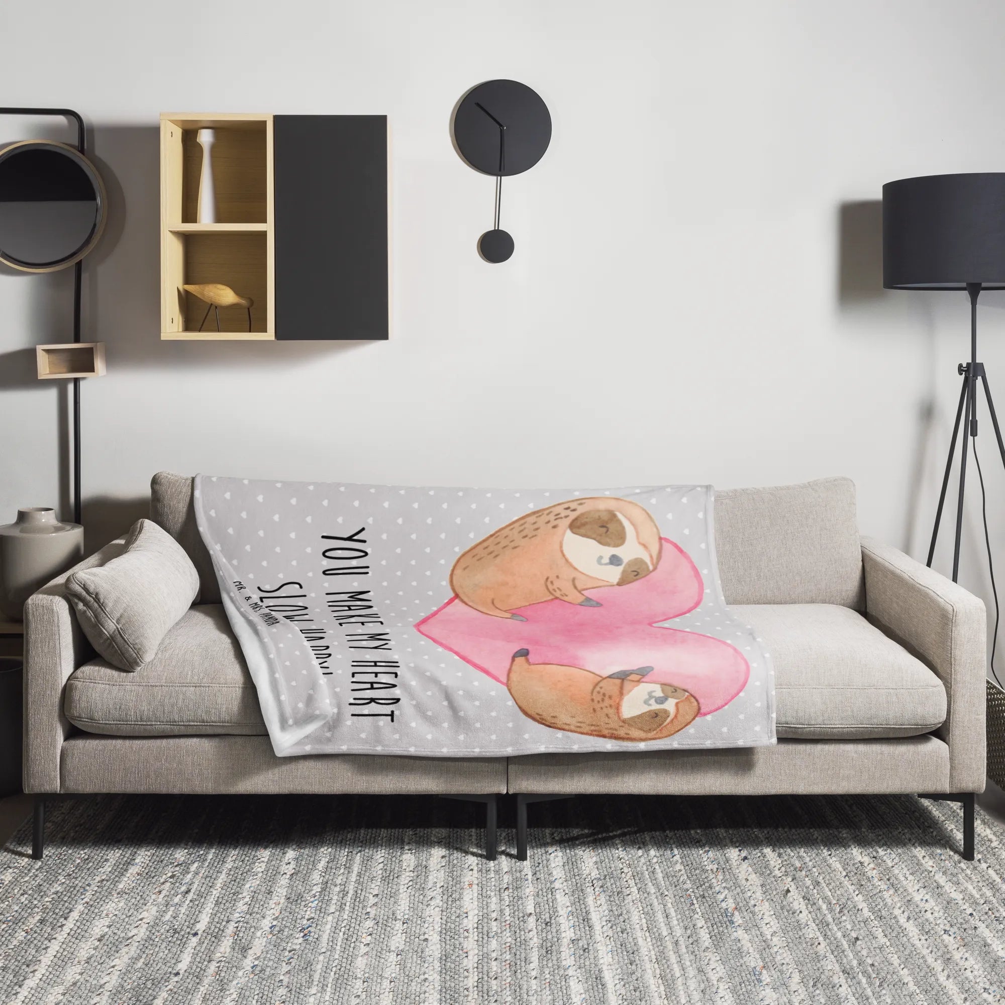Kuscheldecke Faultiere Herz - Weiß