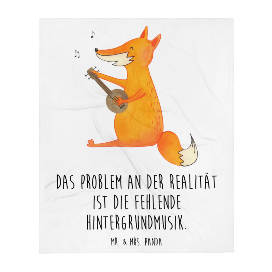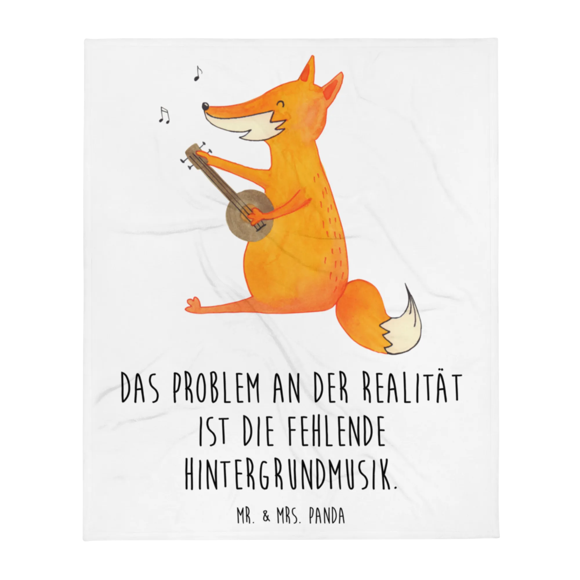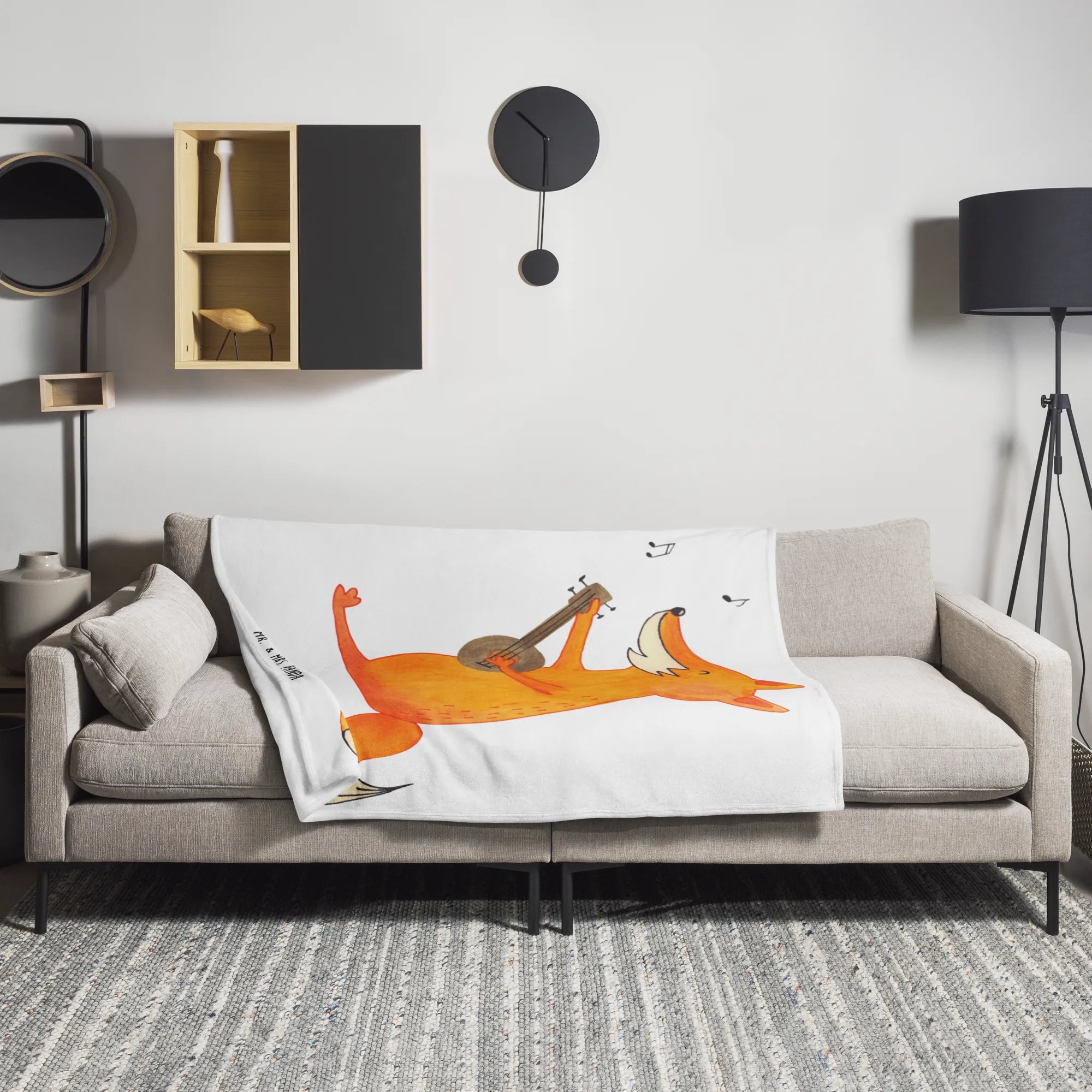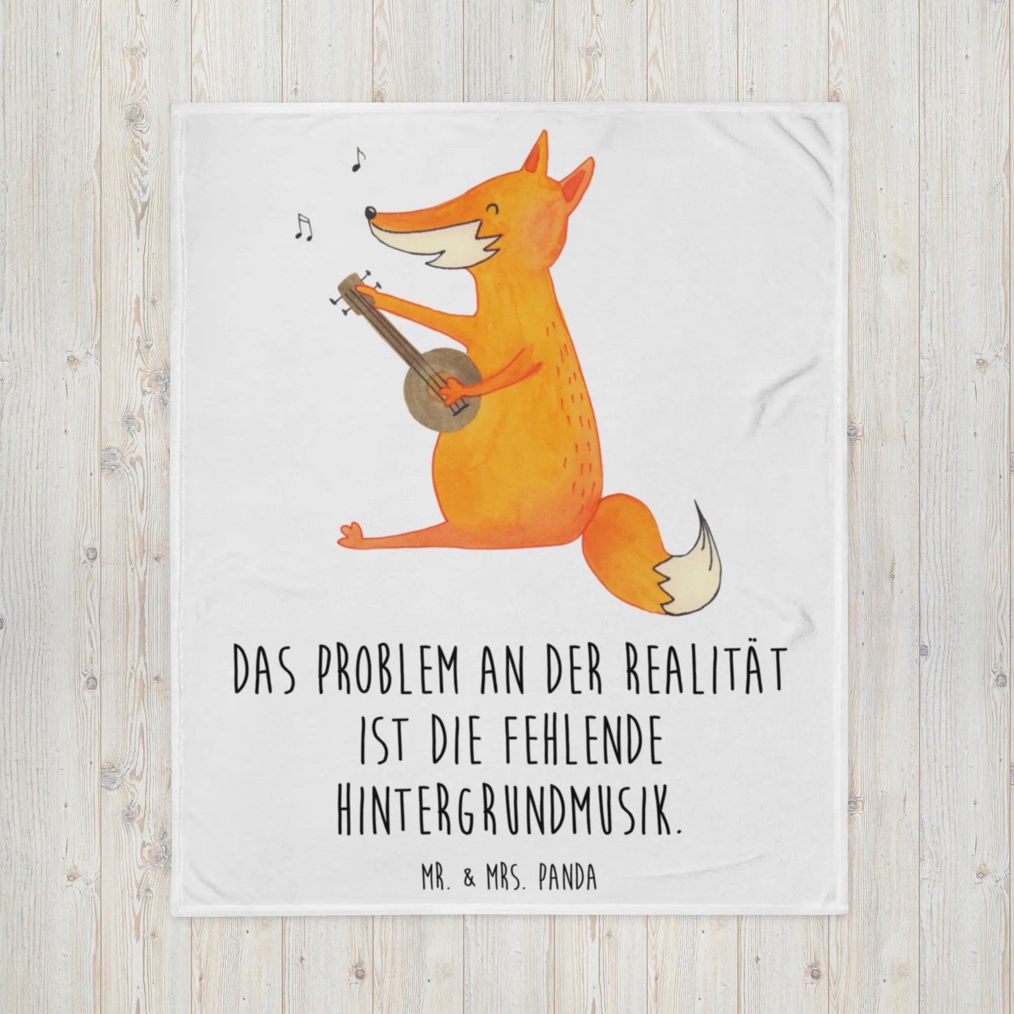 Kuscheldecke Fuchs Gitarre - mit Spruch - Weiß