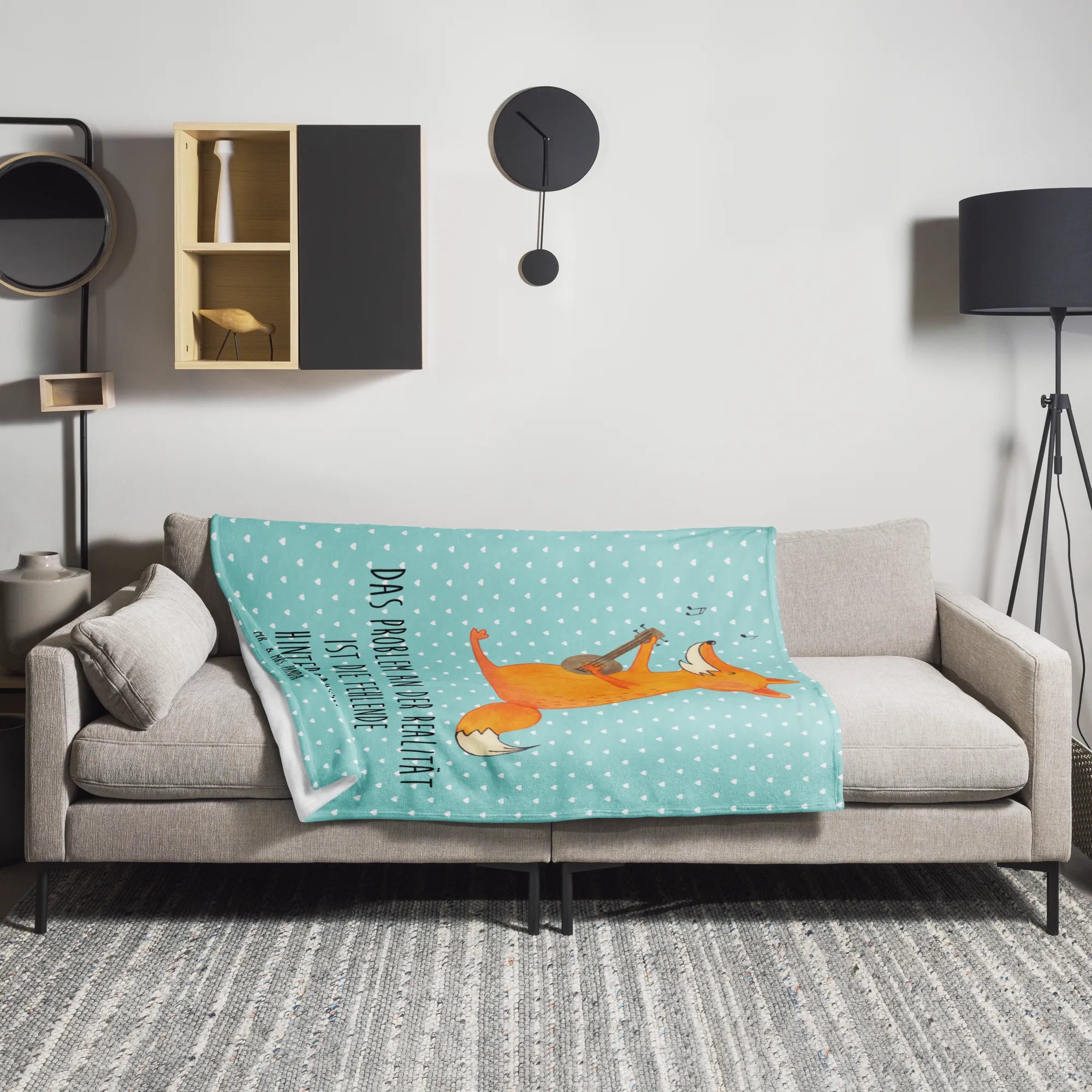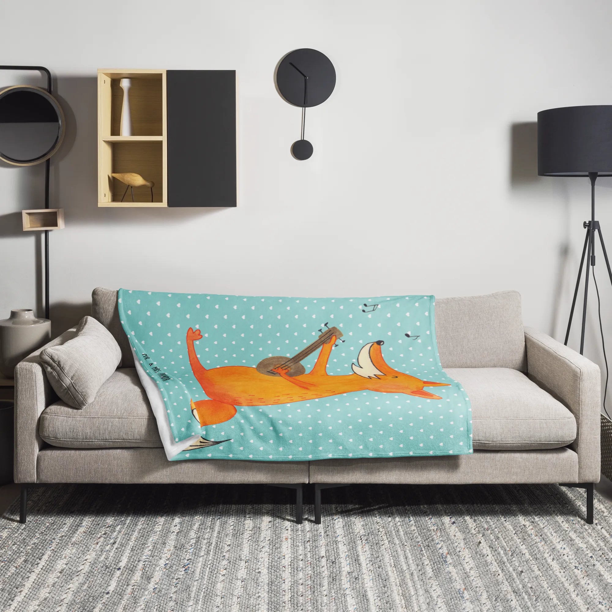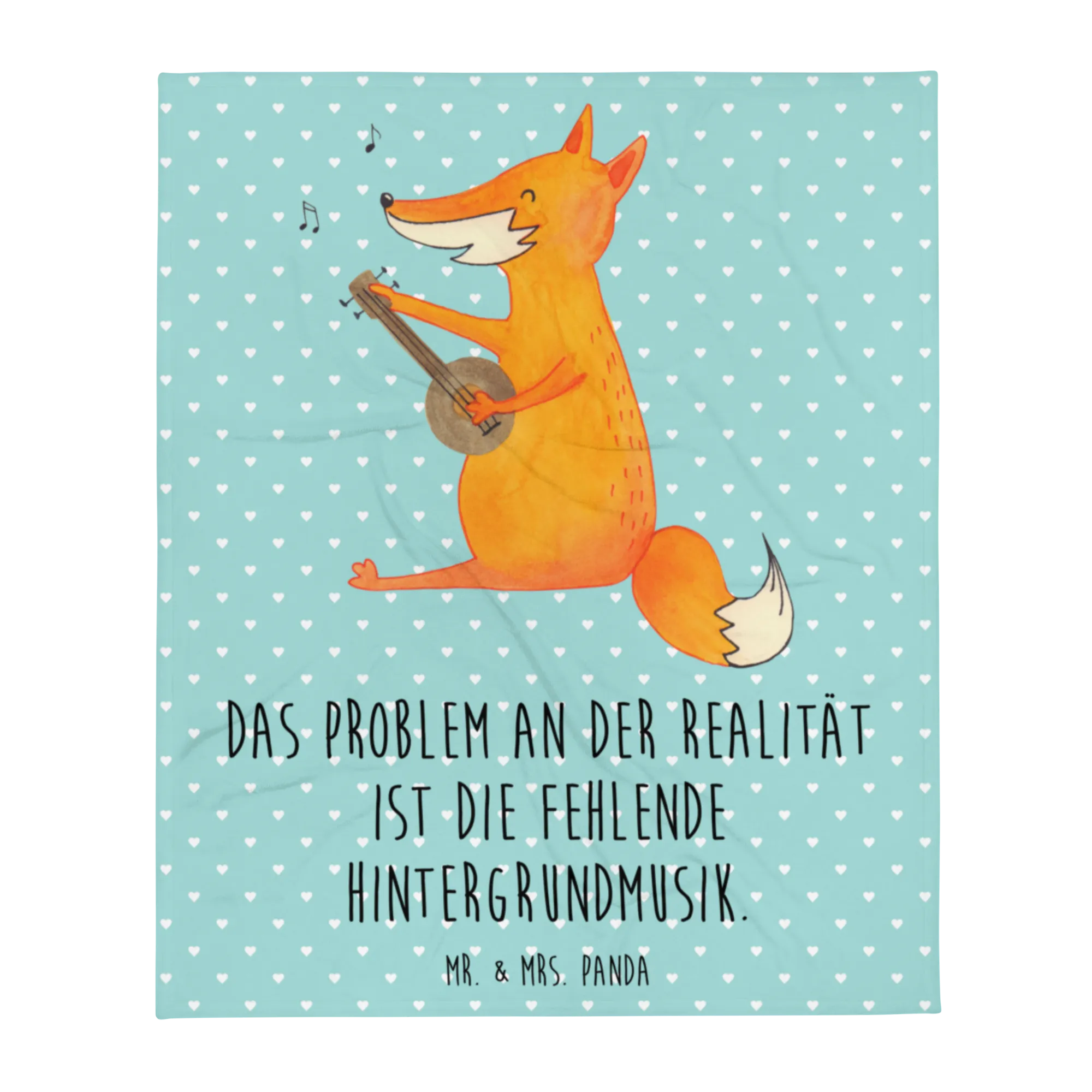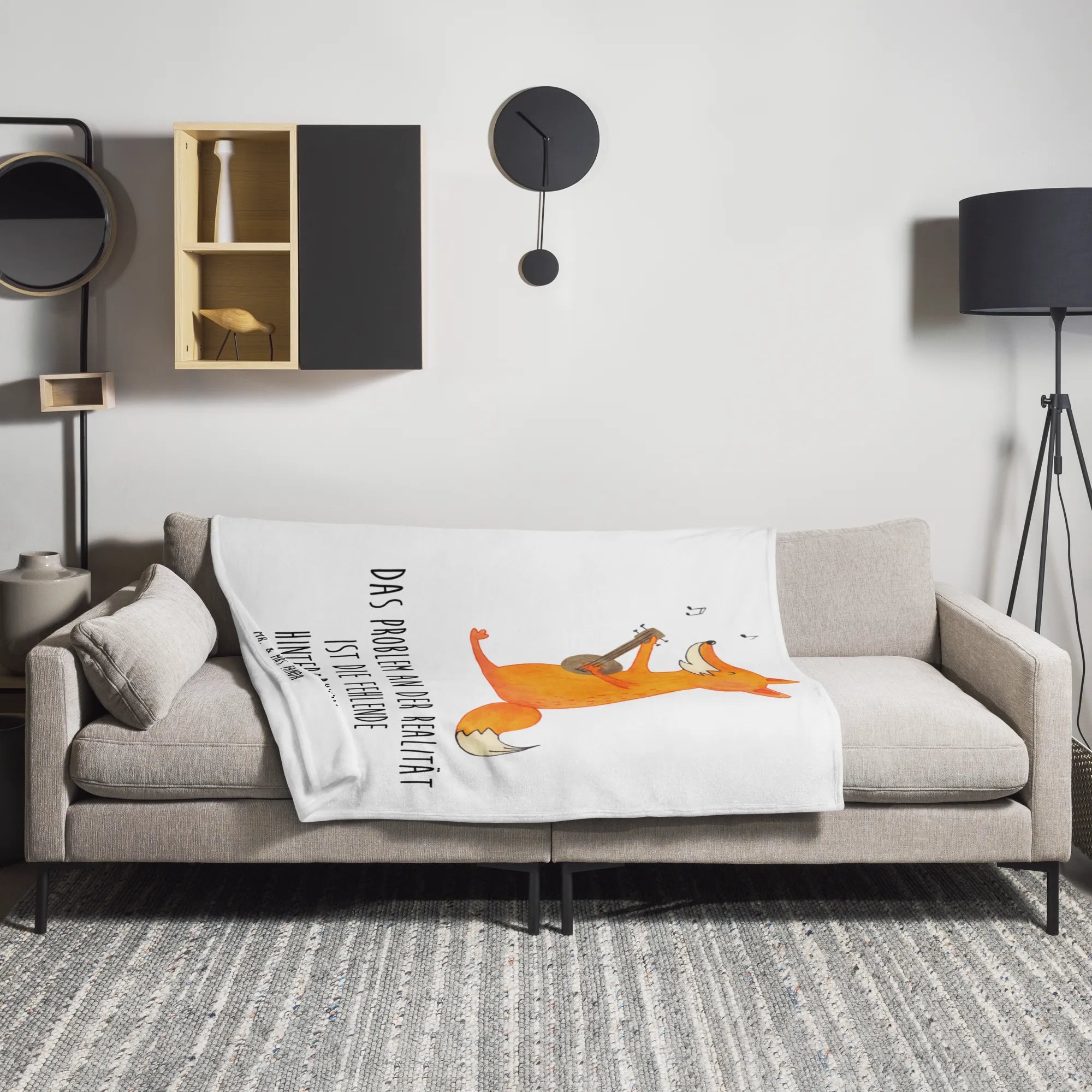 Kuscheldecke Fuchs Gitarre - mit Spruch - Weiß