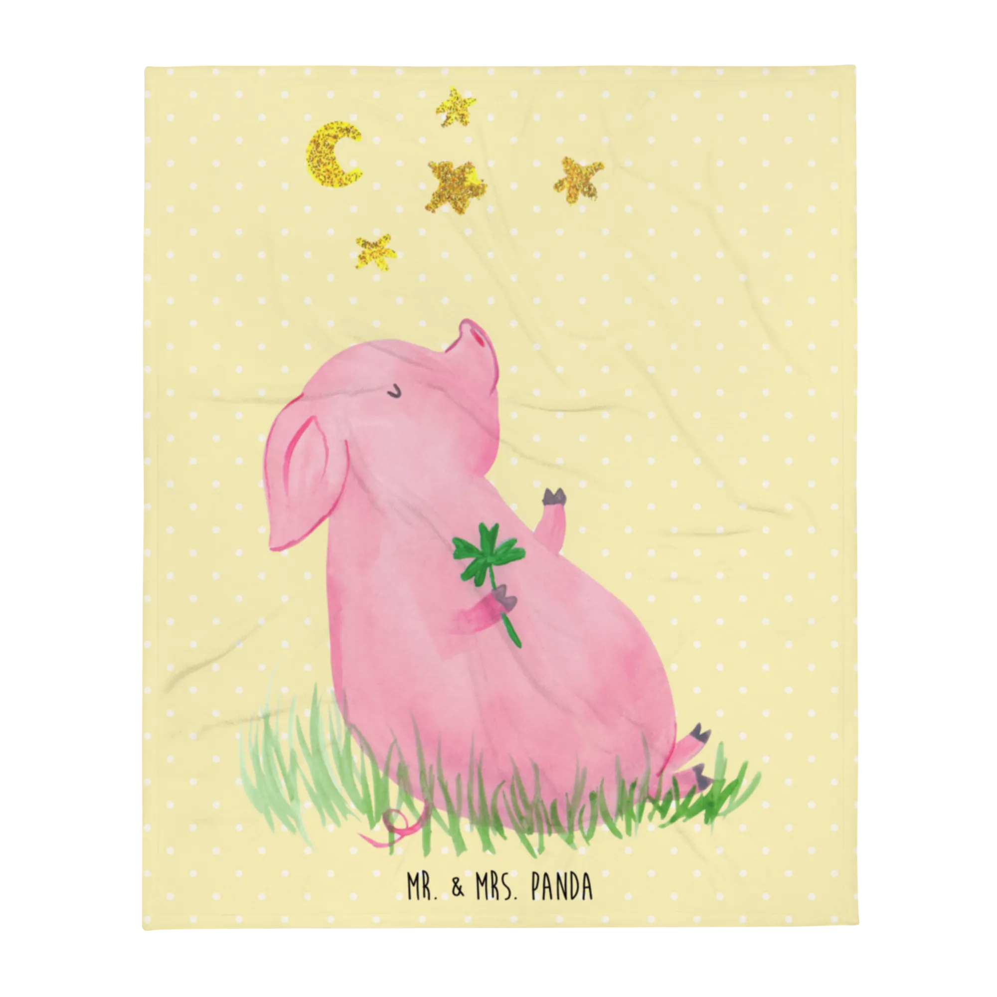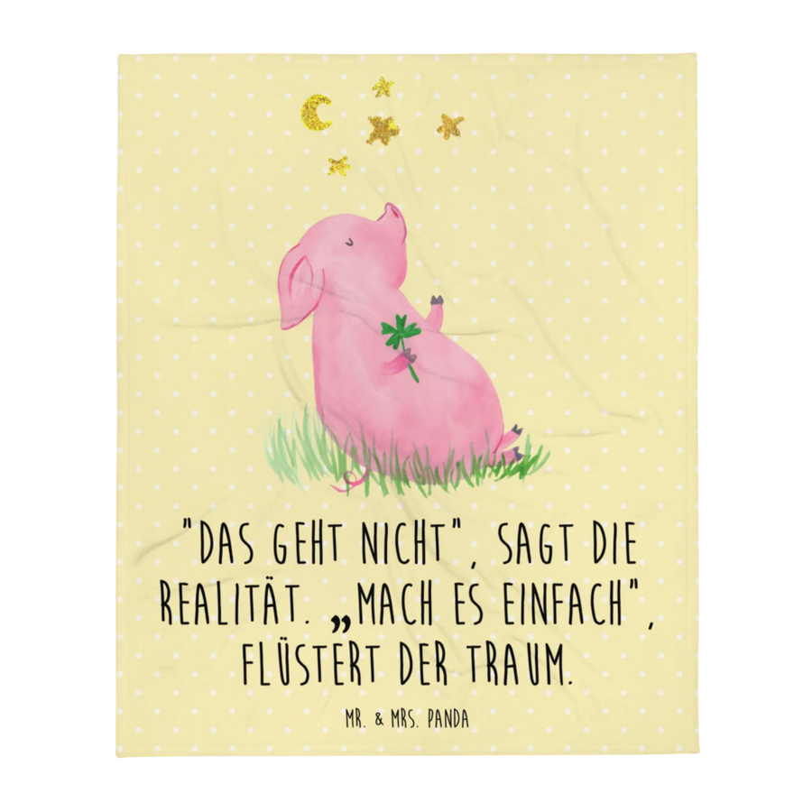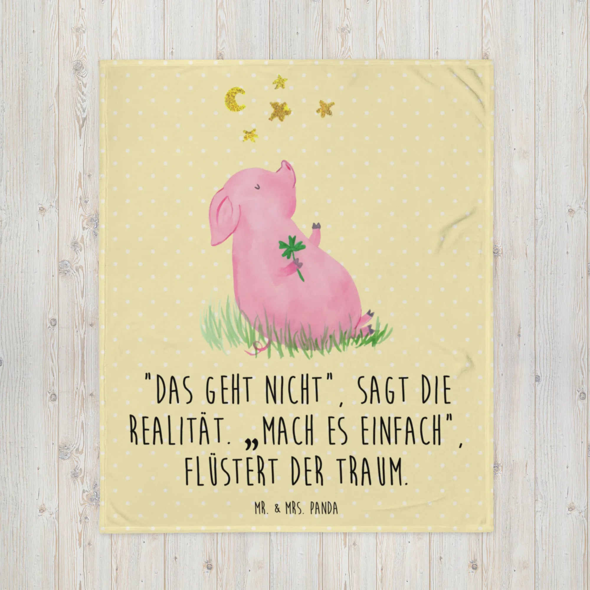 Kuscheldecke Schwein Glück - mit Spruch - Gelb Pastell