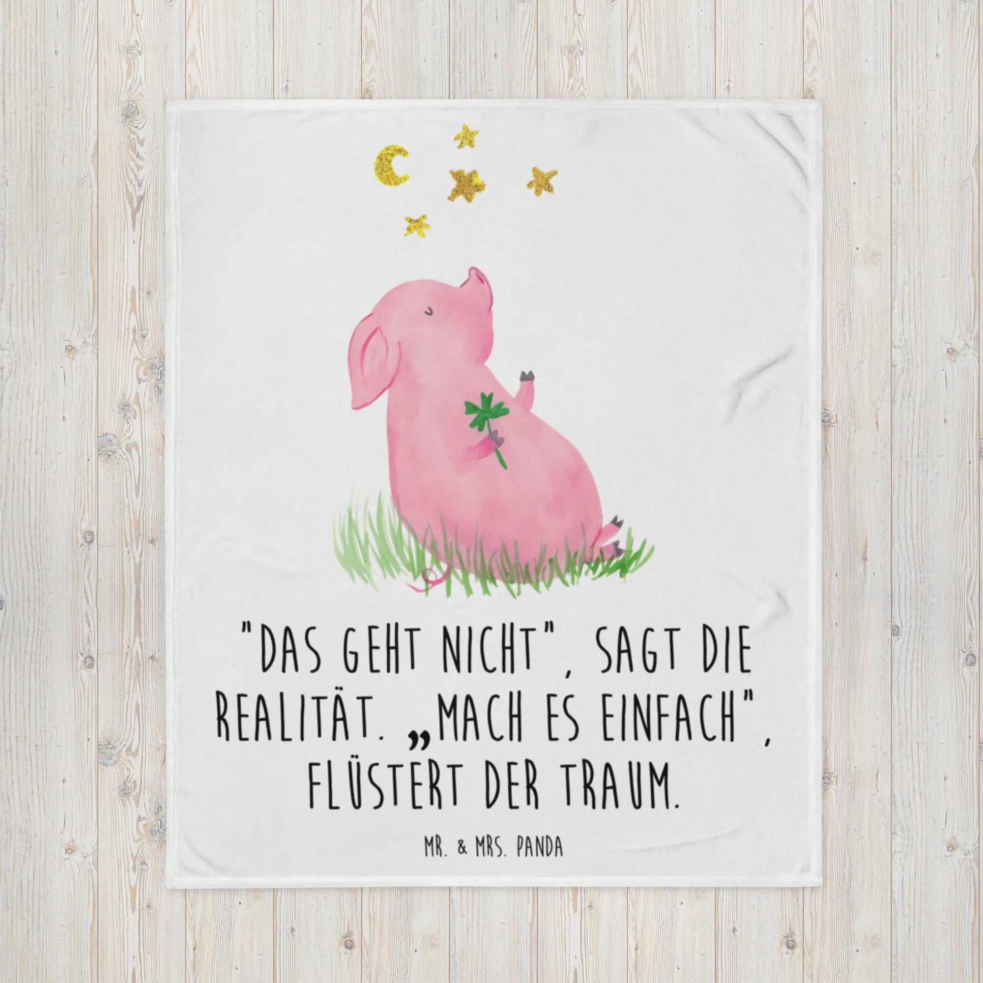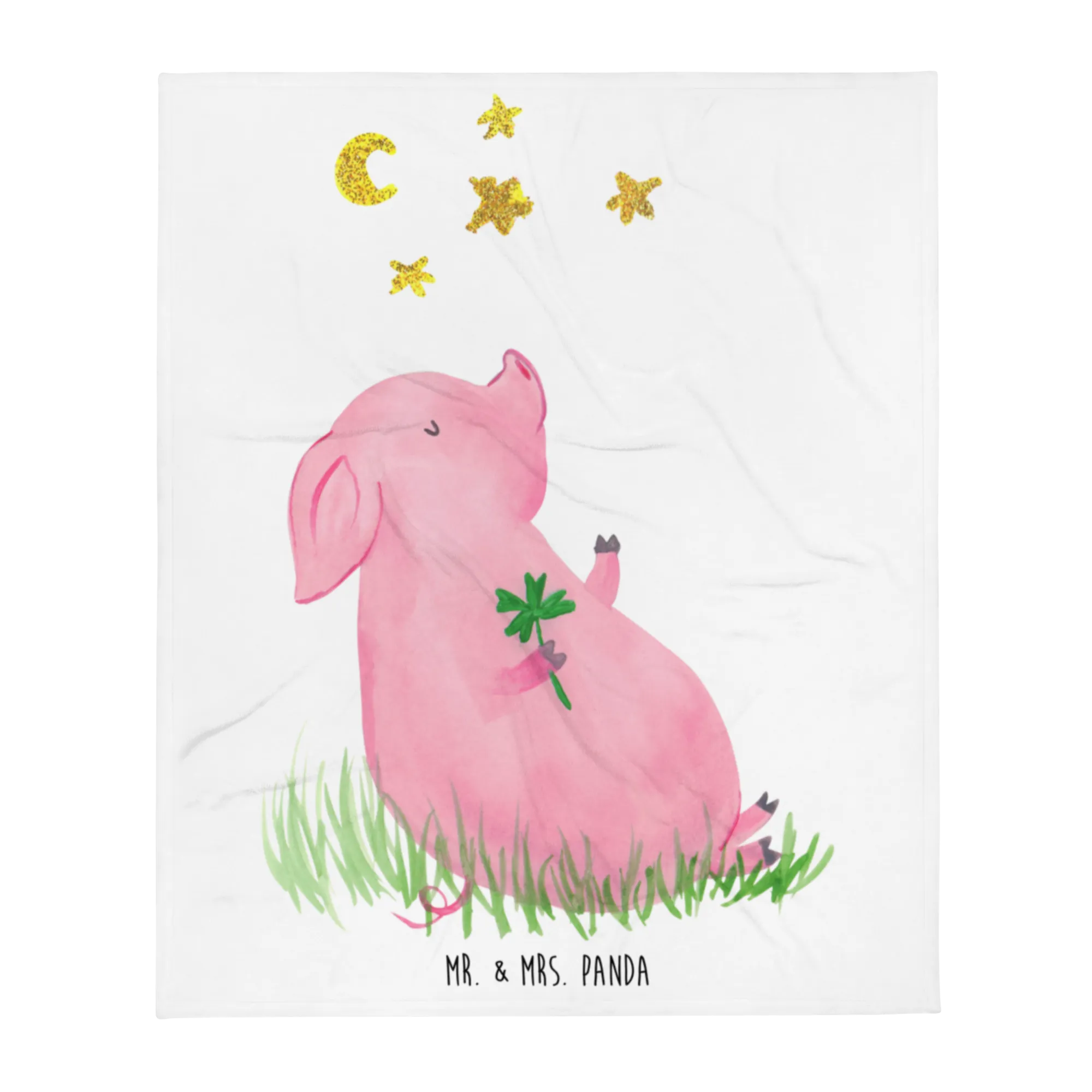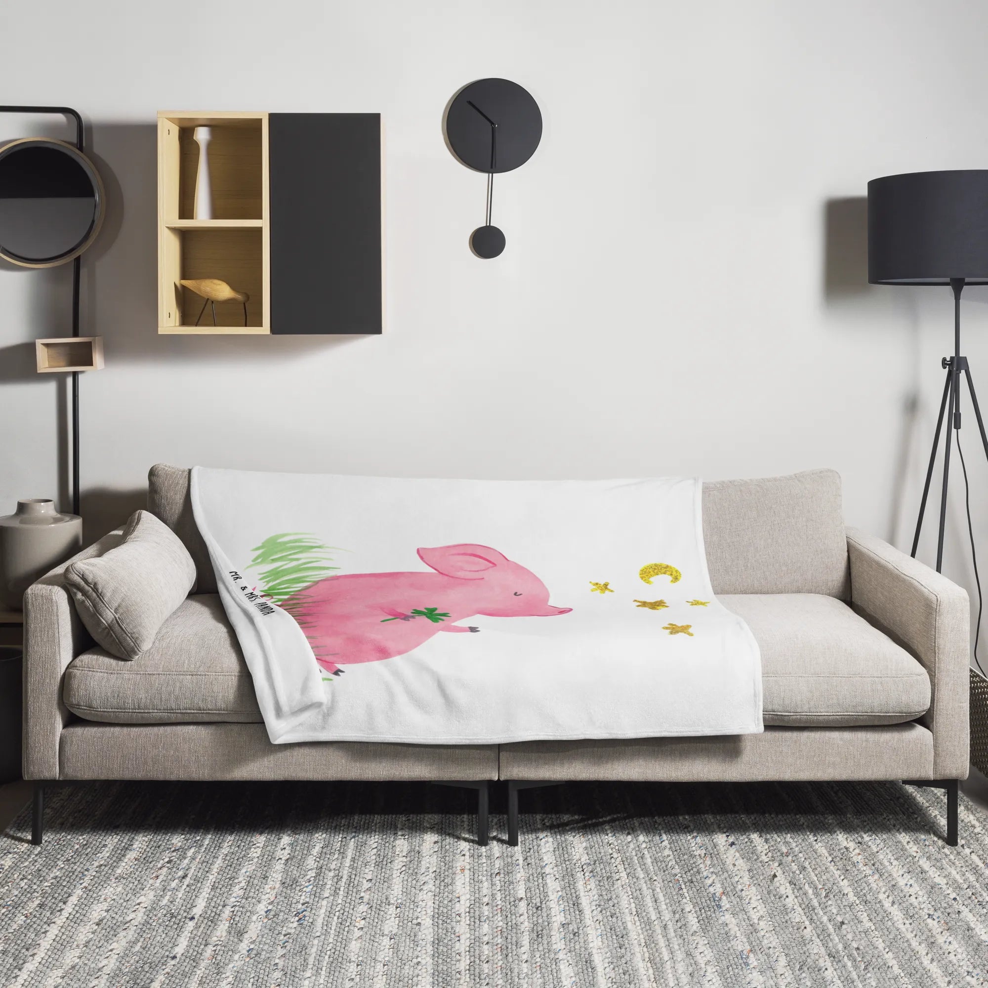 Kuscheldecke Schwein Glück - mit Spruch - Gelb Pastell