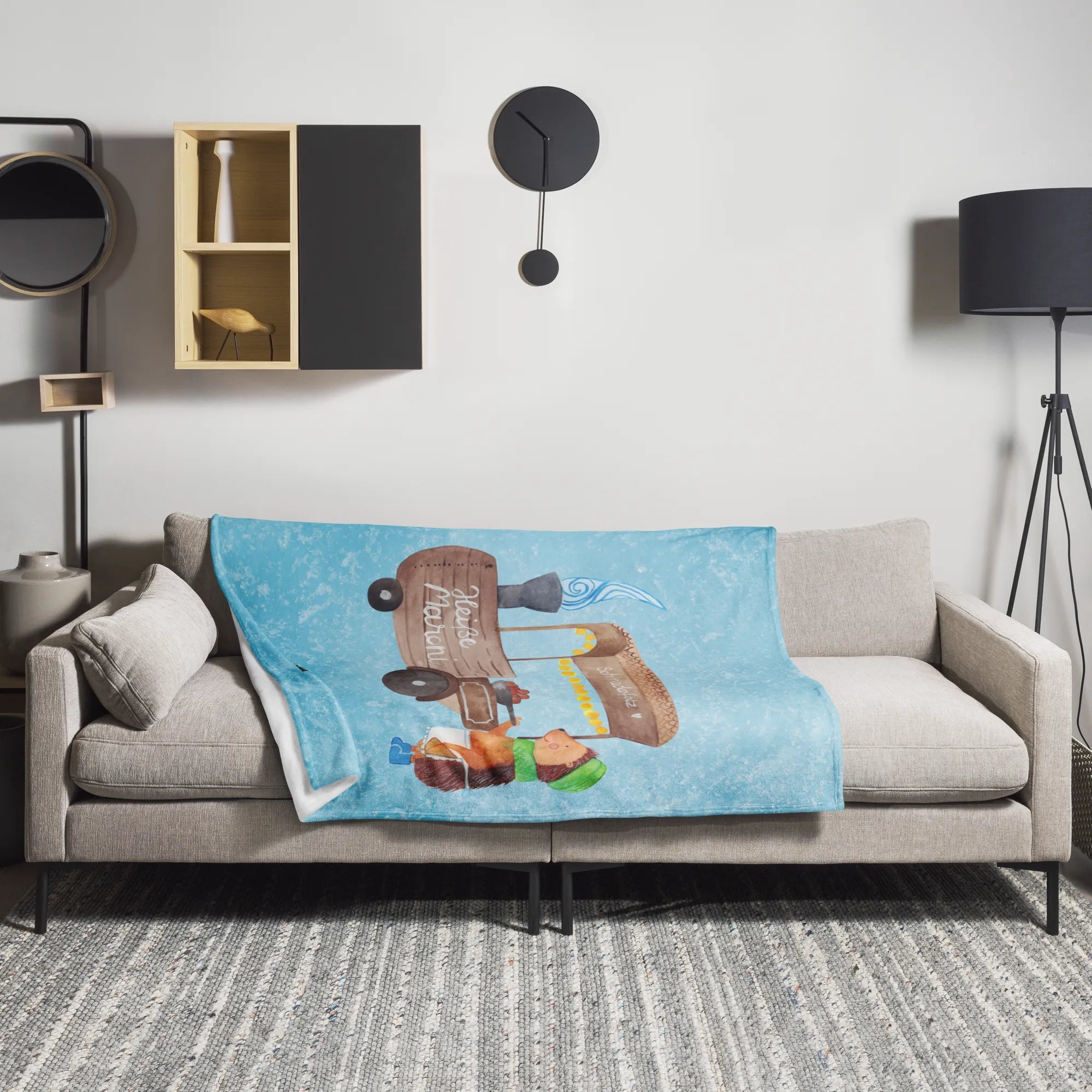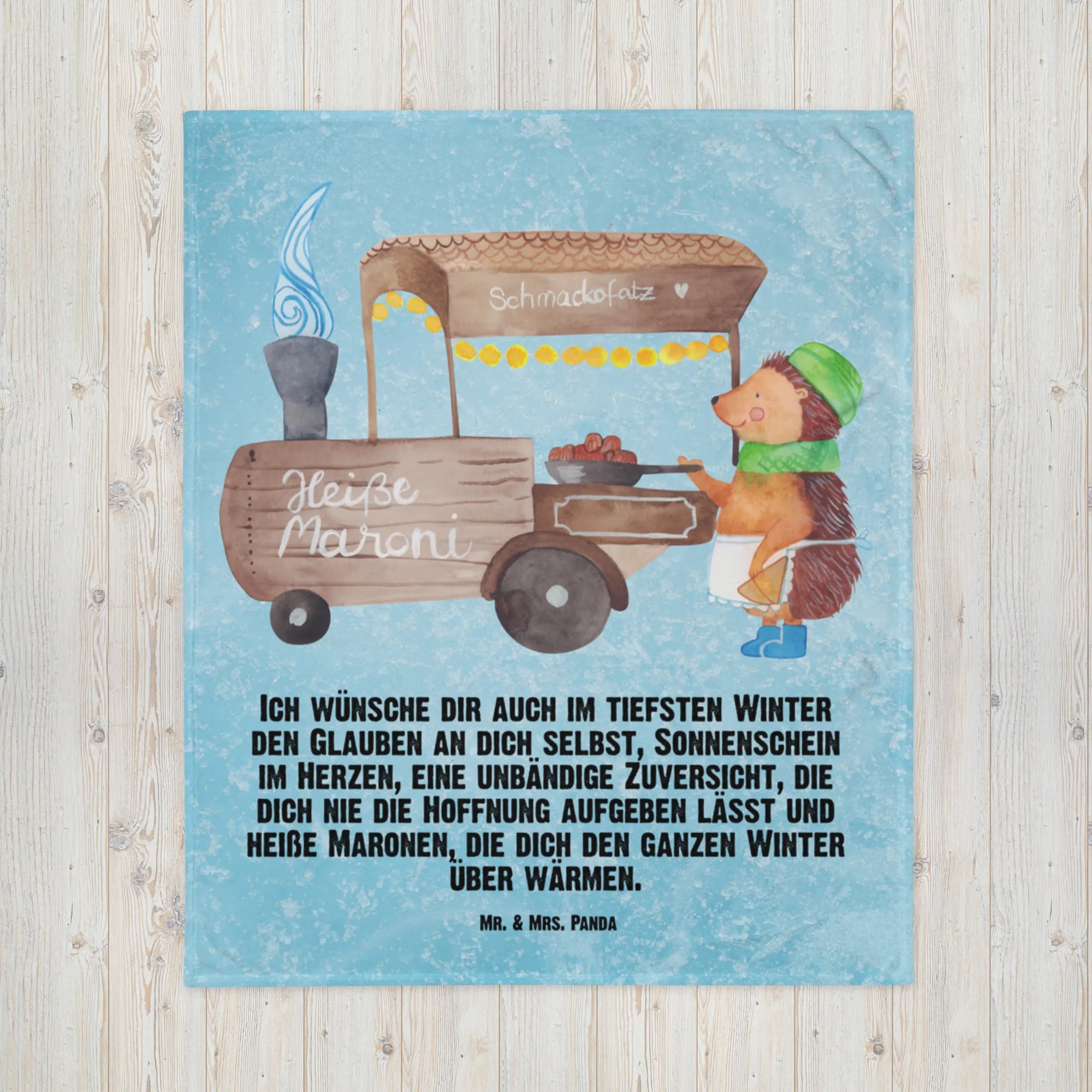 Kuscheldecke Igel Maronen - mit Spruch - Eisblau