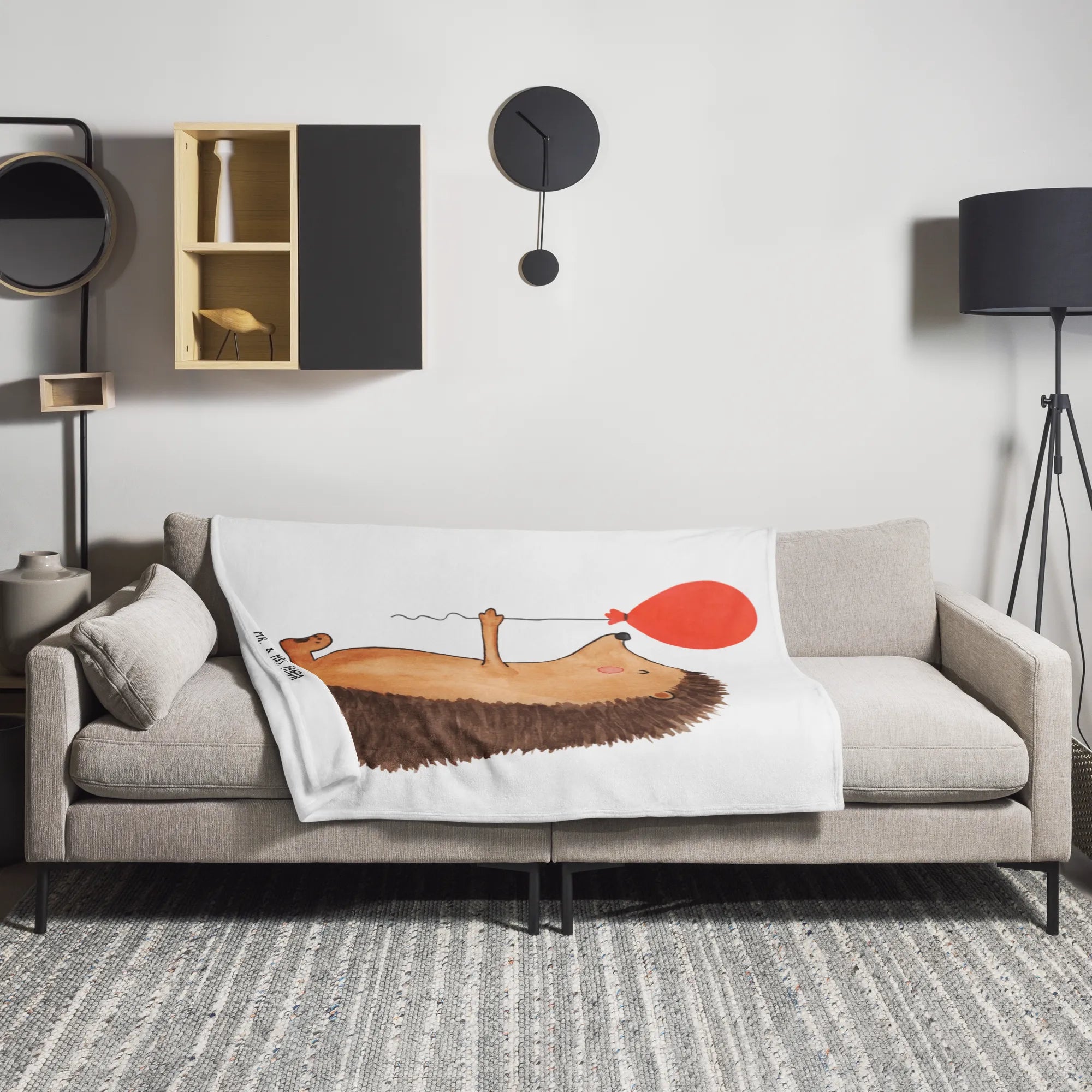 Kuscheldecke Igel Luftballon - mit Spruch - Gelb Pastell