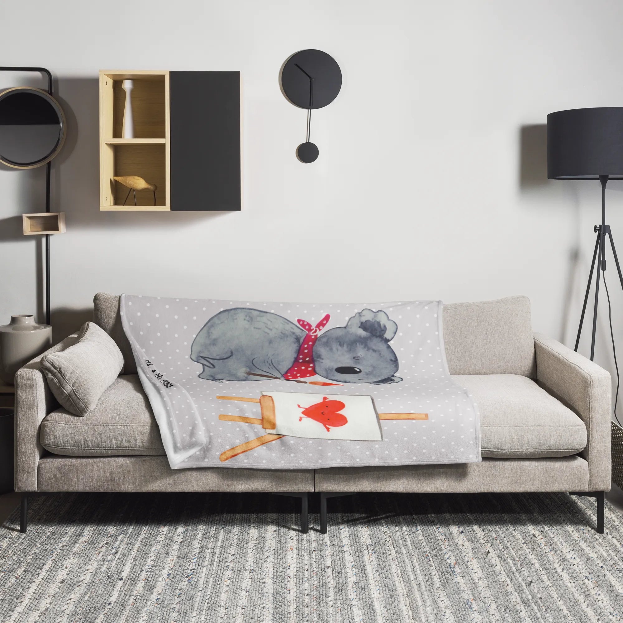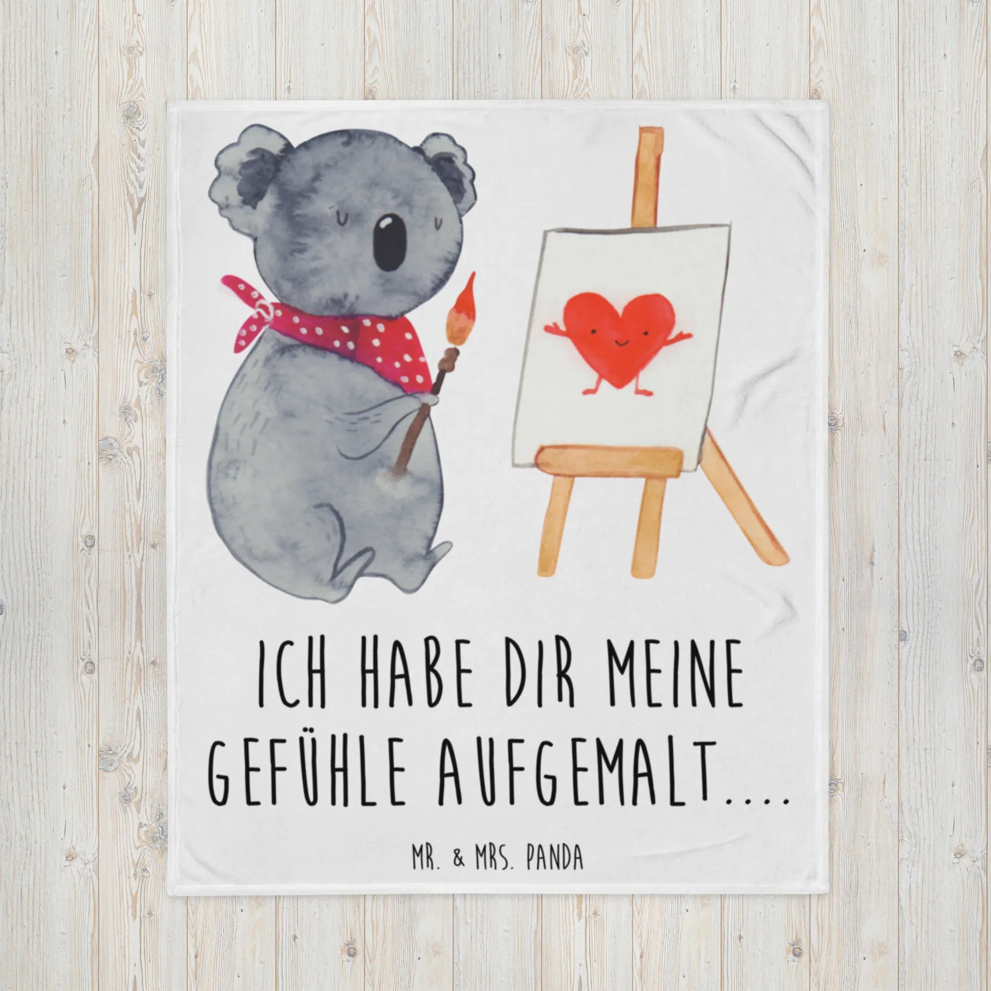 Kuscheldecke Koala Künstler - mit Spruch - Grau Pastell
