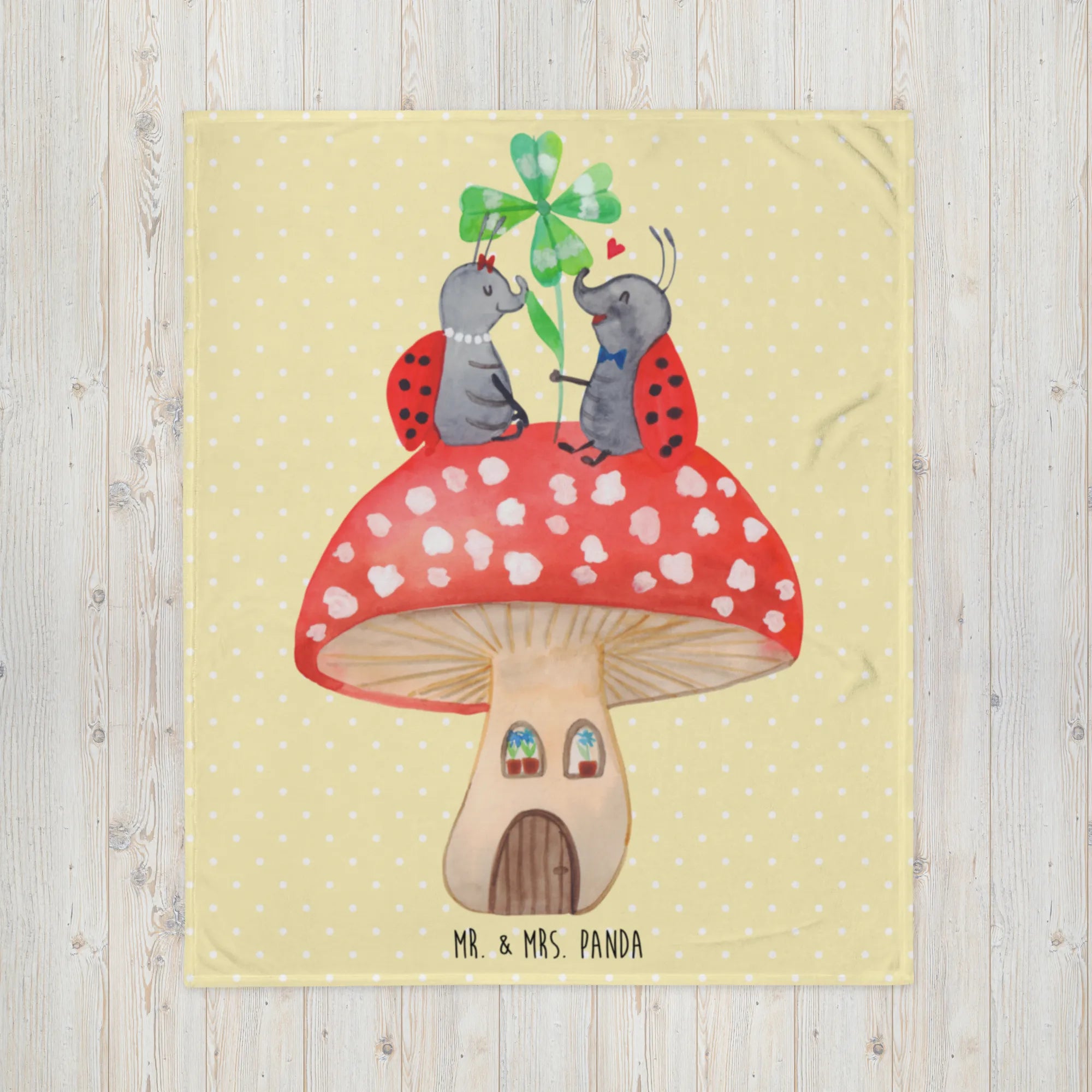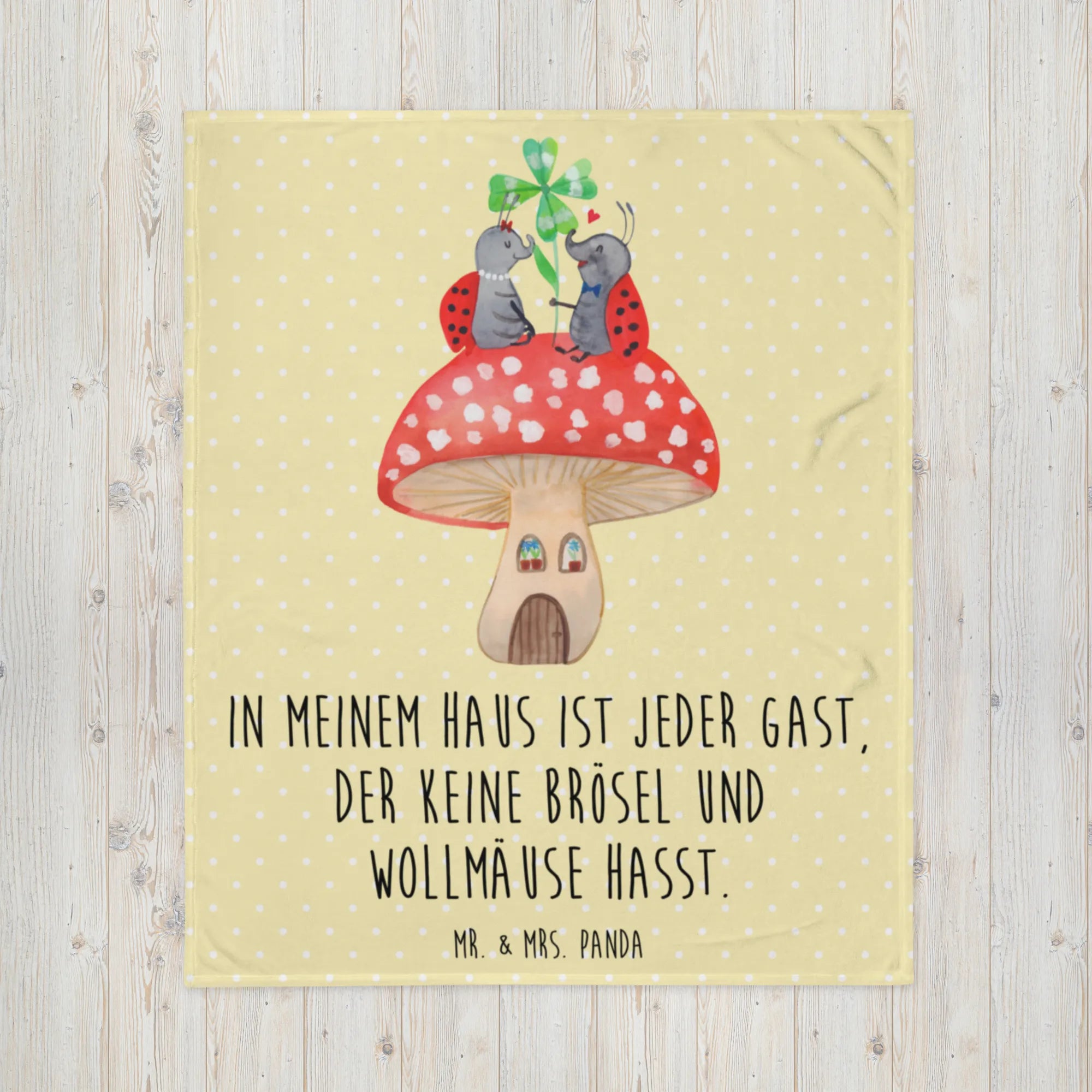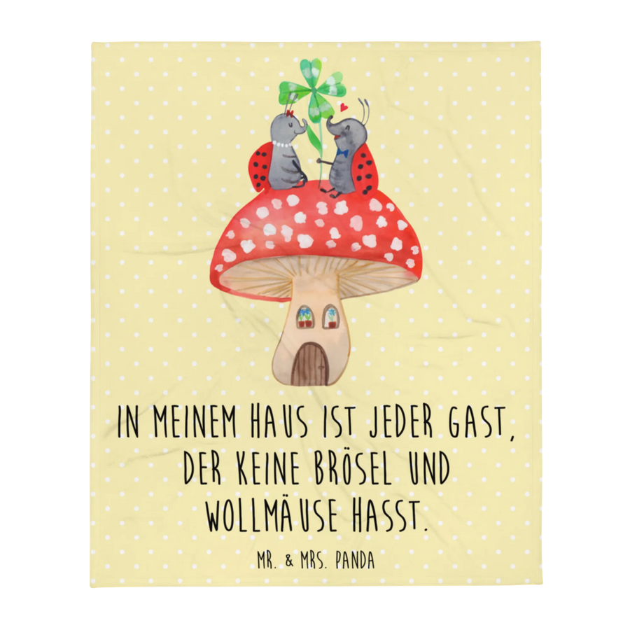 Kuscheldecke Marienkäfer Fliegenpilz - mit Spruch - Gelb Pastell