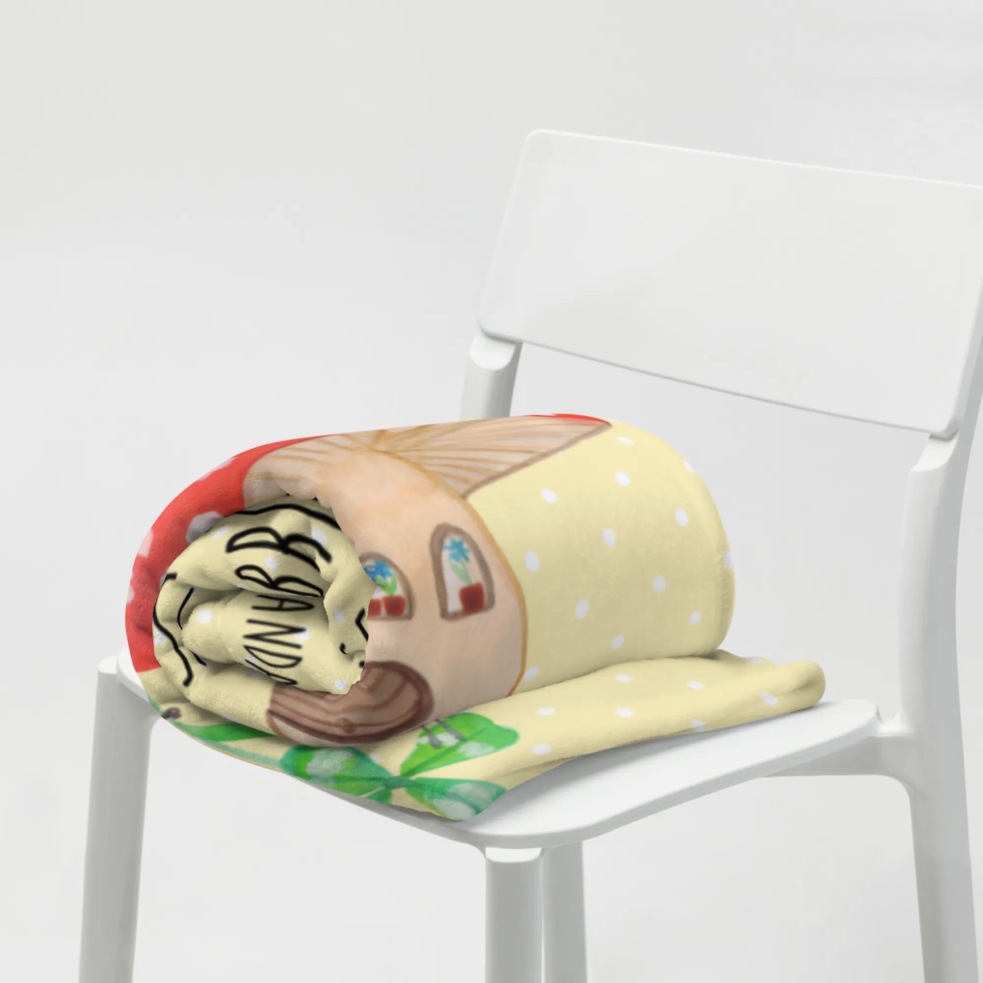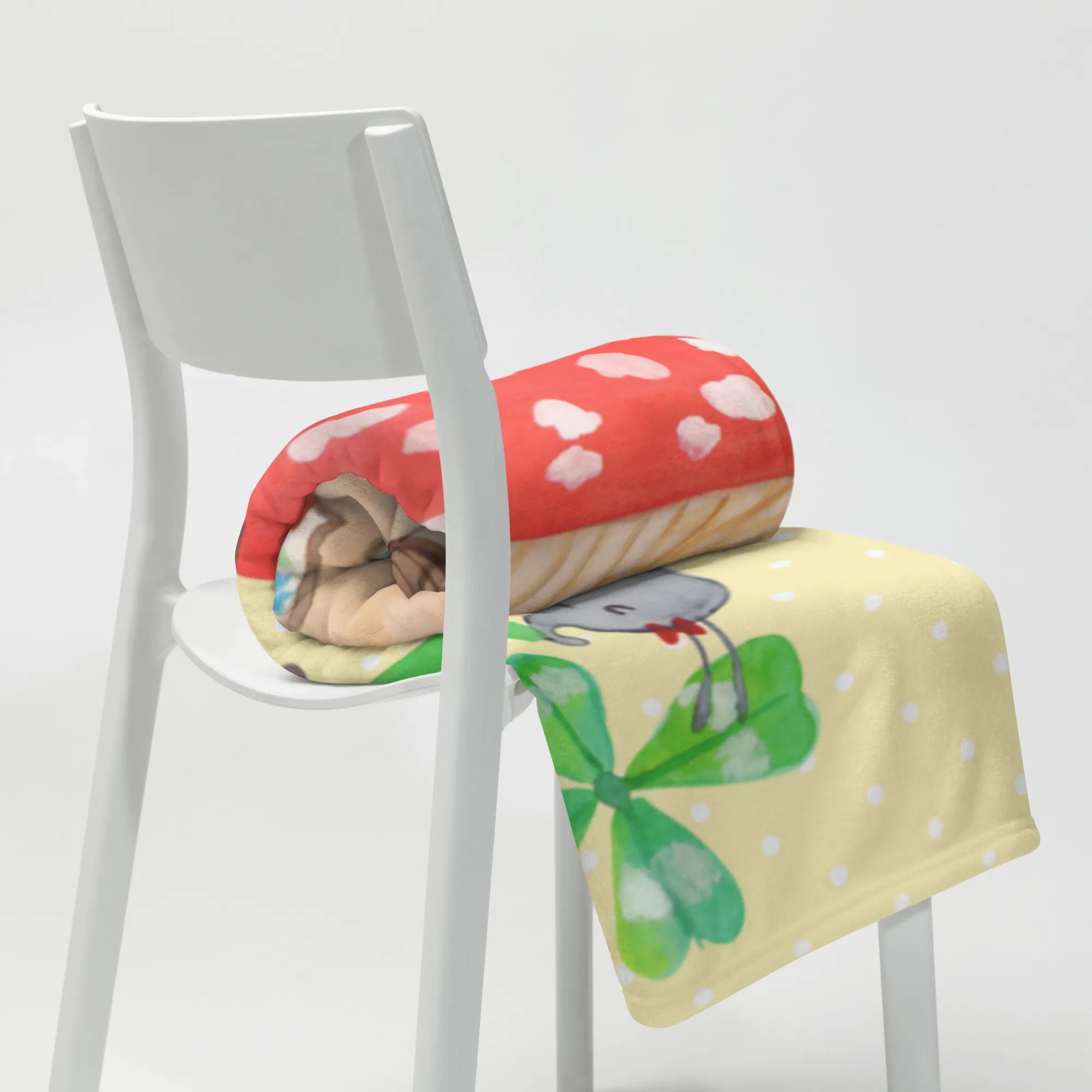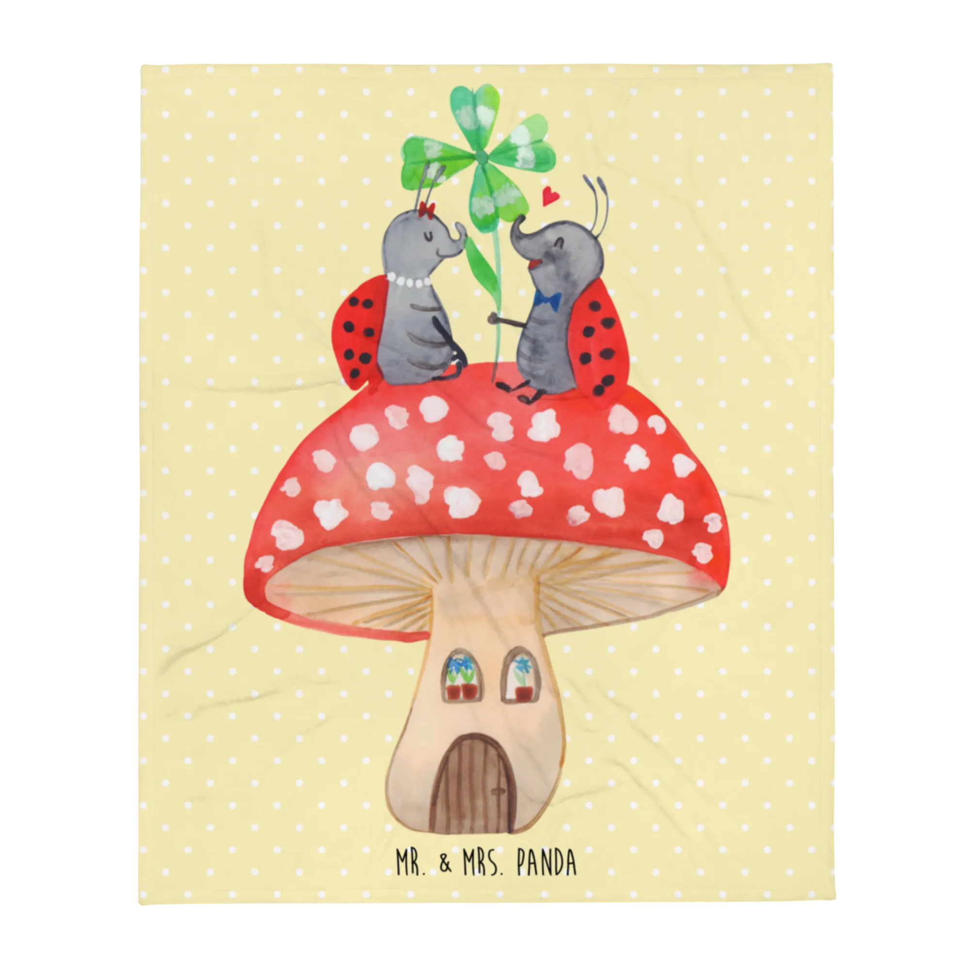 Kuscheldecke Marienkäfer Fliegenpilz - mit Spruch - Gelb Pastell
