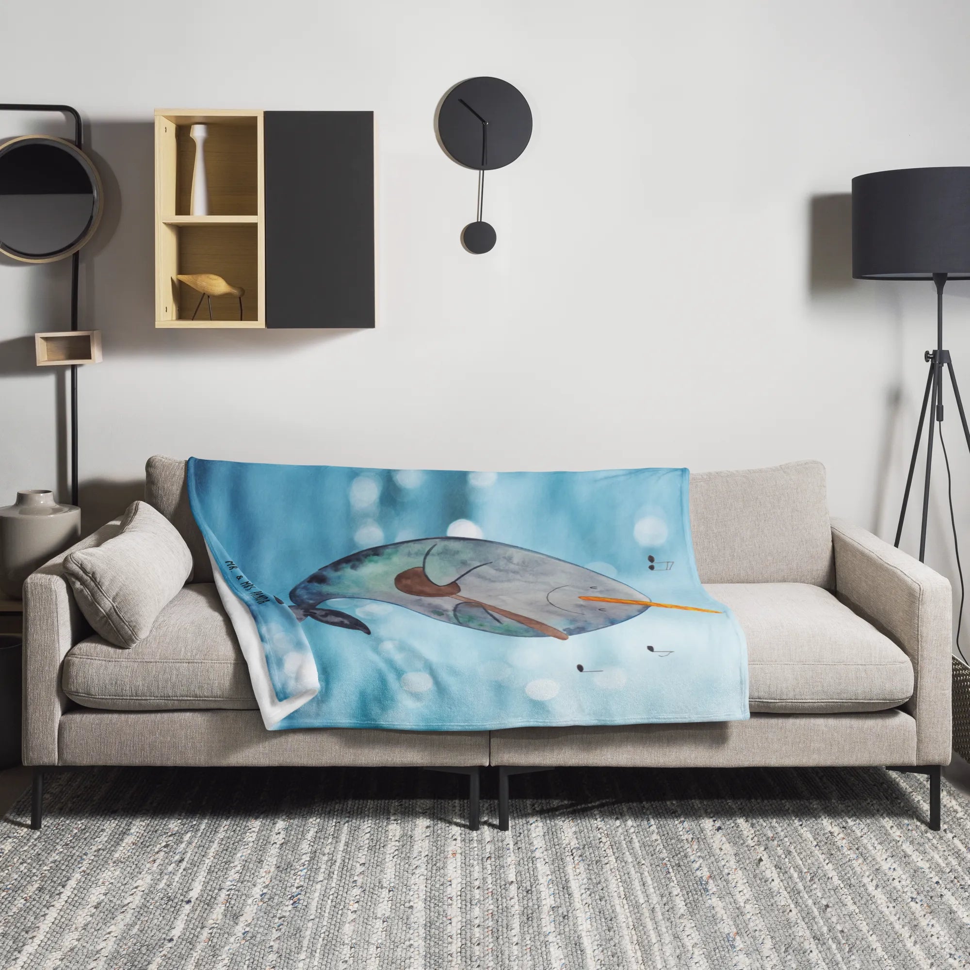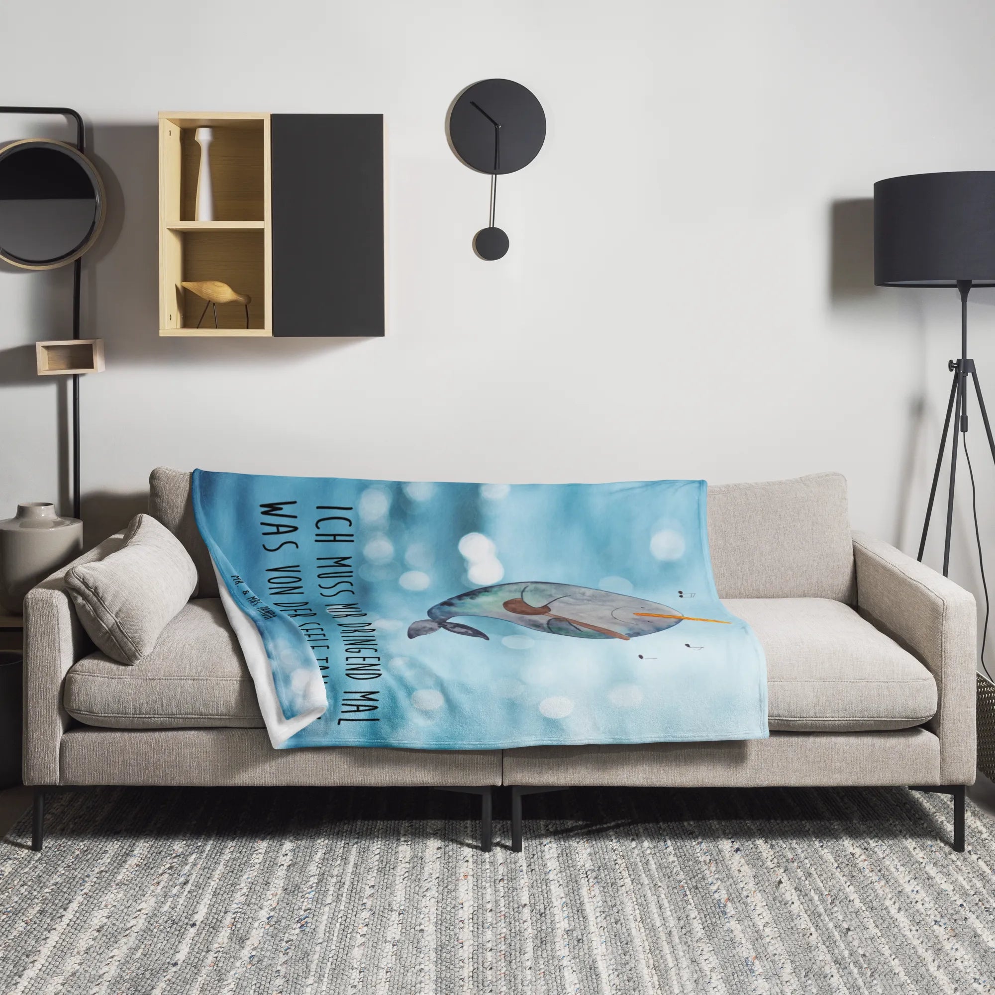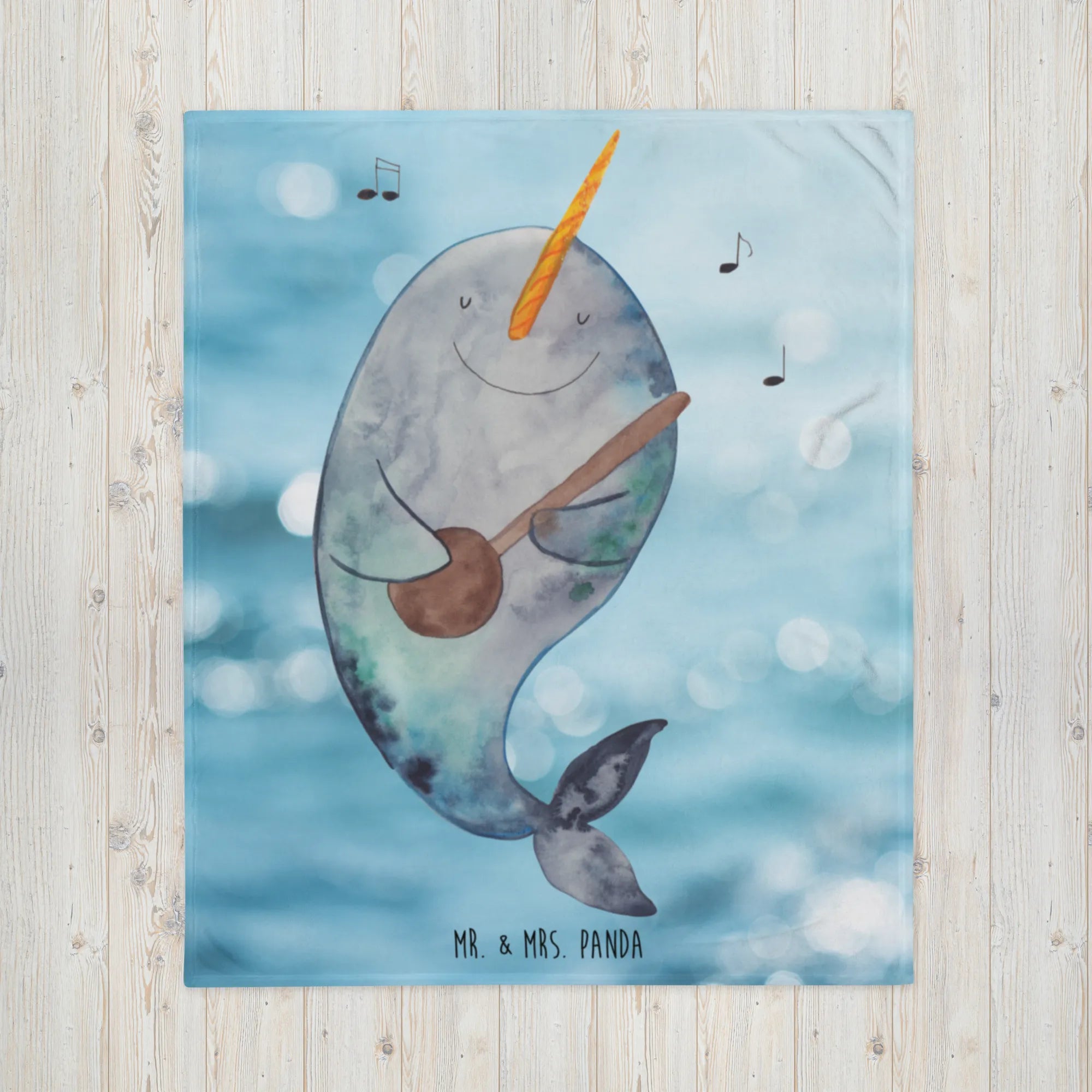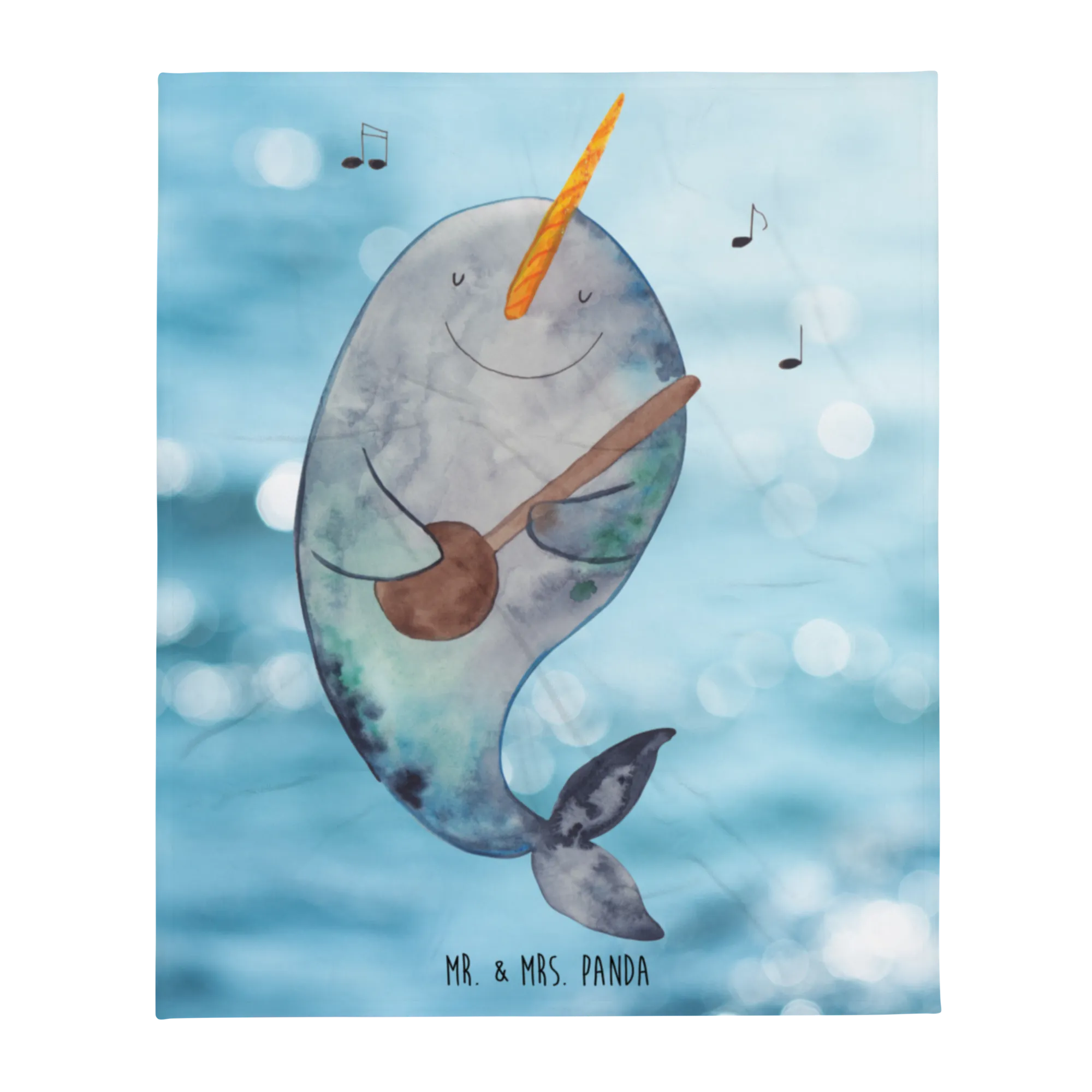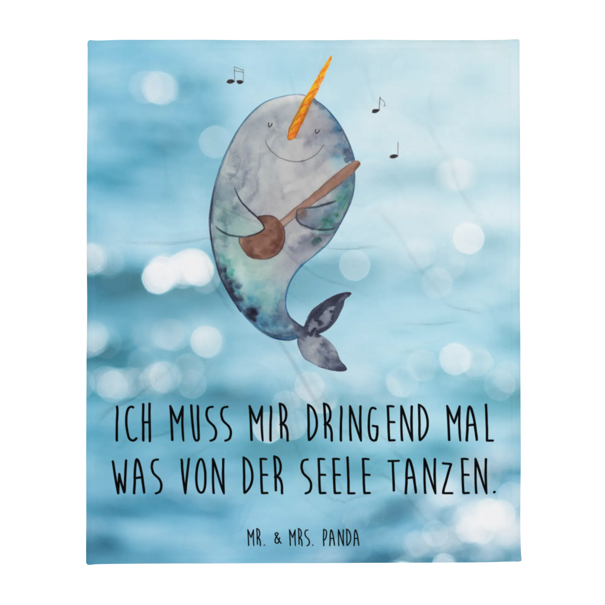 Kuscheldecke Narwal Gitarre - mit Spruch - Oceanblue