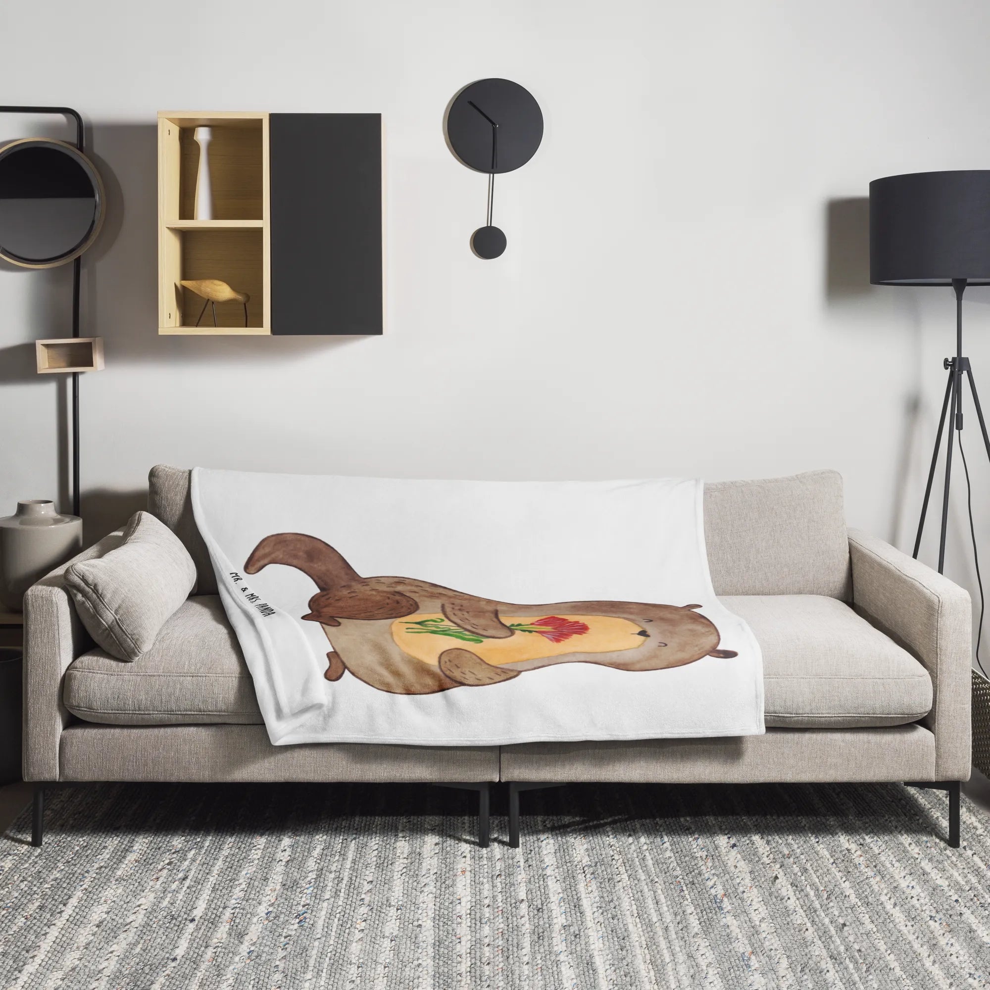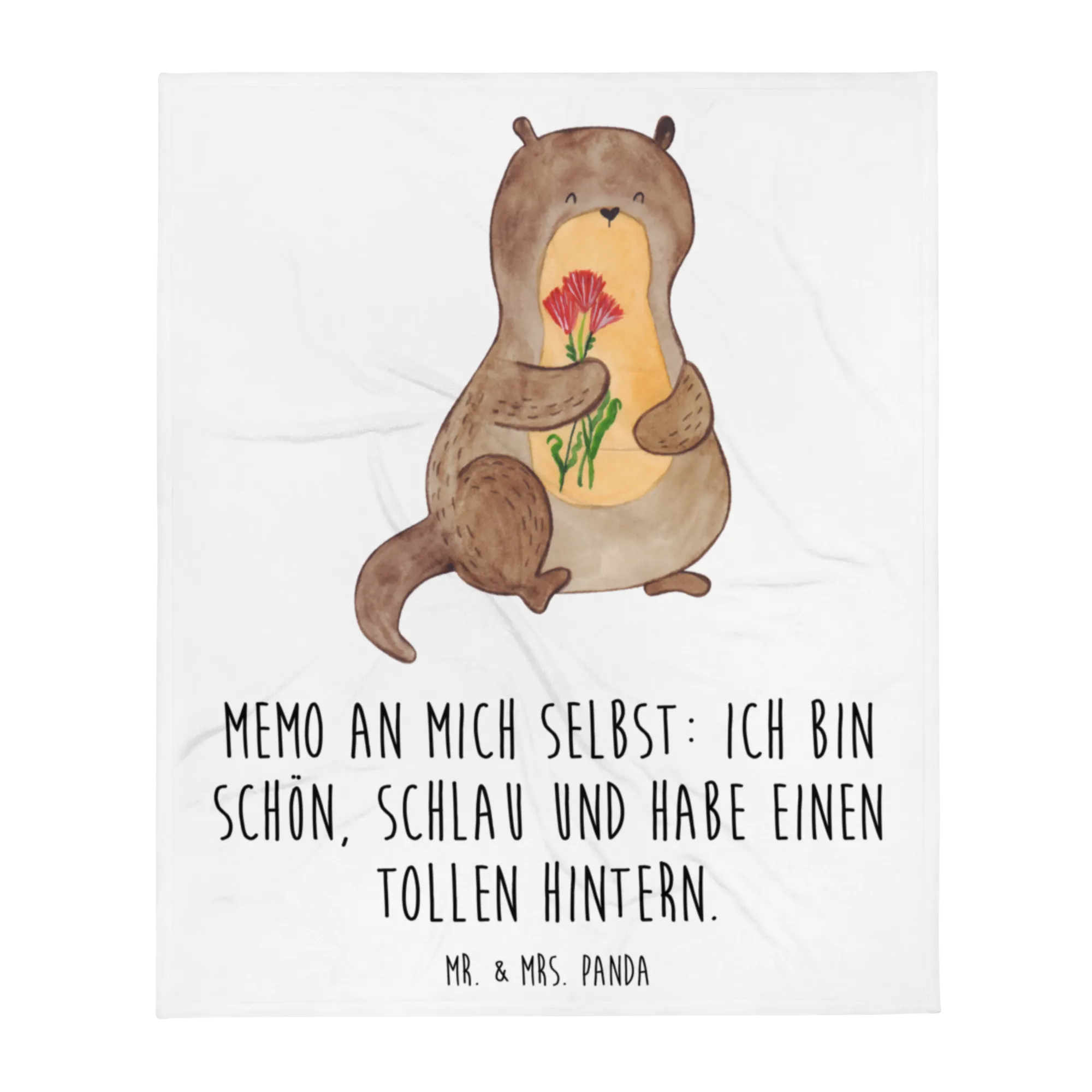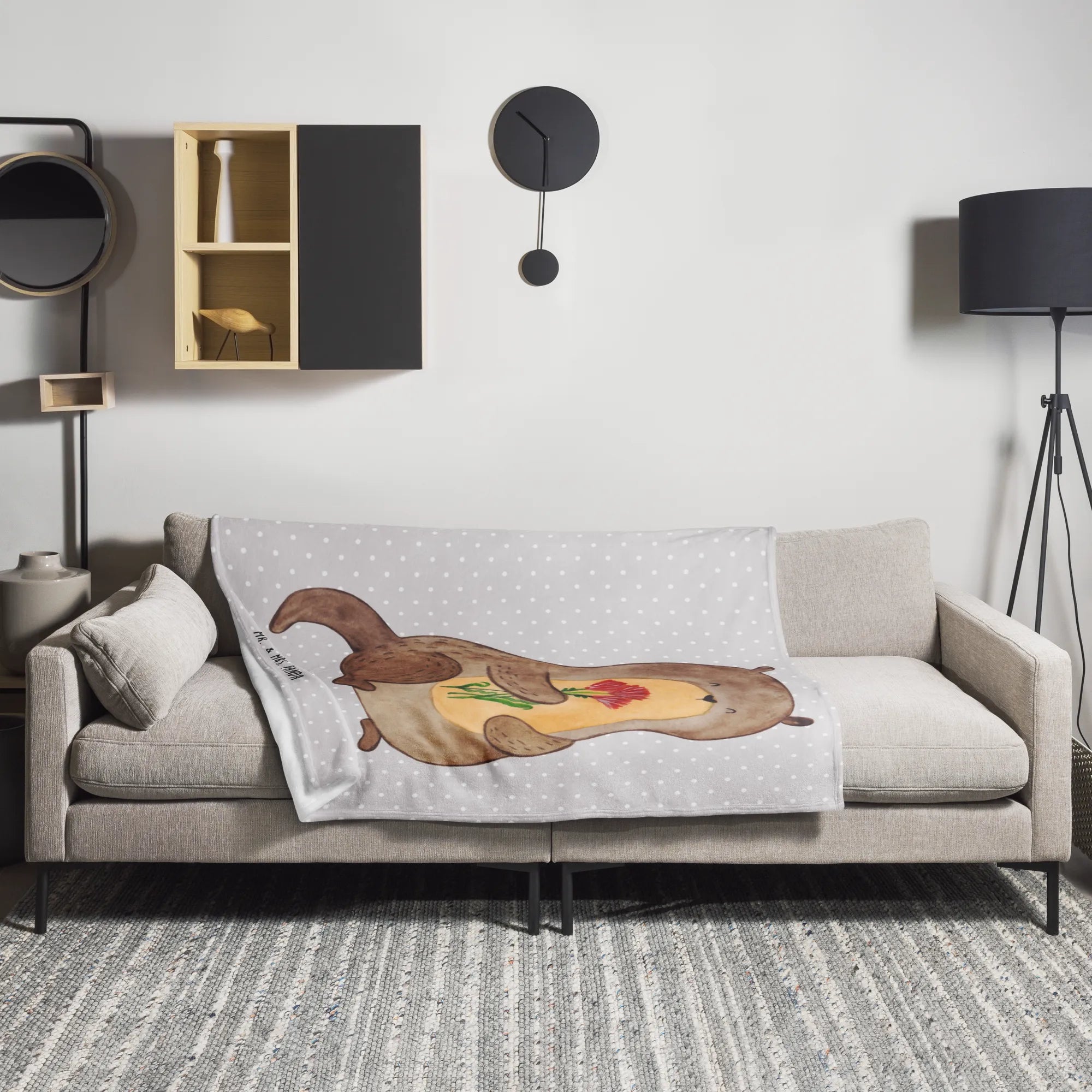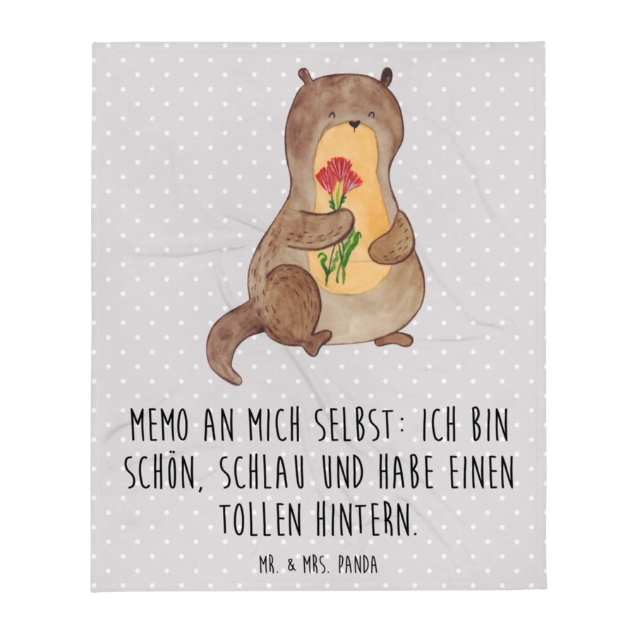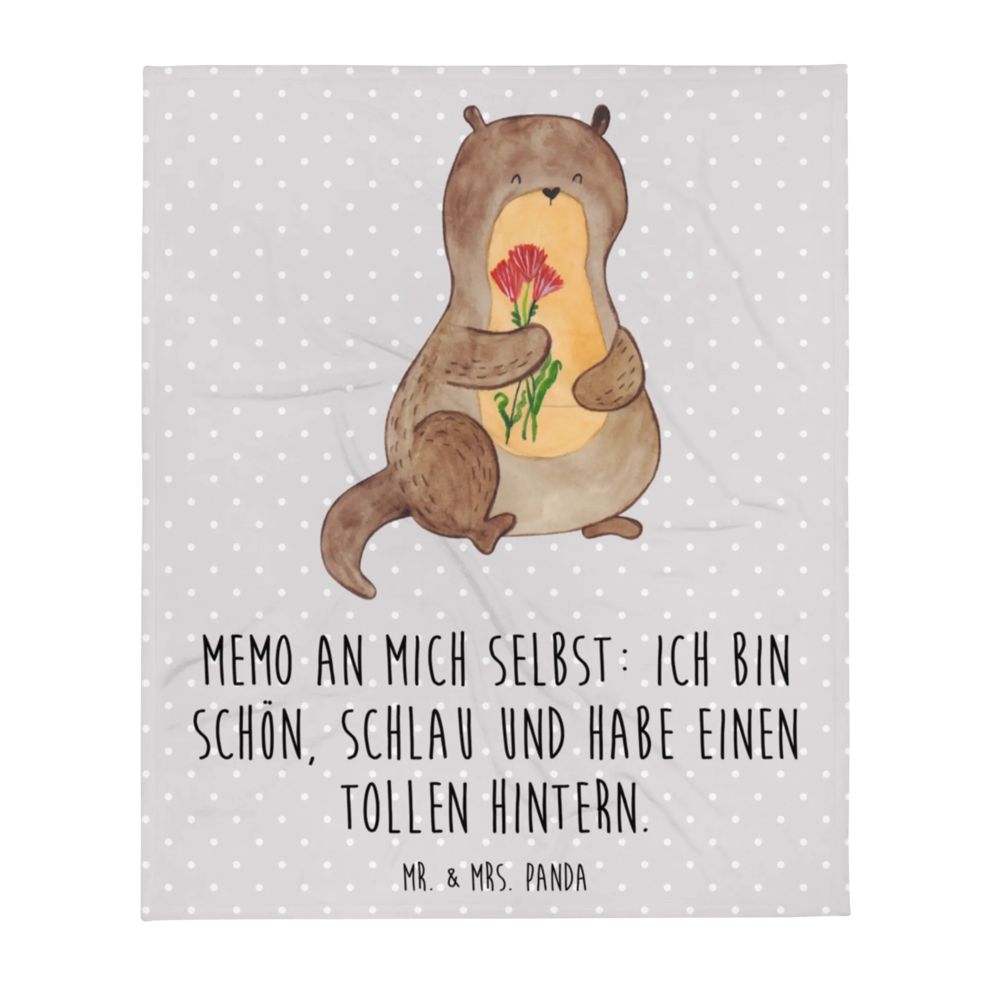 Kuscheldecke Otter Blumenstrauß - mit Spruch - Grau Pastell