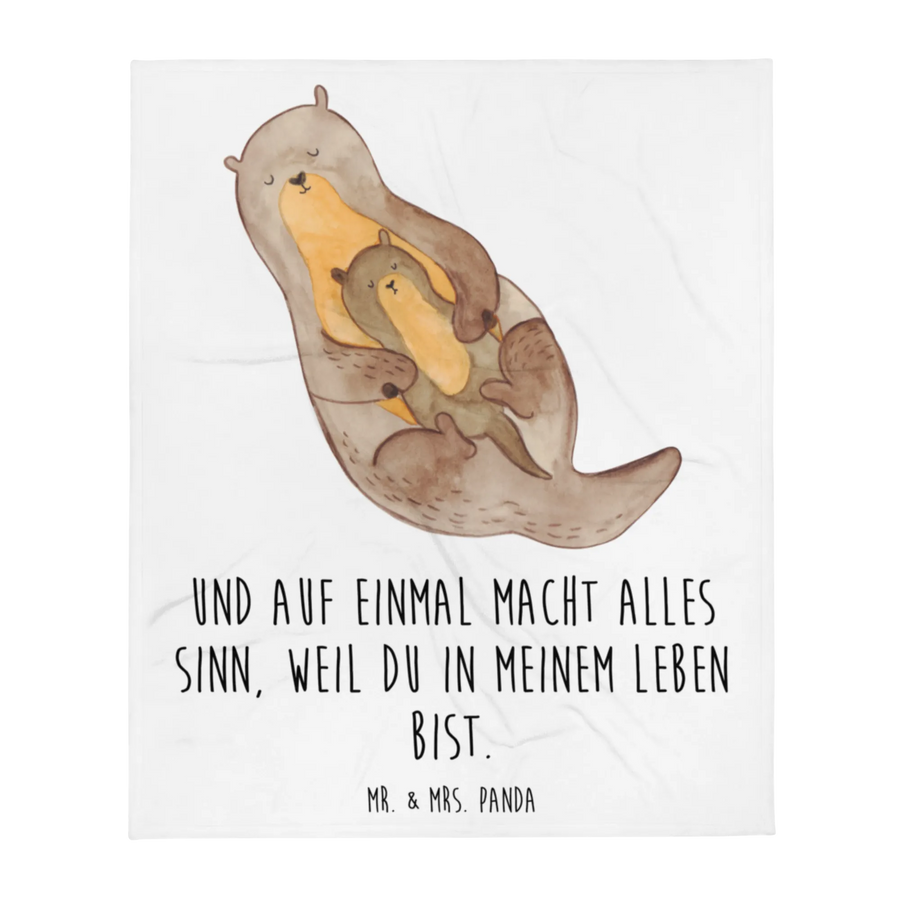 Kuscheldecke Otter mit Kind - mit Spruch - Weiß