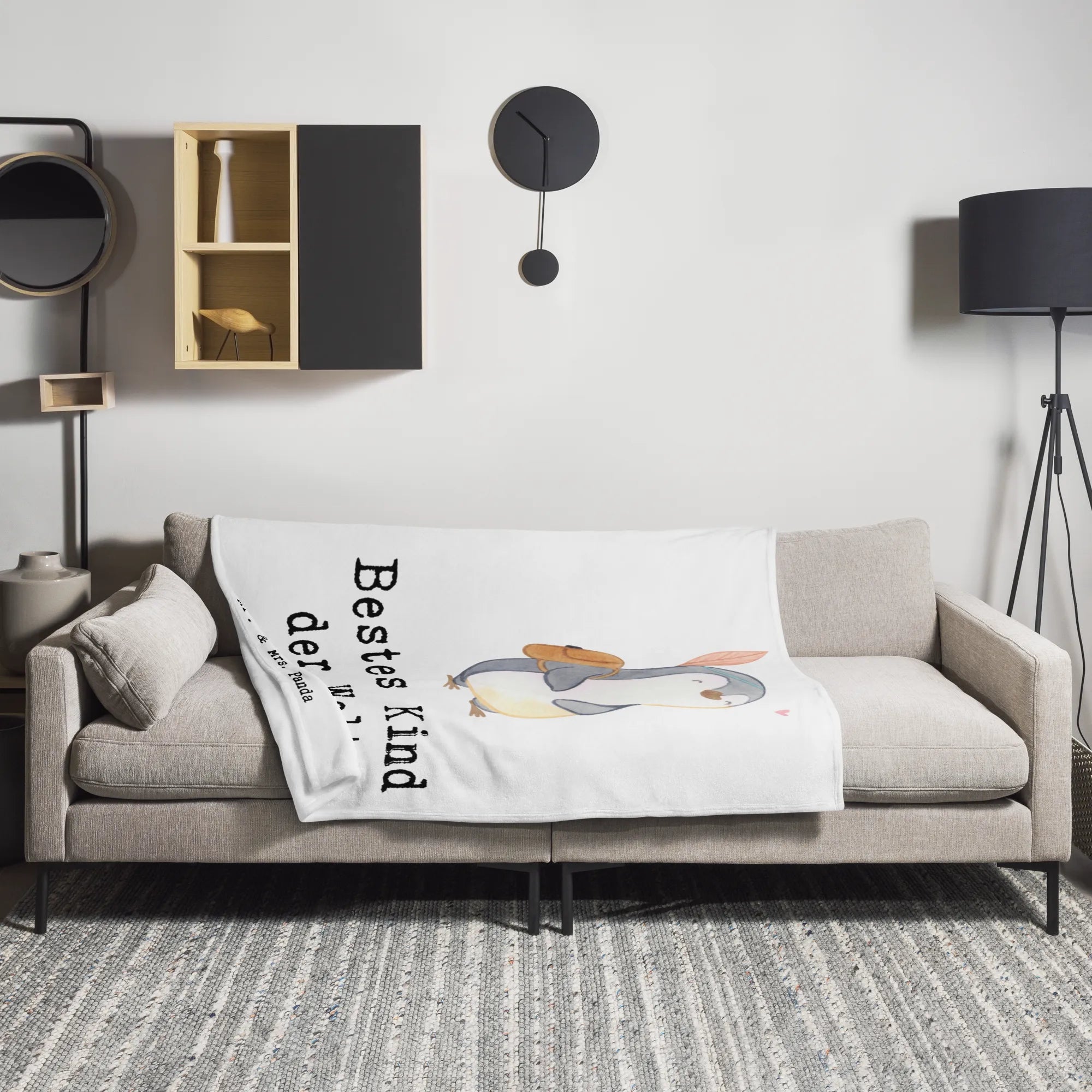 Kuscheldecke Pinguin Bestes Kind der Welt - Grau Pastell