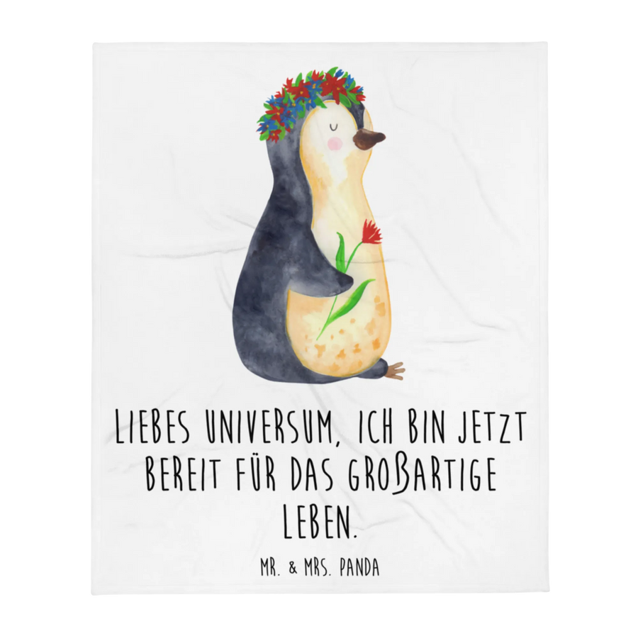 Kuscheldecke Pinguin Blumen - mit Spruch - Weiß