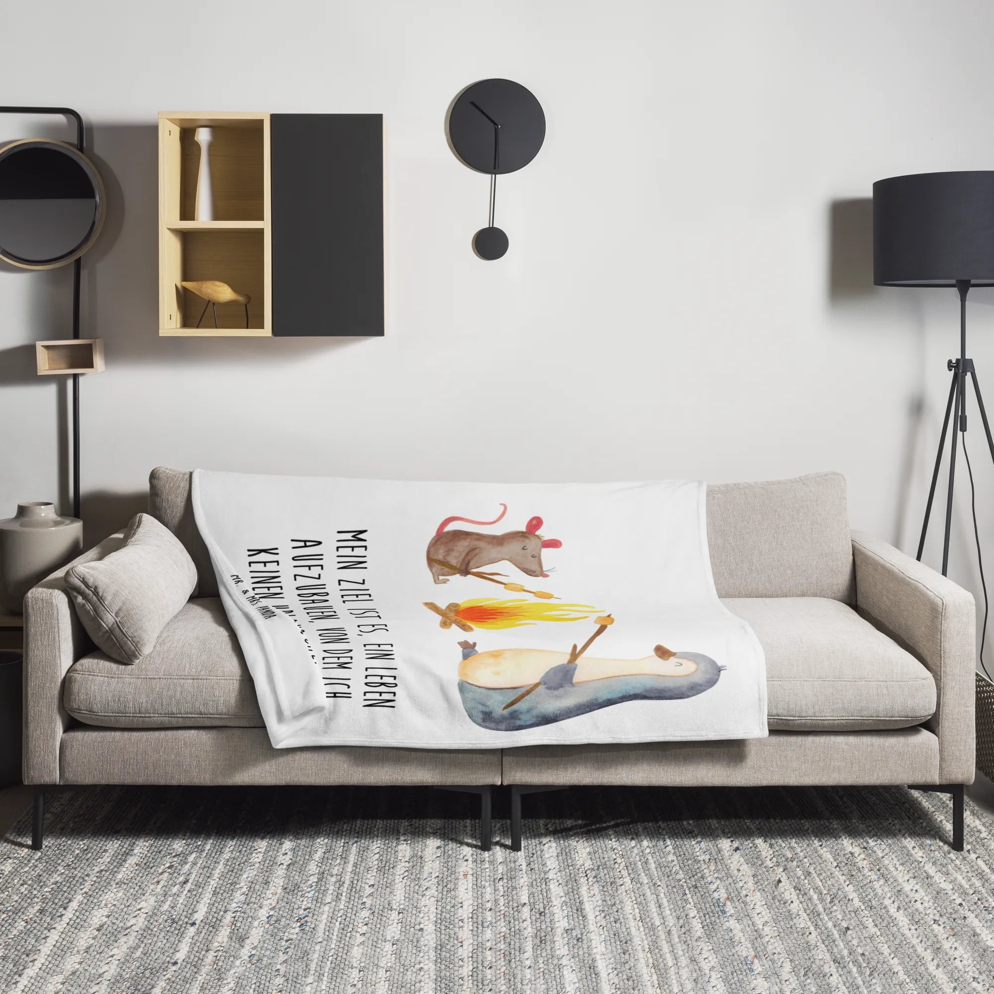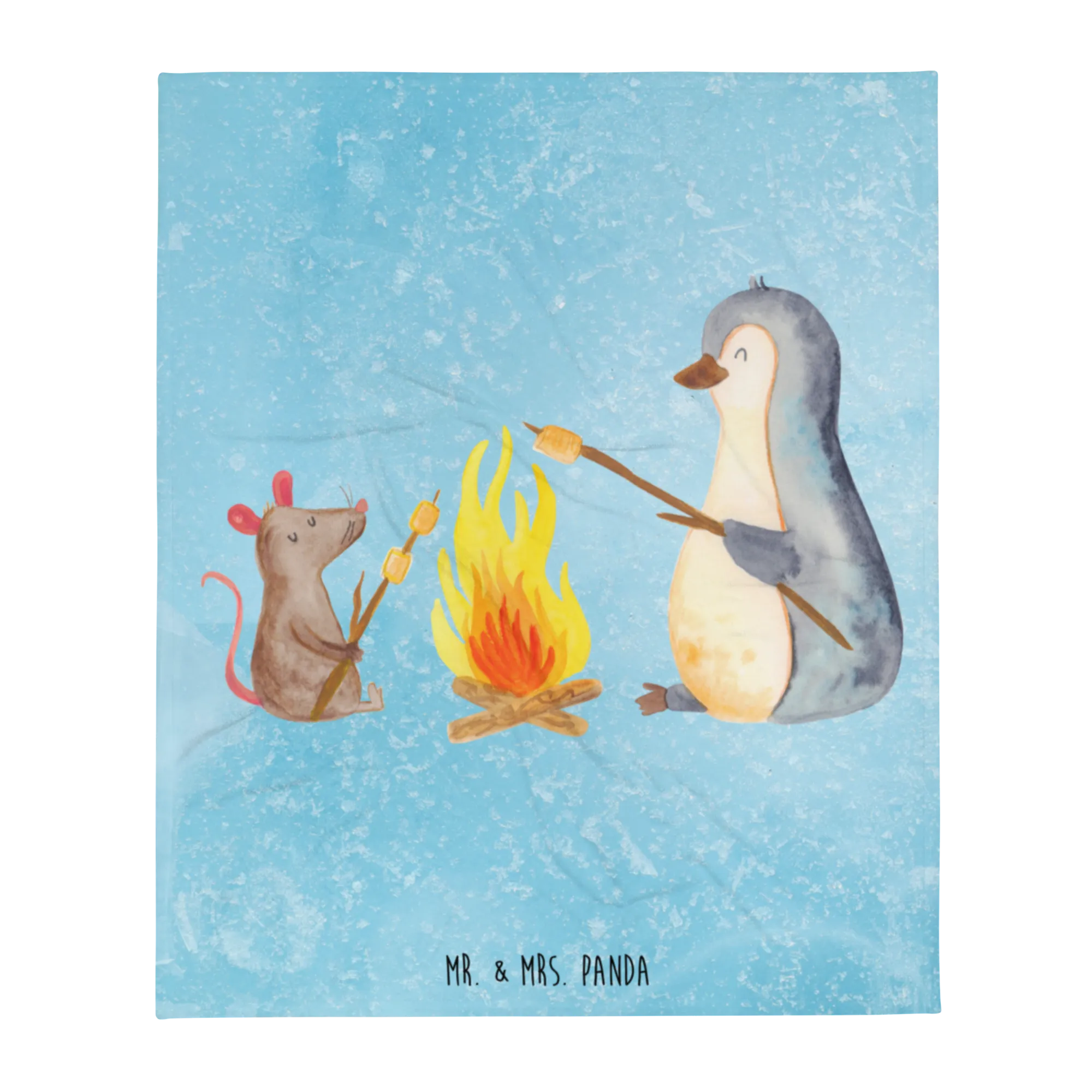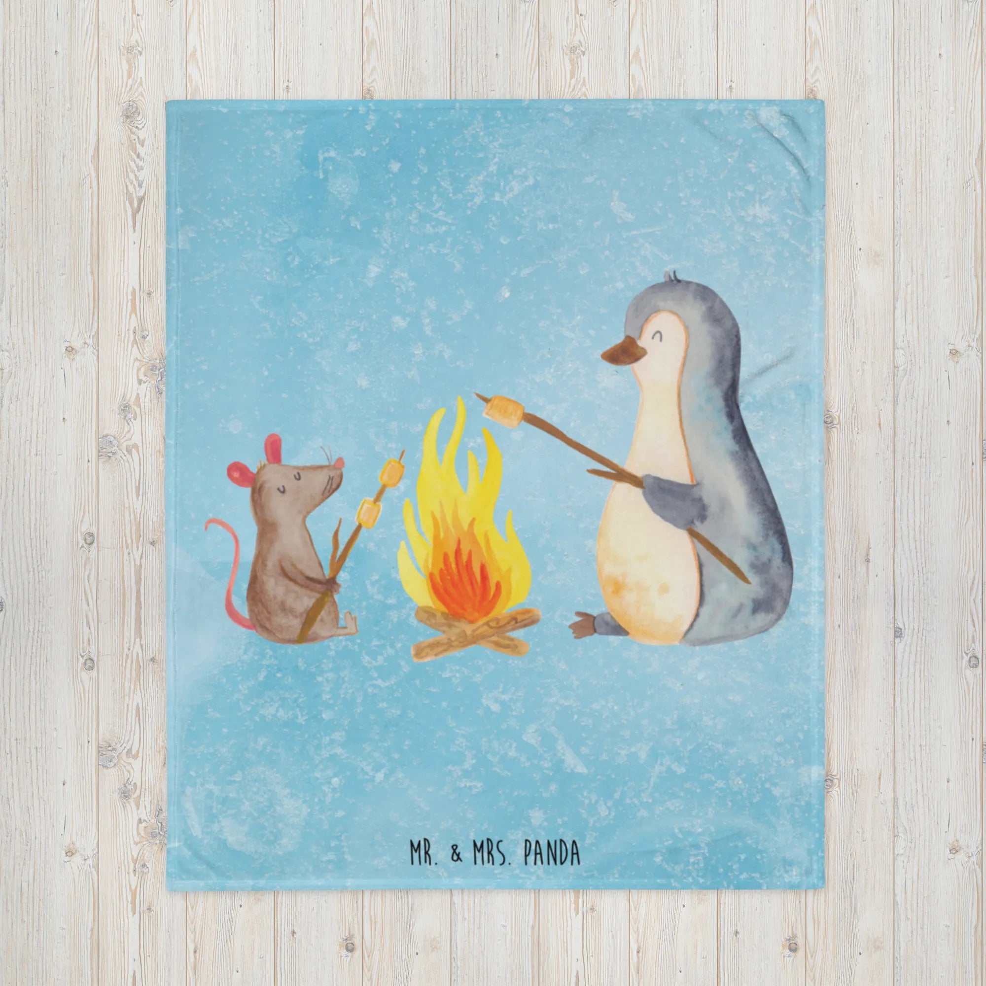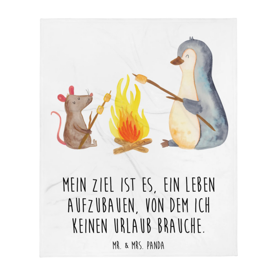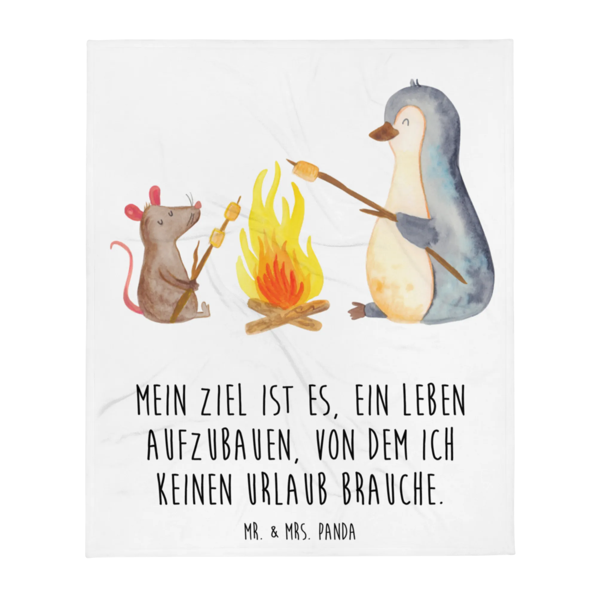 Kuscheldecke Pinguin Lagerfeuer - mit Spruch - Weiß
