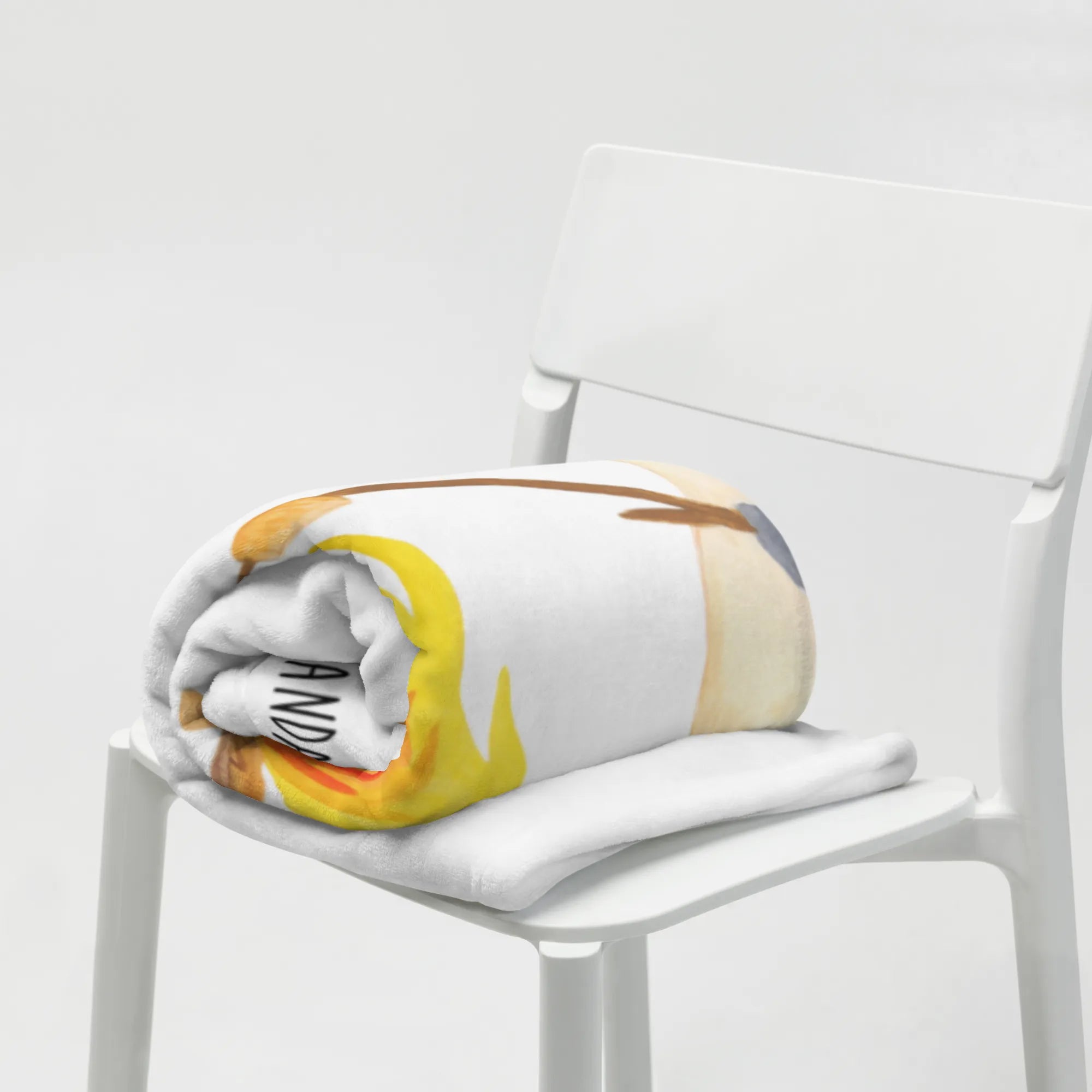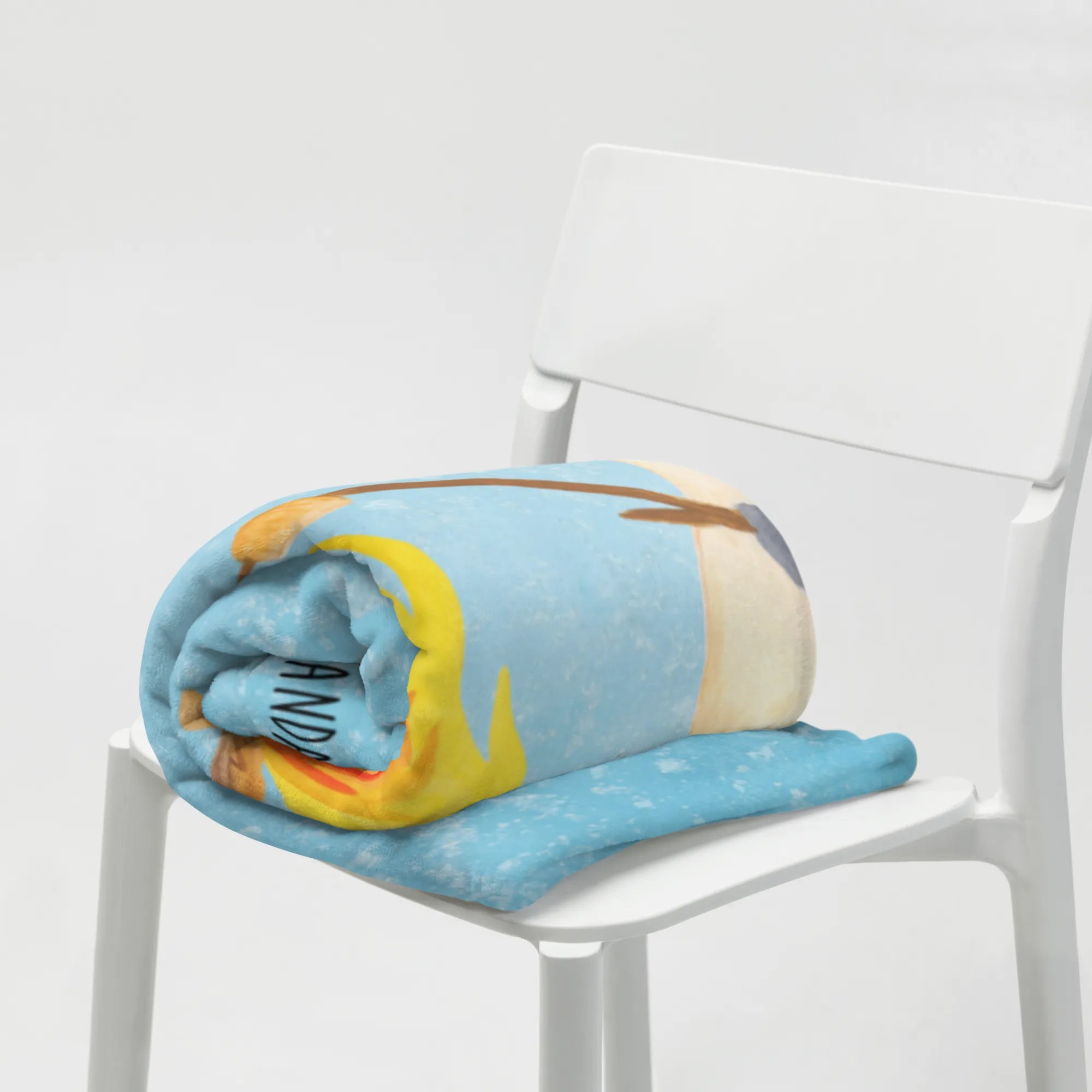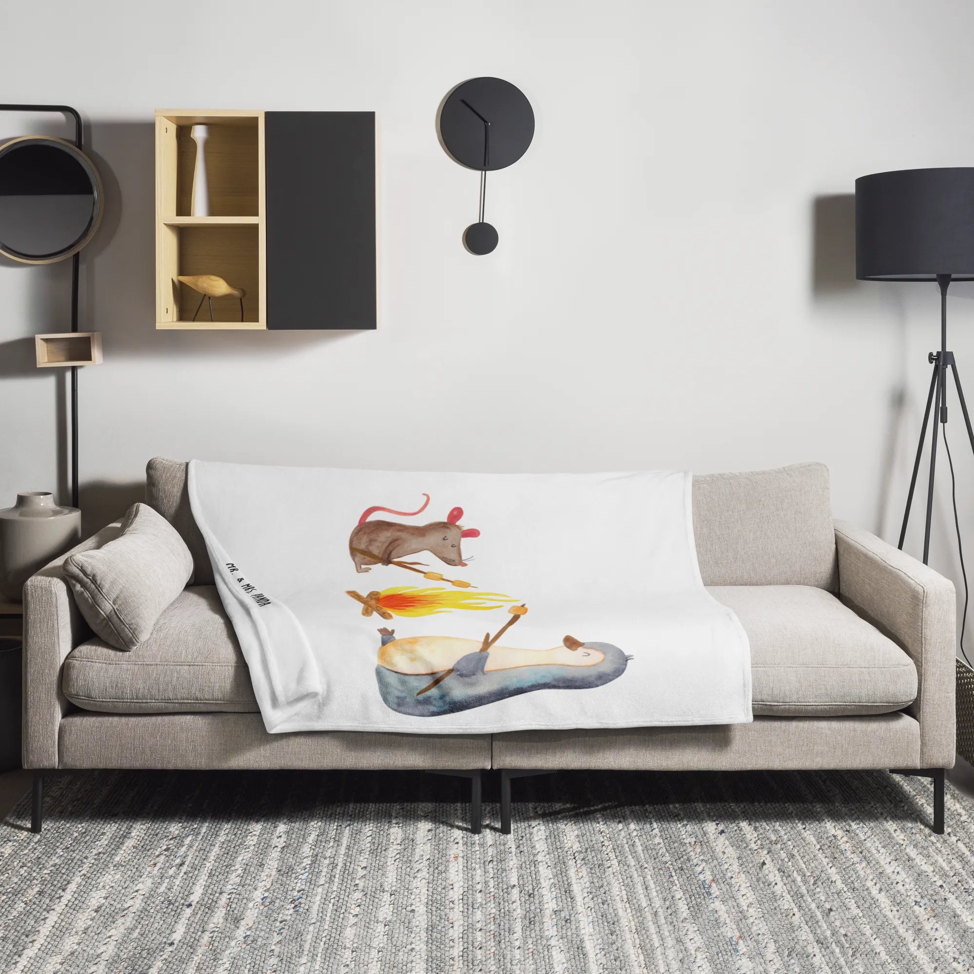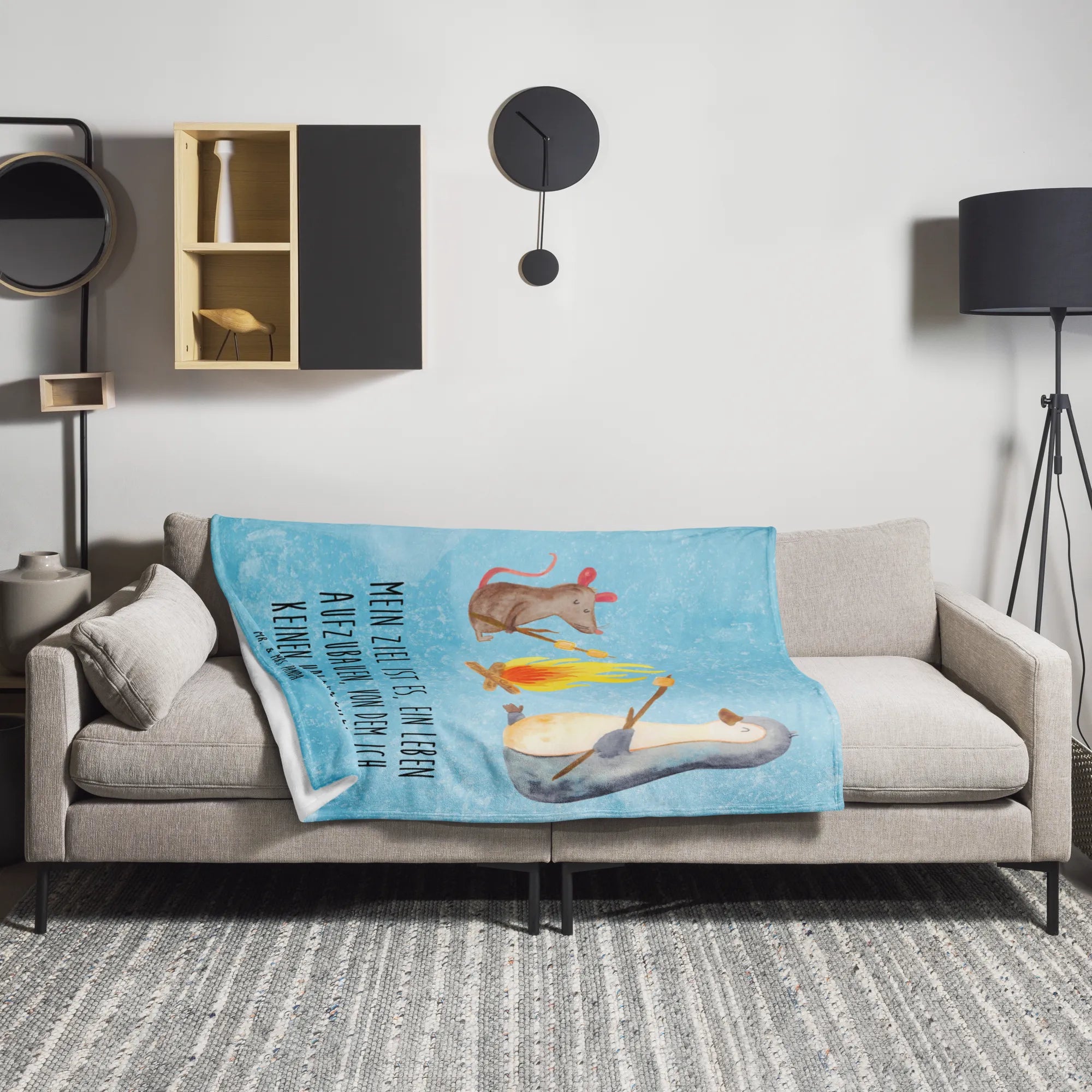 Kuscheldecke Pinguin Lagerfeuer - mit Spruch - Weiß