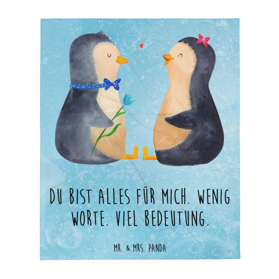 Kuscheldecke Pinguin Pärchen - mit Spruch - Eisblau
