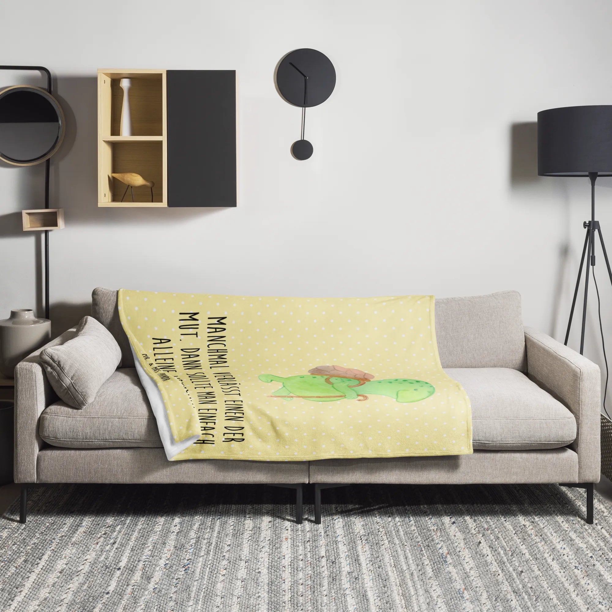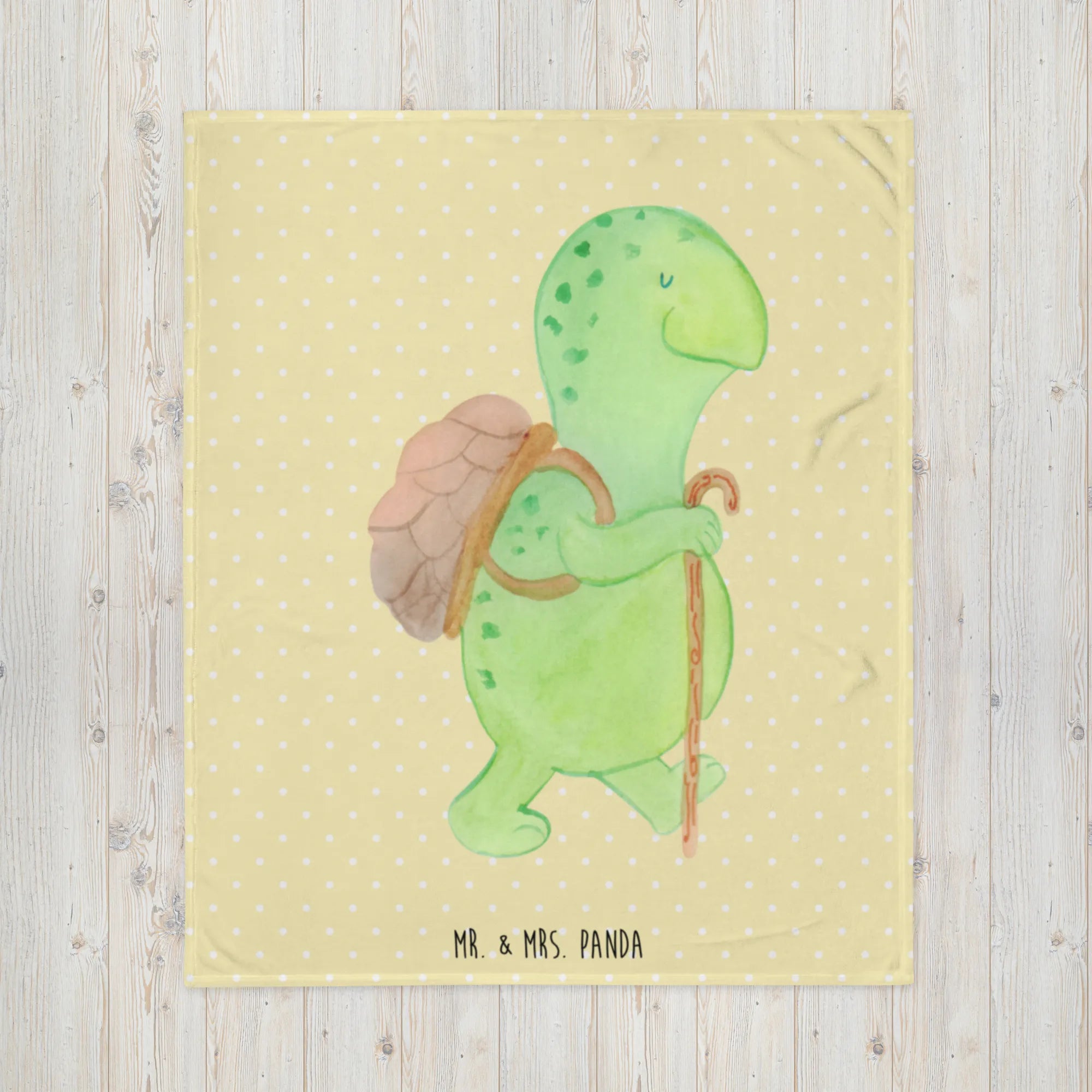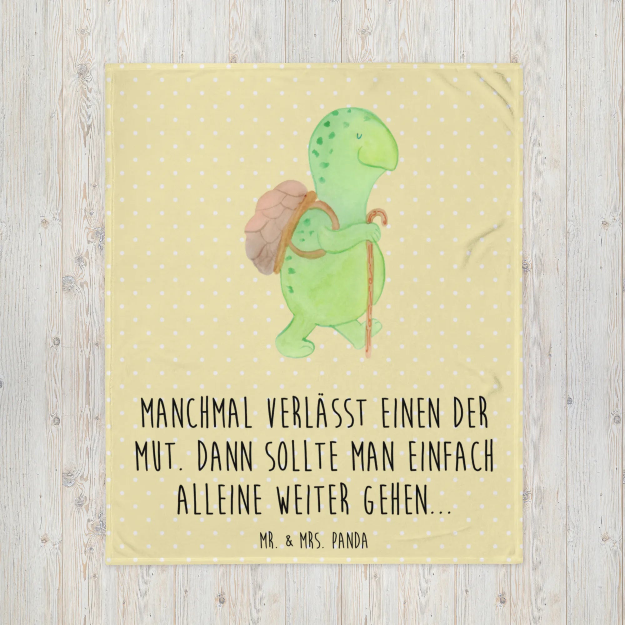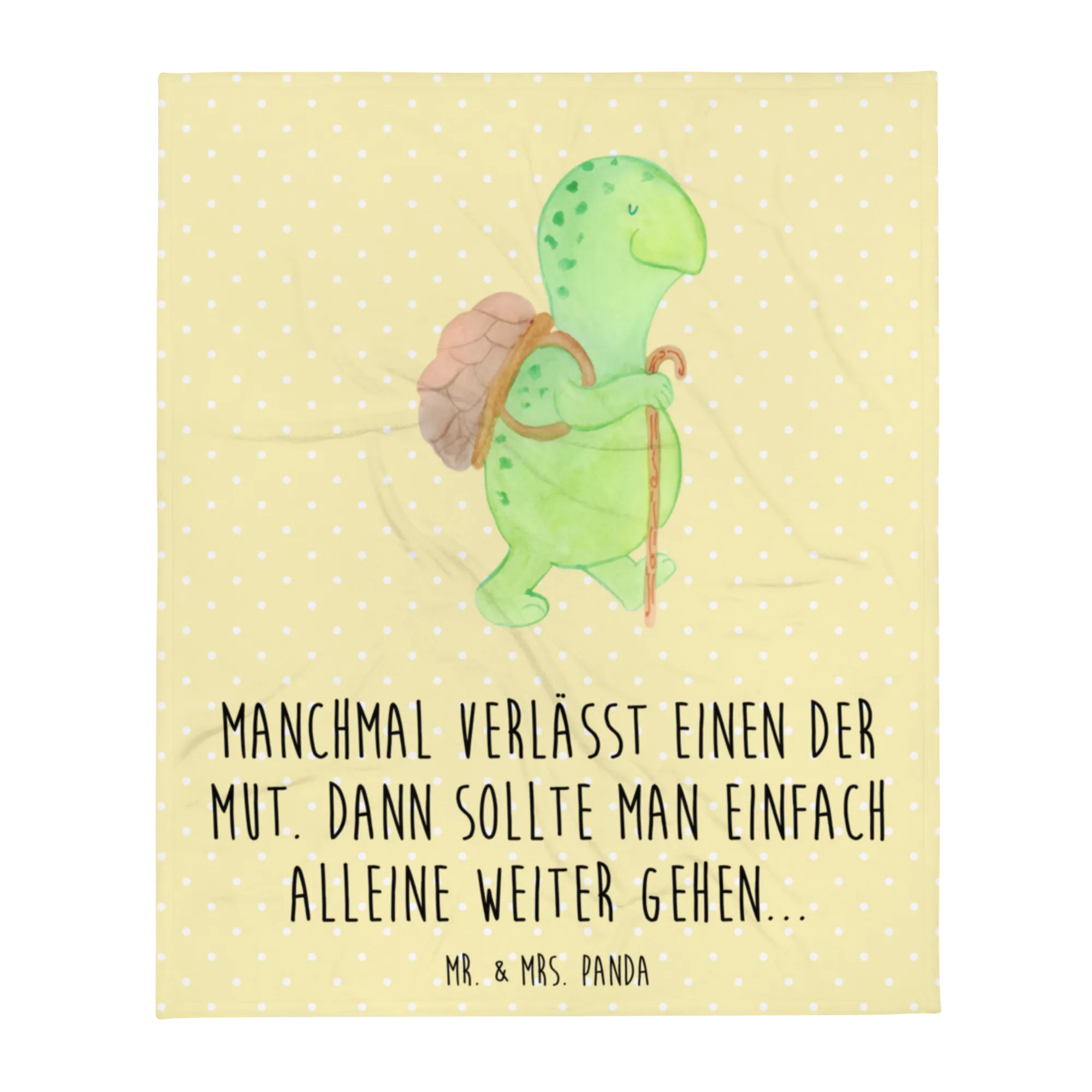 Kuscheldecke Schildkröte Wanderer - mit Spruch - Gelb Pastell