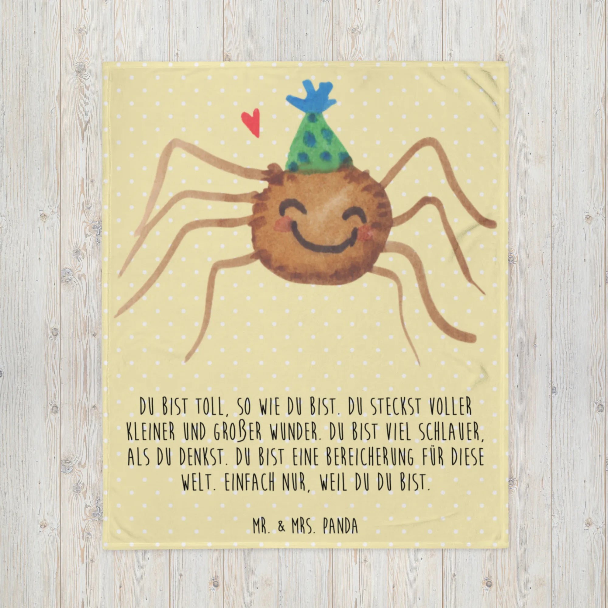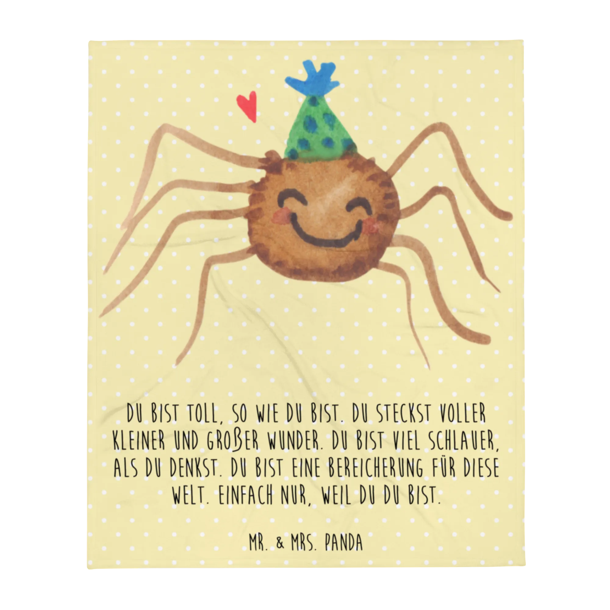 Begegne der Welt mit einem Lächeln – genau wie unsere liebenswerte Spinne Agathe aus der Kollektion „Spinne Agathe“. Die Kuscheldecke "Spinne Agathe Party" von Mr. & Mrs. Panda ist nicht nur eine gemütliche Sofadecke, sondern ein kleines Geschenk voller Motivation, Selbstliebe und Freude. Mrs. Panda hat Agathe mit Aquarell liebevoll handgezeichnet: der Partyhut, das freundliche Grinsen und das kleine Herzchen machen dieses Motiv zu einem echten Herzensstück.