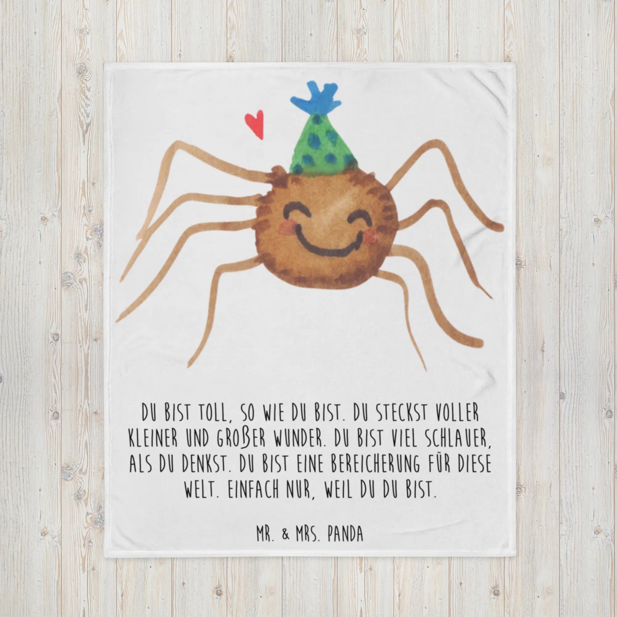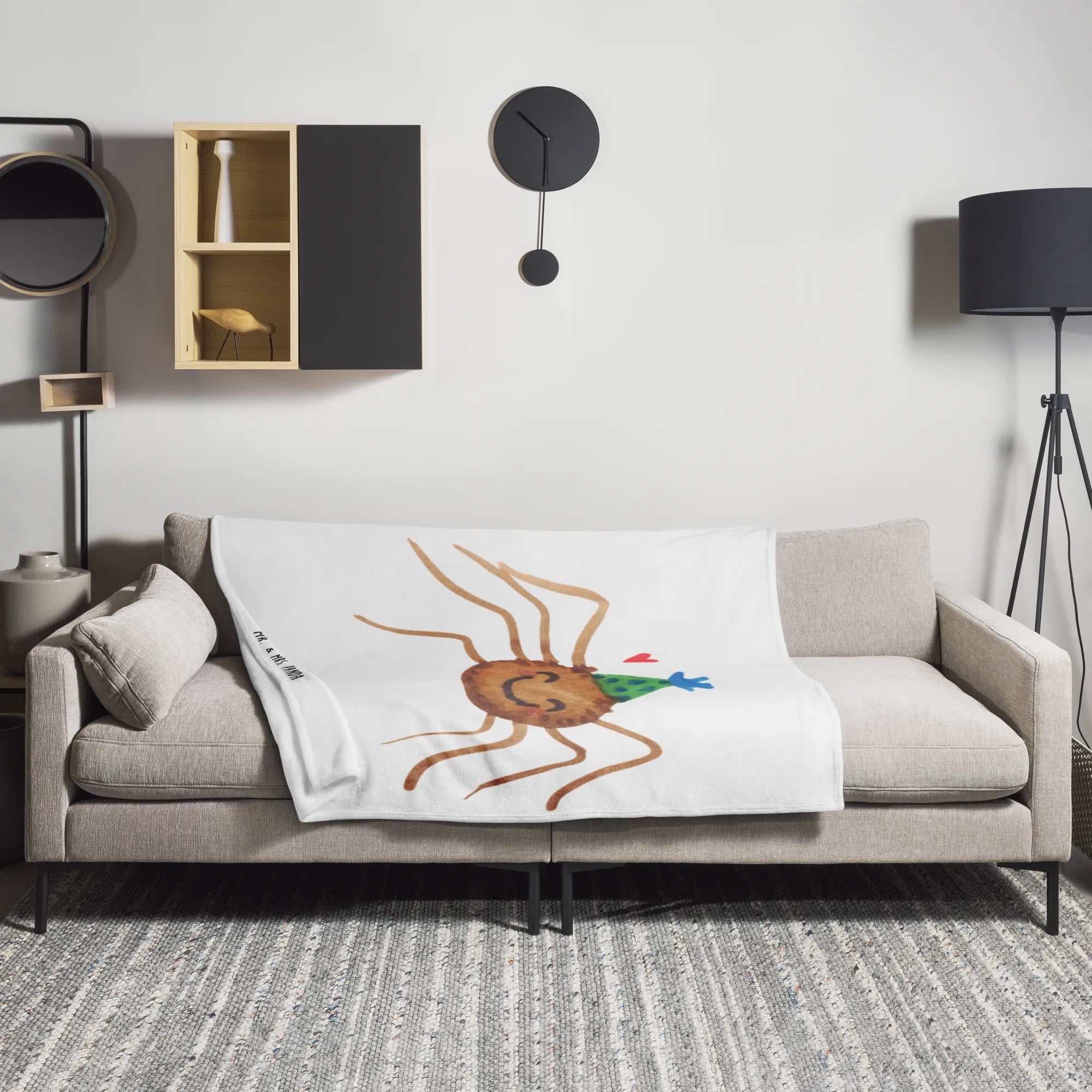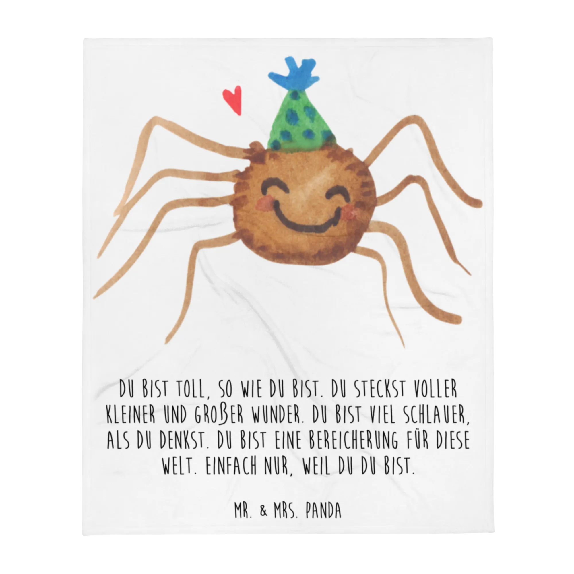 Kuscheldecke Spinne Agathe Party - mit Spruch - Weiß