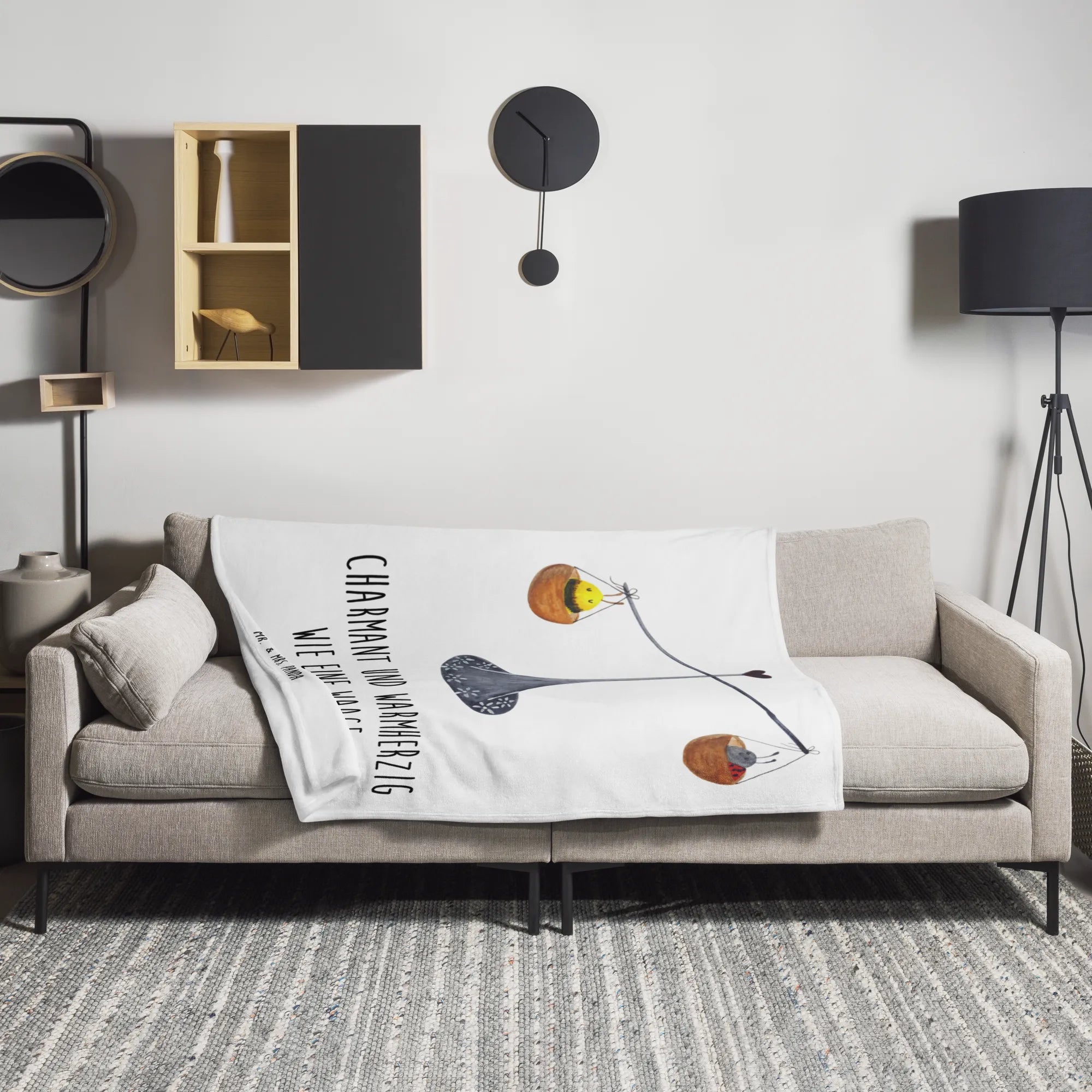 Die Kuscheldecke von Mr. & Mrs. Panda ist der perfekte Partner für kalte Abende. Mit großzügigen Maßen von 1530 mm x 1530 mm x 5 mm sorgt sie für wohltuende Wärme und molligen Komfort. Hergestellt aus hochwertiger hypoallergener Mikrofaser, ist sie weich und angenehm auf der Haut. Die einseitige Druckseite bringt fröhliche Designs und Sprüche, die nicht nur dekorativ sind, sondern auch gute Laune verbreiten. Egal ob im Wohnzimmer, Schlafzimmer oder beim Camping, diese Kuscheldecke ist immer der perfekte Begleiter. Sehr pflegeleicht, kann sie einfach in der Waschmaschine bei 30°C gewaschen werden. Vor der ersten Nutzung ist eine Wäsche empfohlen, um die besten Ergebnisse zu sichern.