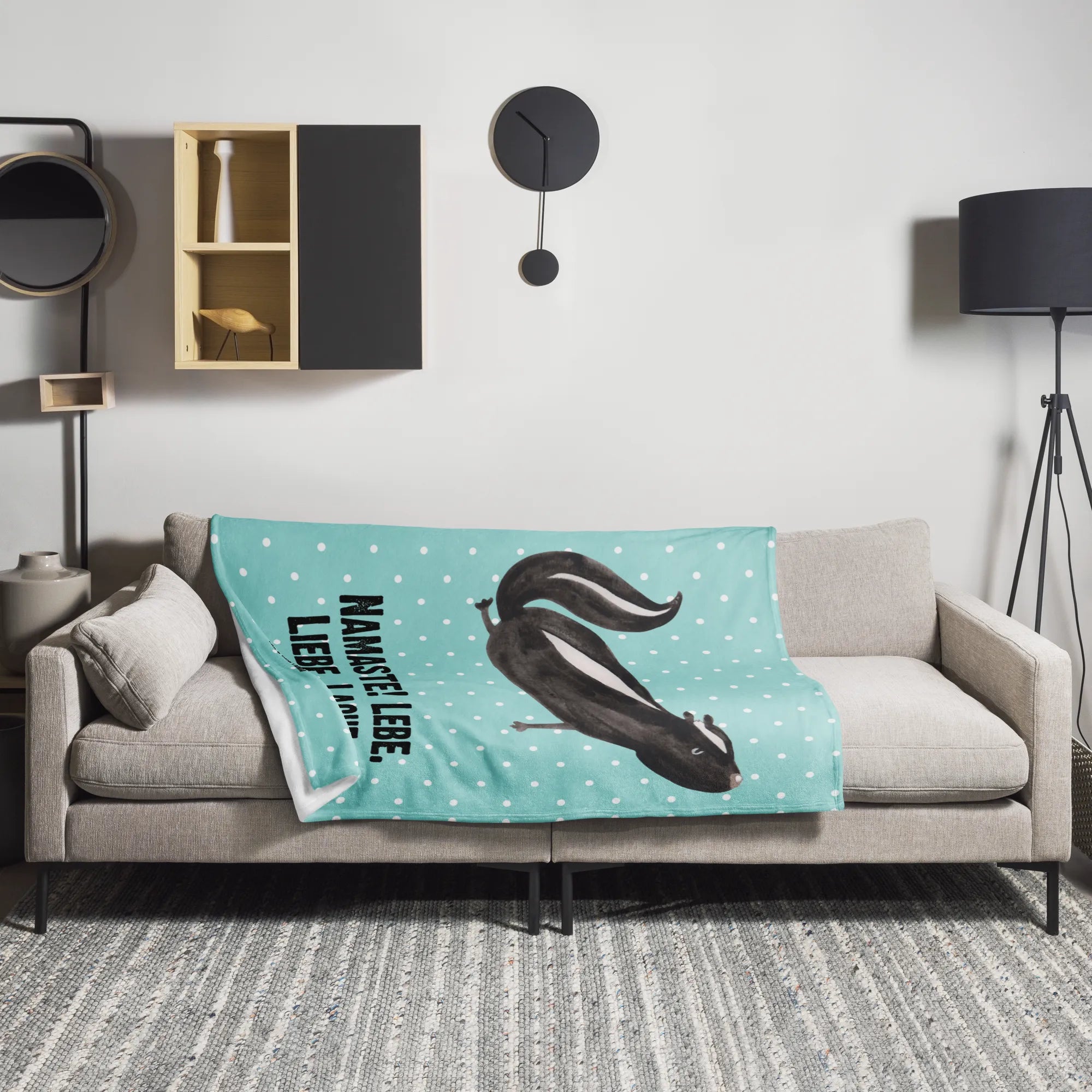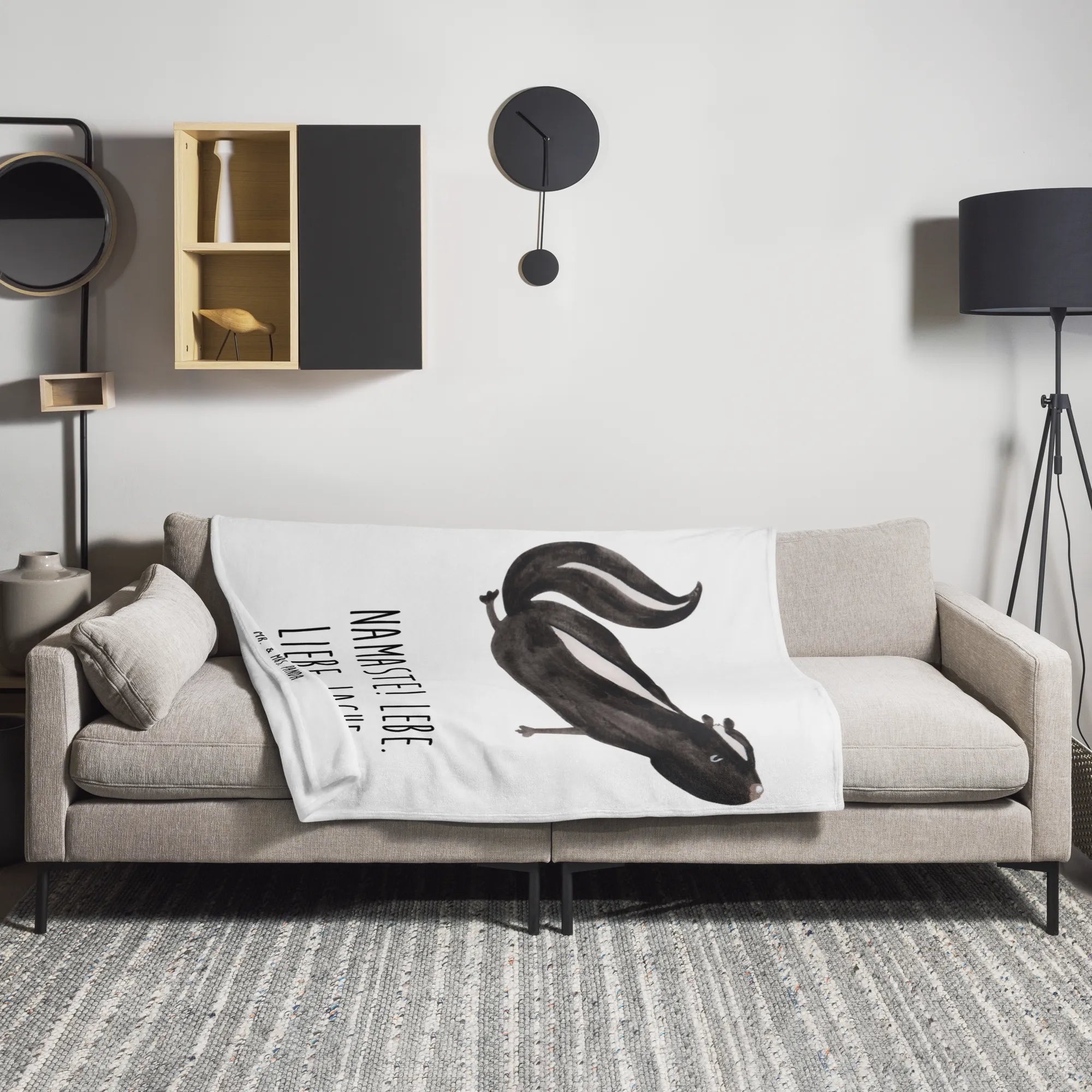 Kuscheldecke Stinktier Yoga - mit Spruch - Weiß
