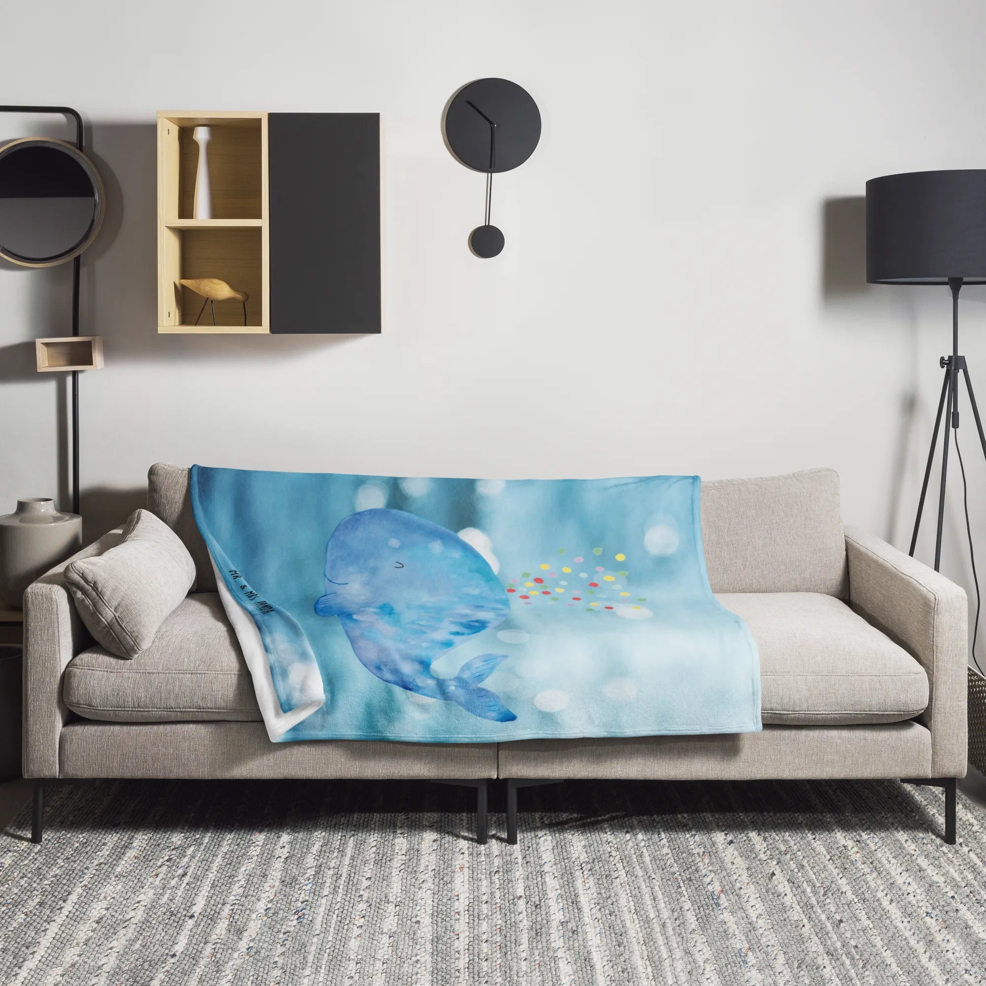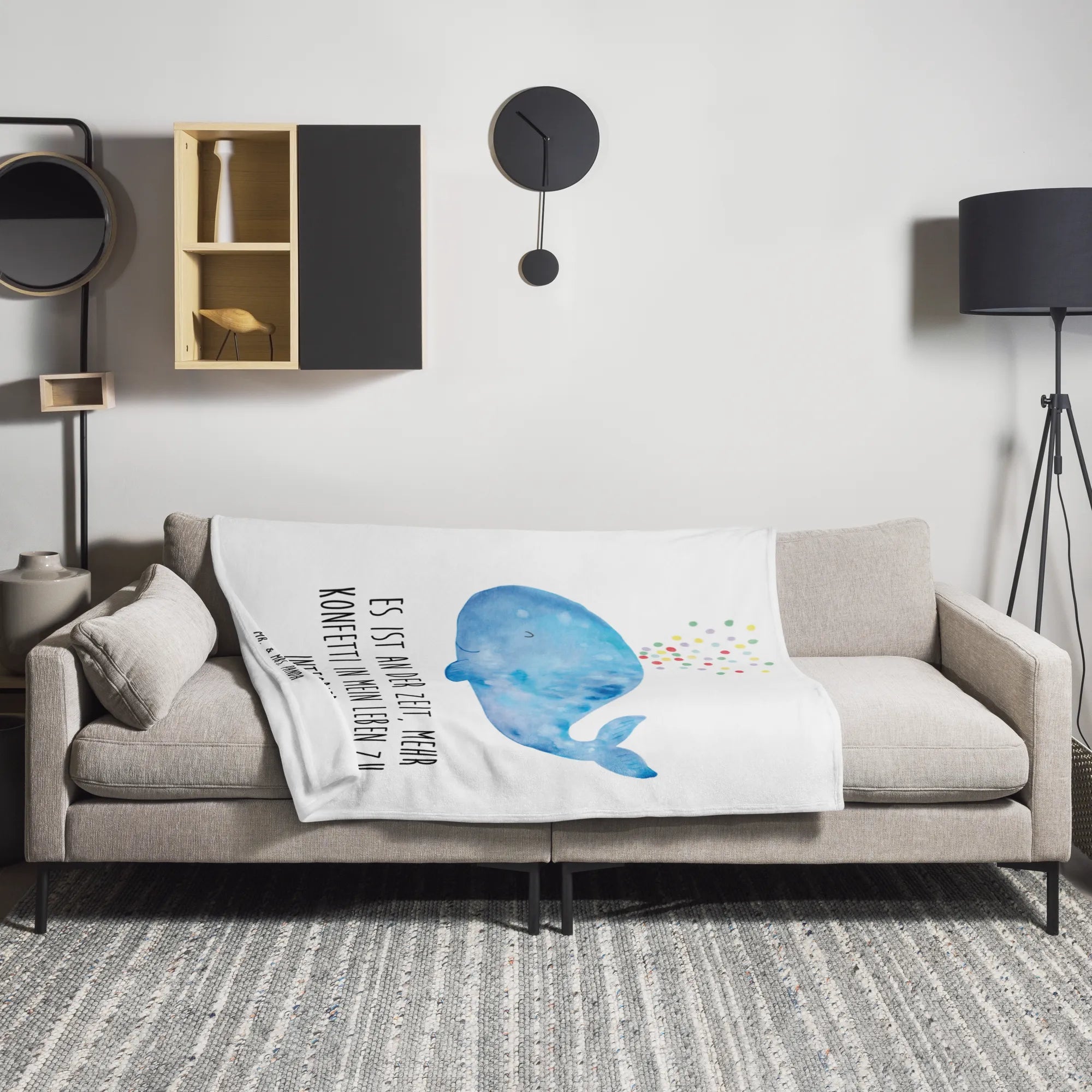 Die Kuscheldecke 'Wal Konfetti' von Mr. & Mrs. Panda ist wie eine warme Umarmung und bringt Freude in dein Zuhause. Mit ihrem zauberhaften Motiv eines freundlich lächelnden Wals, der von buntem Konfetti umgeben ist, strahlt sie pure Lebensfreude aus.