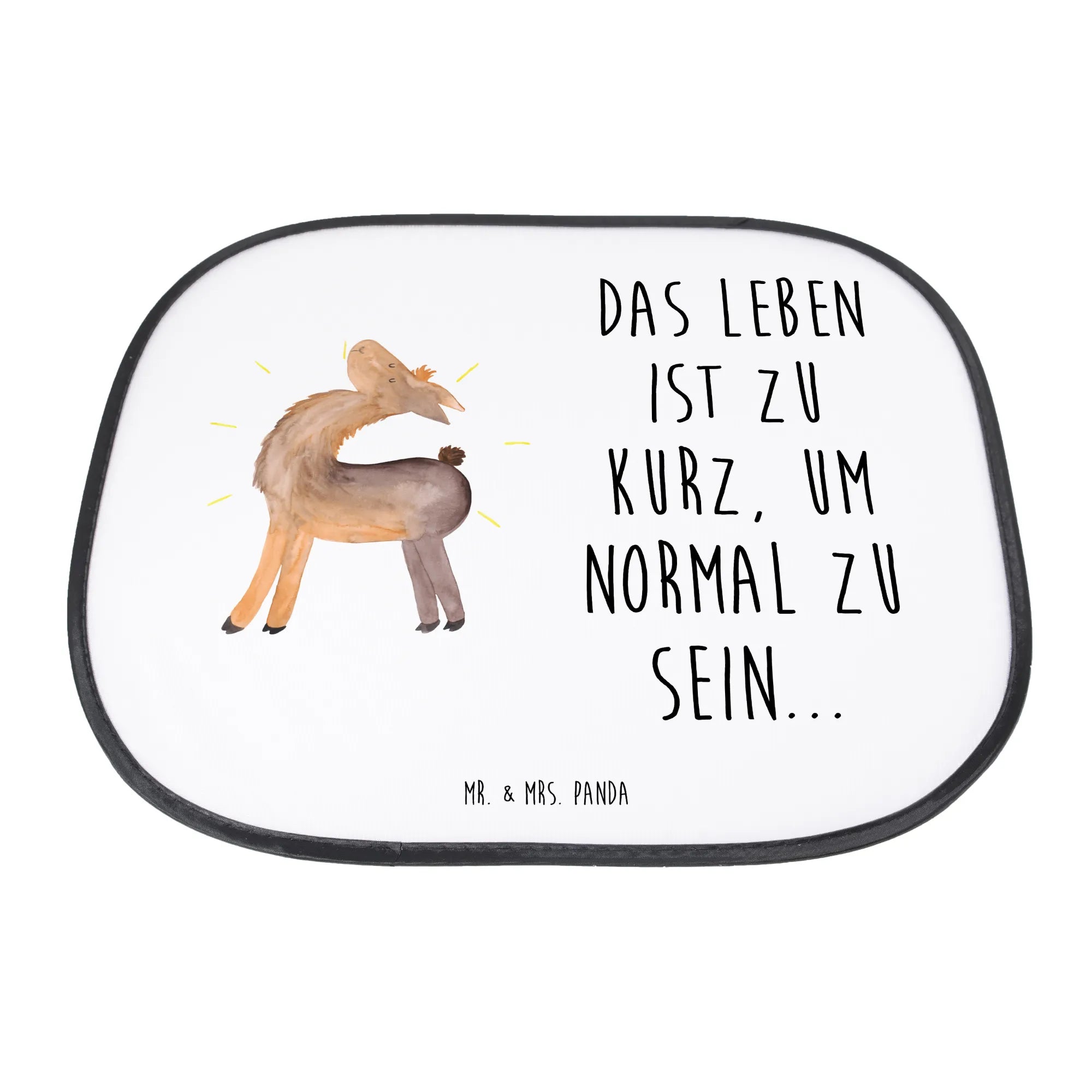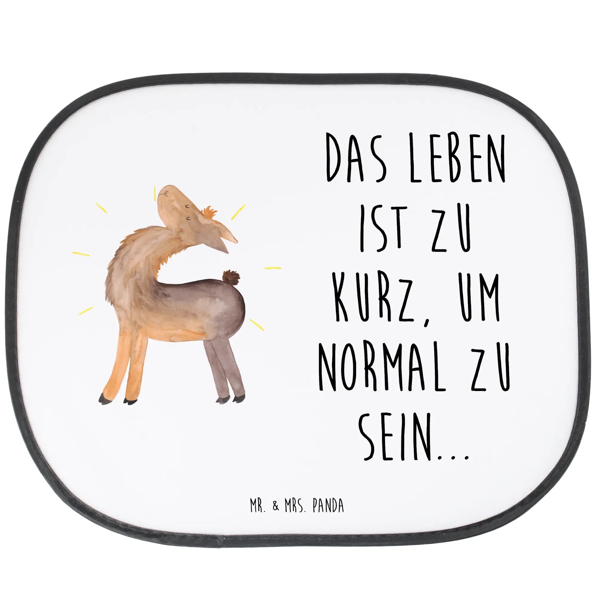 Mr. & Mrs. Panda Sonnenschutz Auto „Lama stolz“ – der perfekte Mix aus Funktion und Herz! Unser seitlicher Sonnenschutz bringt nicht nur effektiven Hitzeschutz und UV Schutz ins Auto, sondern auch gute Laune. Das handgezeichnete Lama mit dem stolzen Blick und dem Spruch „Das Leben ist zu kurz, um normal zu sein...“ macht jeden Fahrgast glücklich. 🌞