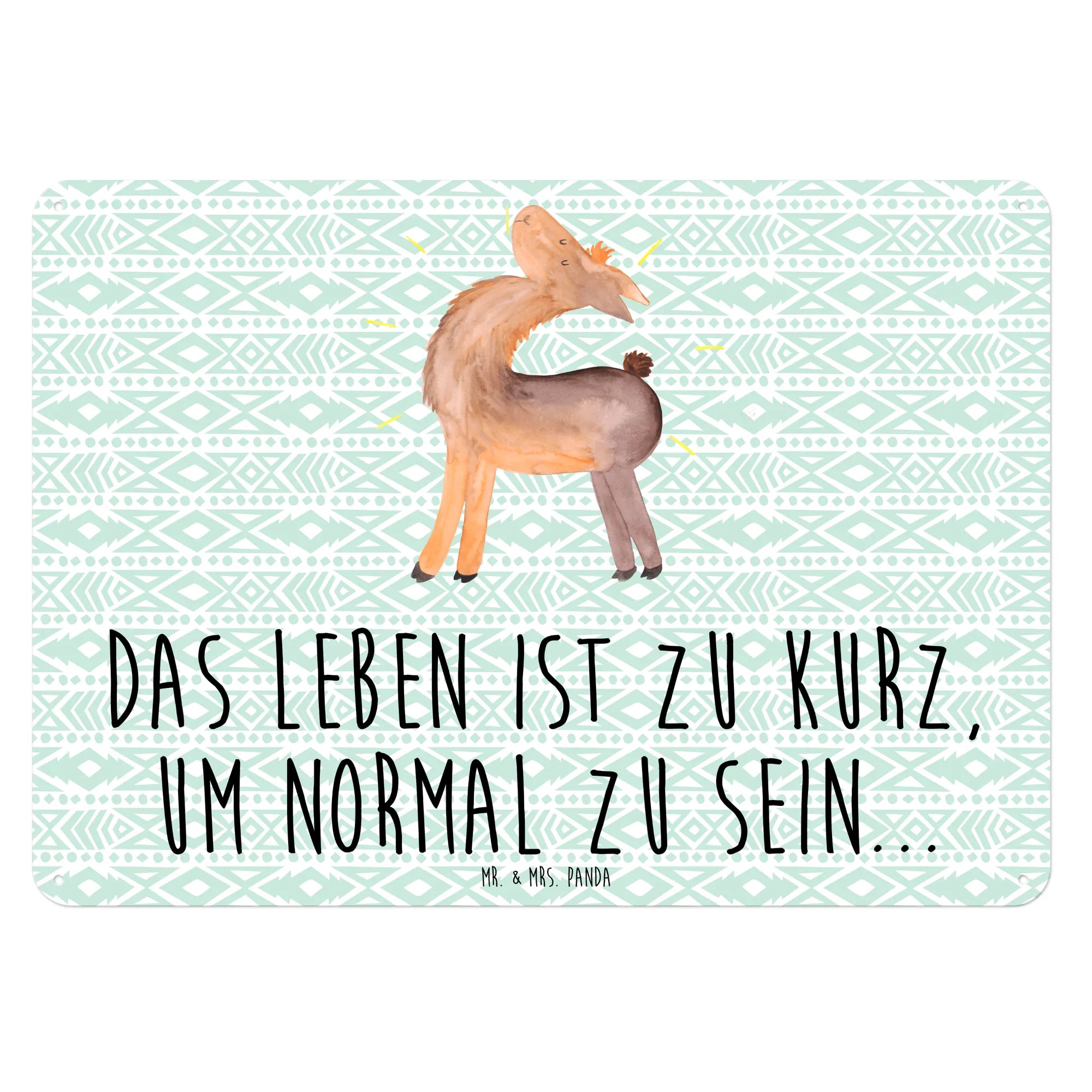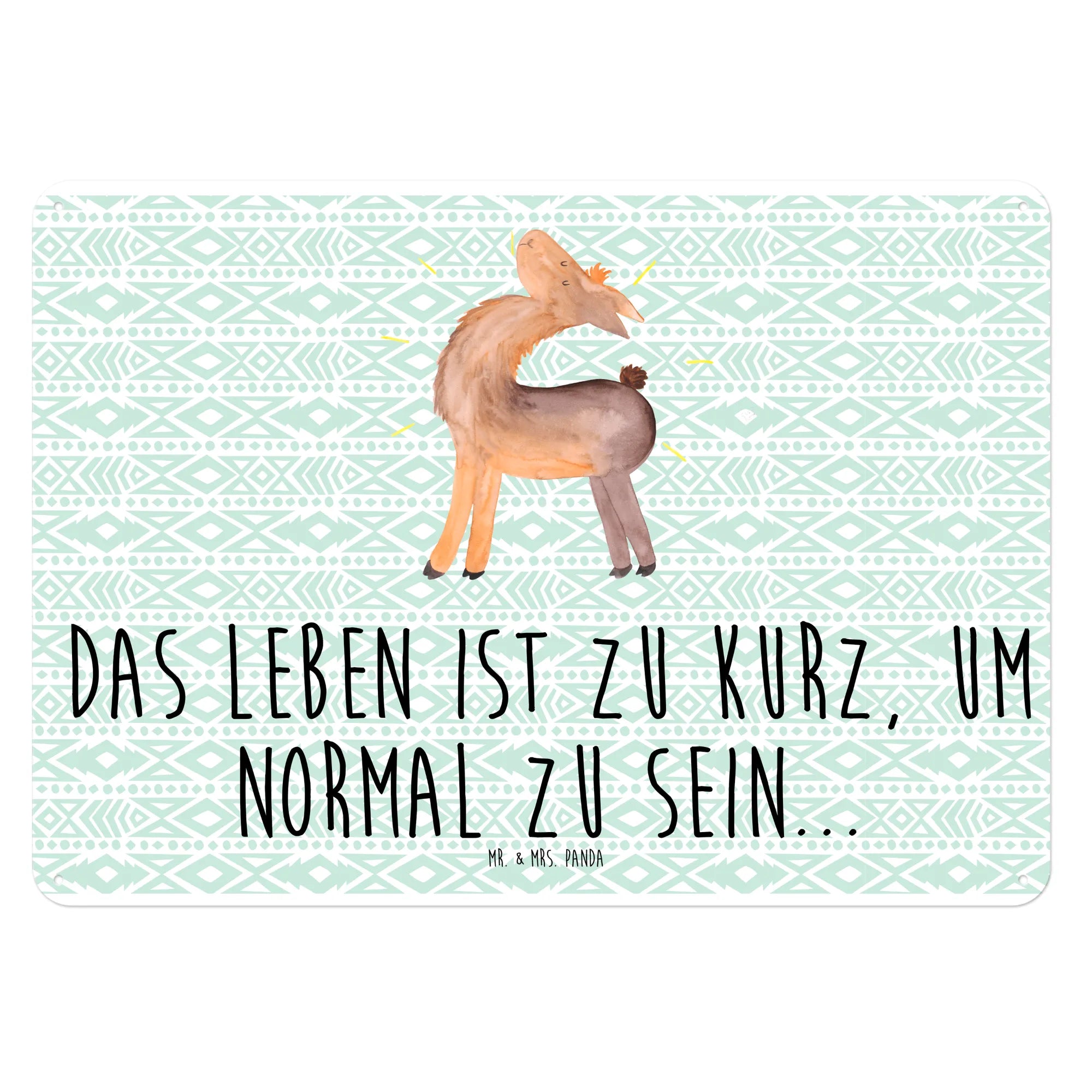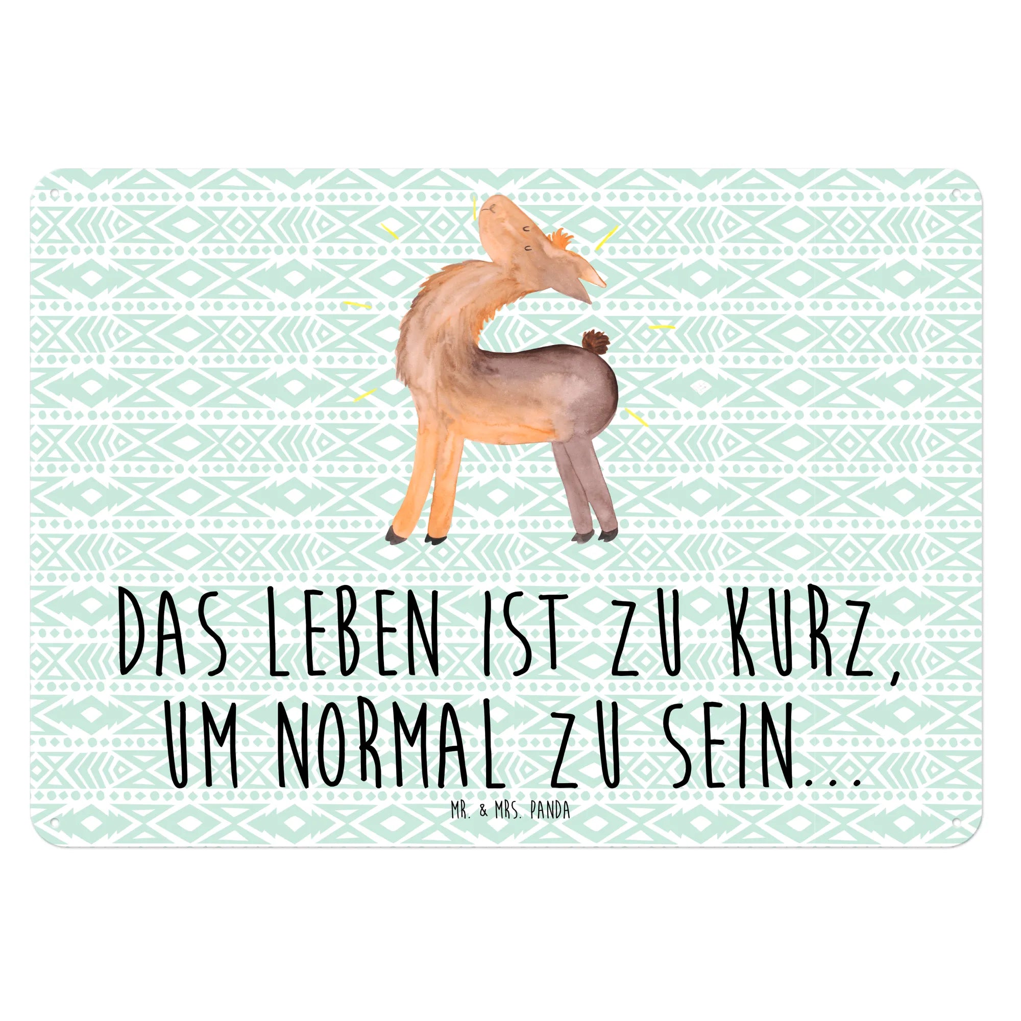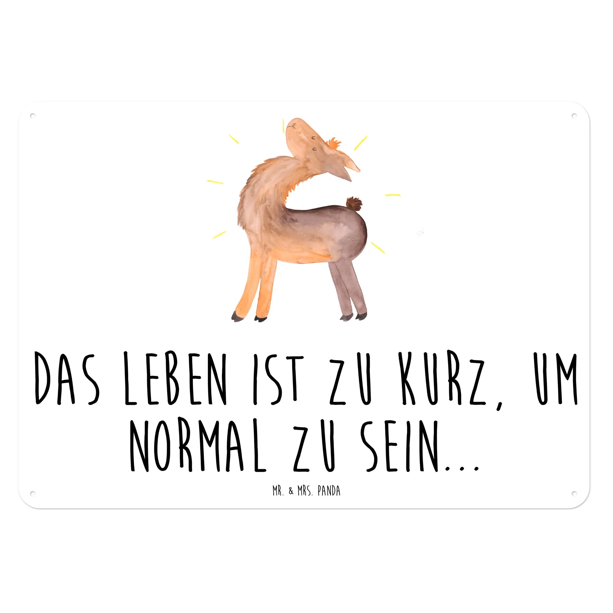 Das edle Blechschild Lama stolz von Mr. & Mrs. Panda ist die perfekte Wanddeko für alle Lama-Fans! Du liebst die coolen Lamas und bist stolz auf deine Andersartigkeit? Dann ist dieses Schild dein neues Lieblingsstück! Mit einem liebevoll von Hand gezeichneten Lama und dem Spruch "Das Leben ist zu kurz, um normal zu sein..." bringst du nicht nur Freude in dein Zuhause, sondern auch eine Portion Lebensfreude.