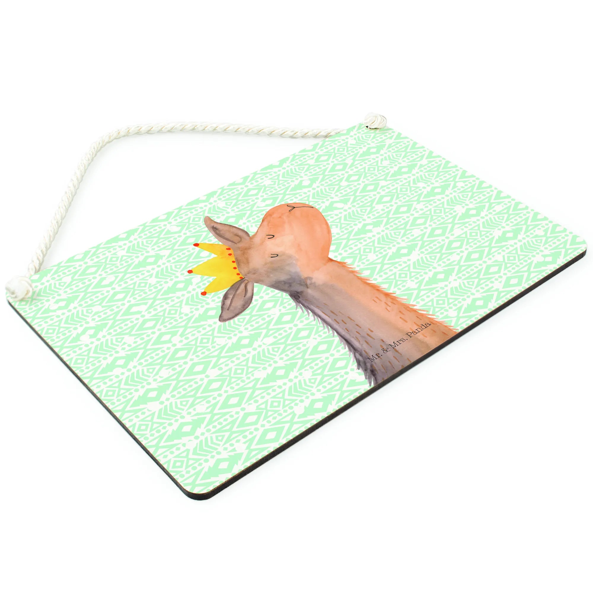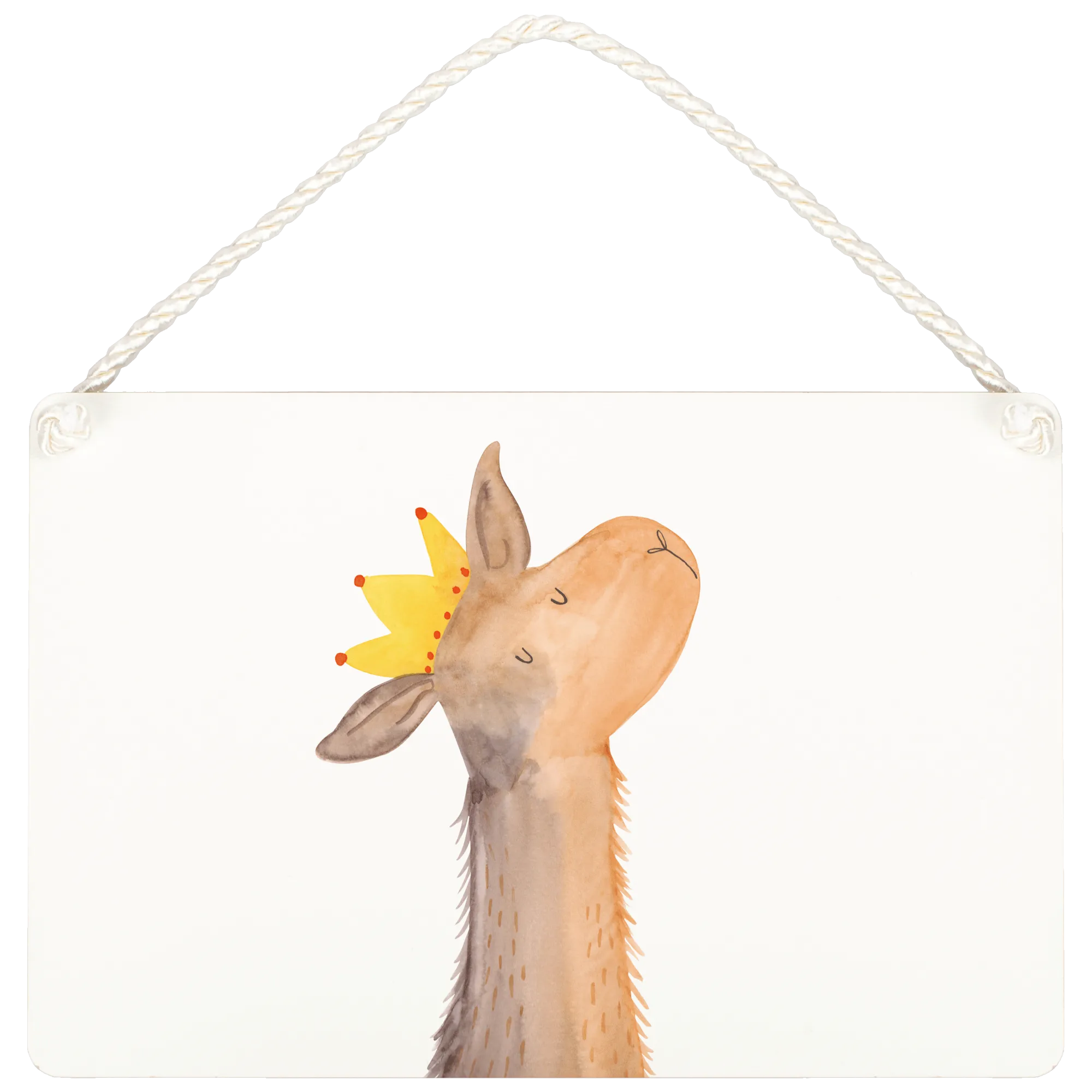 Das Deko Schild Lamakopf König von Mr. & Mrs. Panda ist der perfekte Begleiter für jedes Zuhause, Büro oder als Geschenk für Freunde und Familie. Mit einem charmanten Lama und einer Krone auf dem Kopf, strahlt dieses Schild pure Coolness und gute Laune aus.