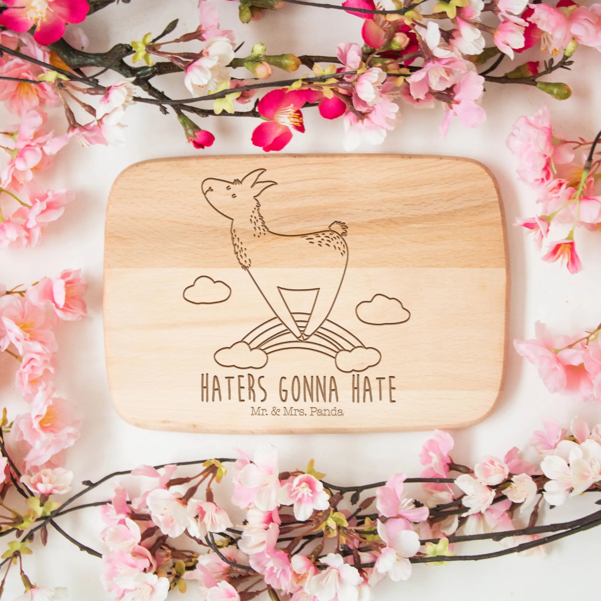 Frühstücksbrett Lama Regenbogen Frühstücksbrettchen, Frühstücksbrett, Holzbrett, Küchenbrett, Schneidebrett, Schneidebrett Holz, Lama, Alpaka, Wolkenland, Selbstständig, Haters, Hobby, Lamas, Regenbogen, Abi, Haters gonna hate, Freiheit, Außenseiter, Schule