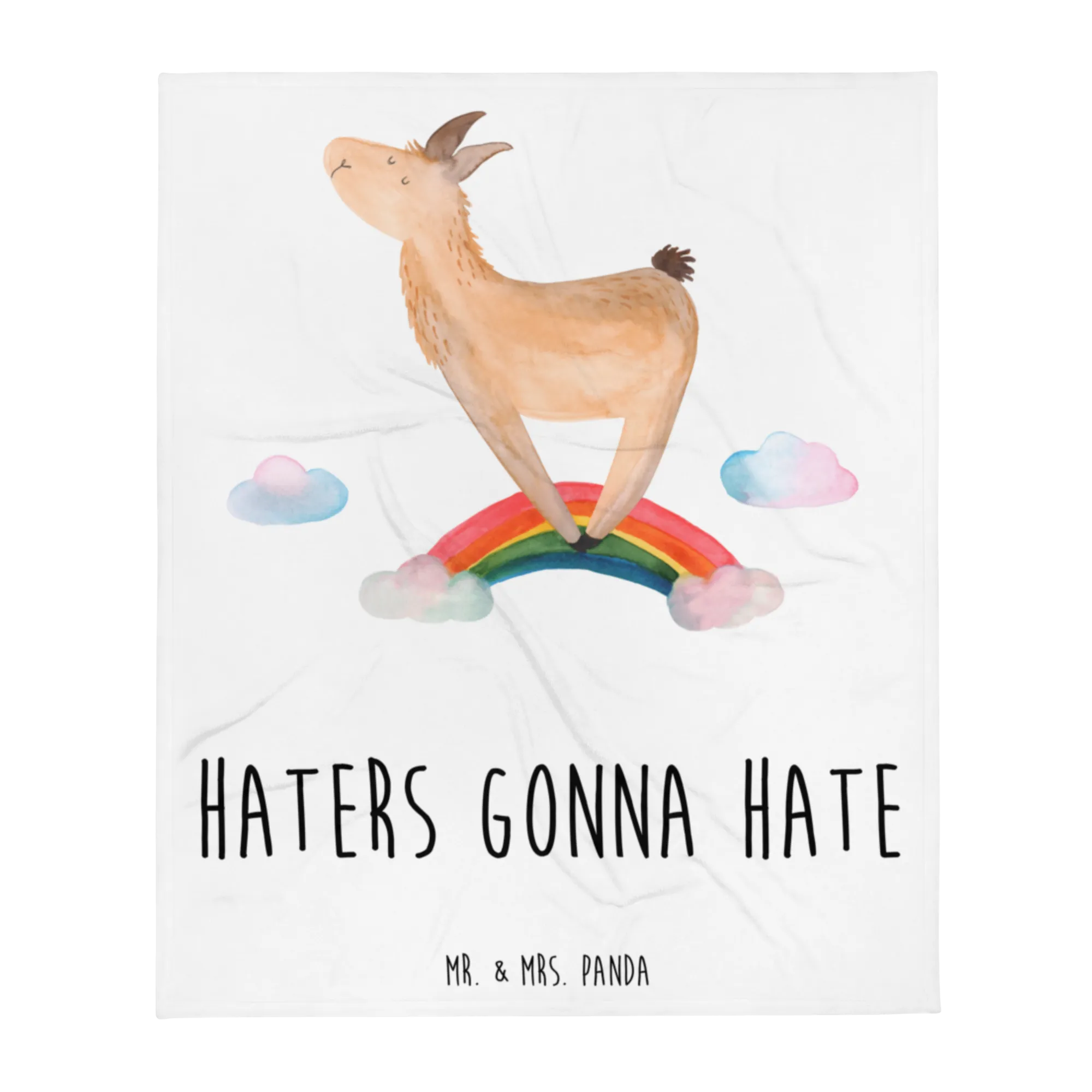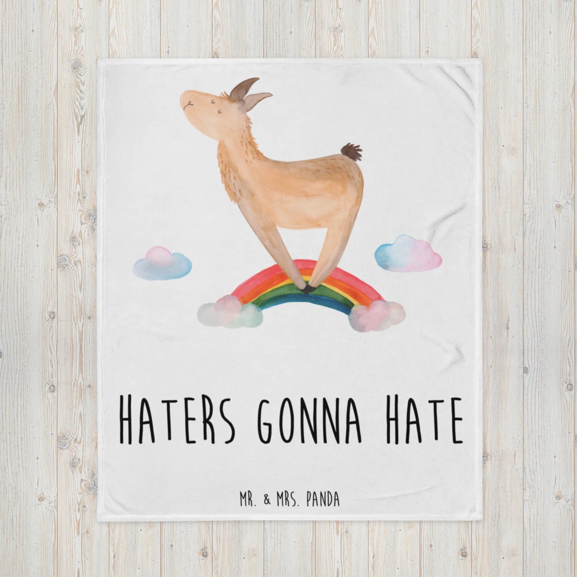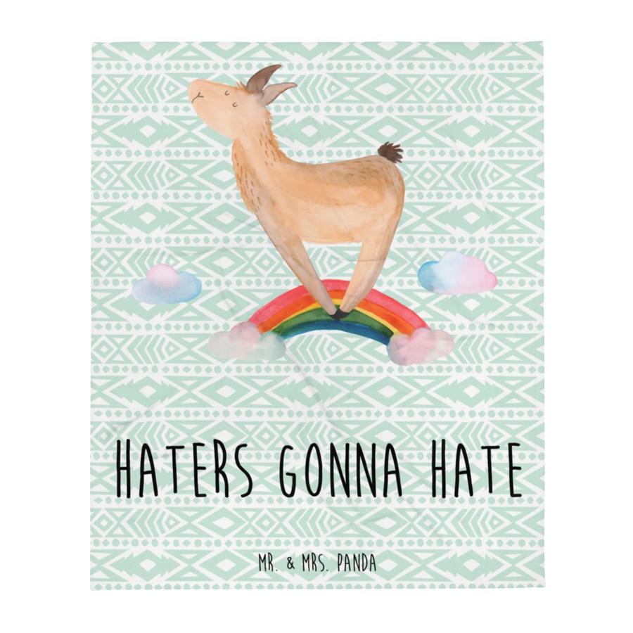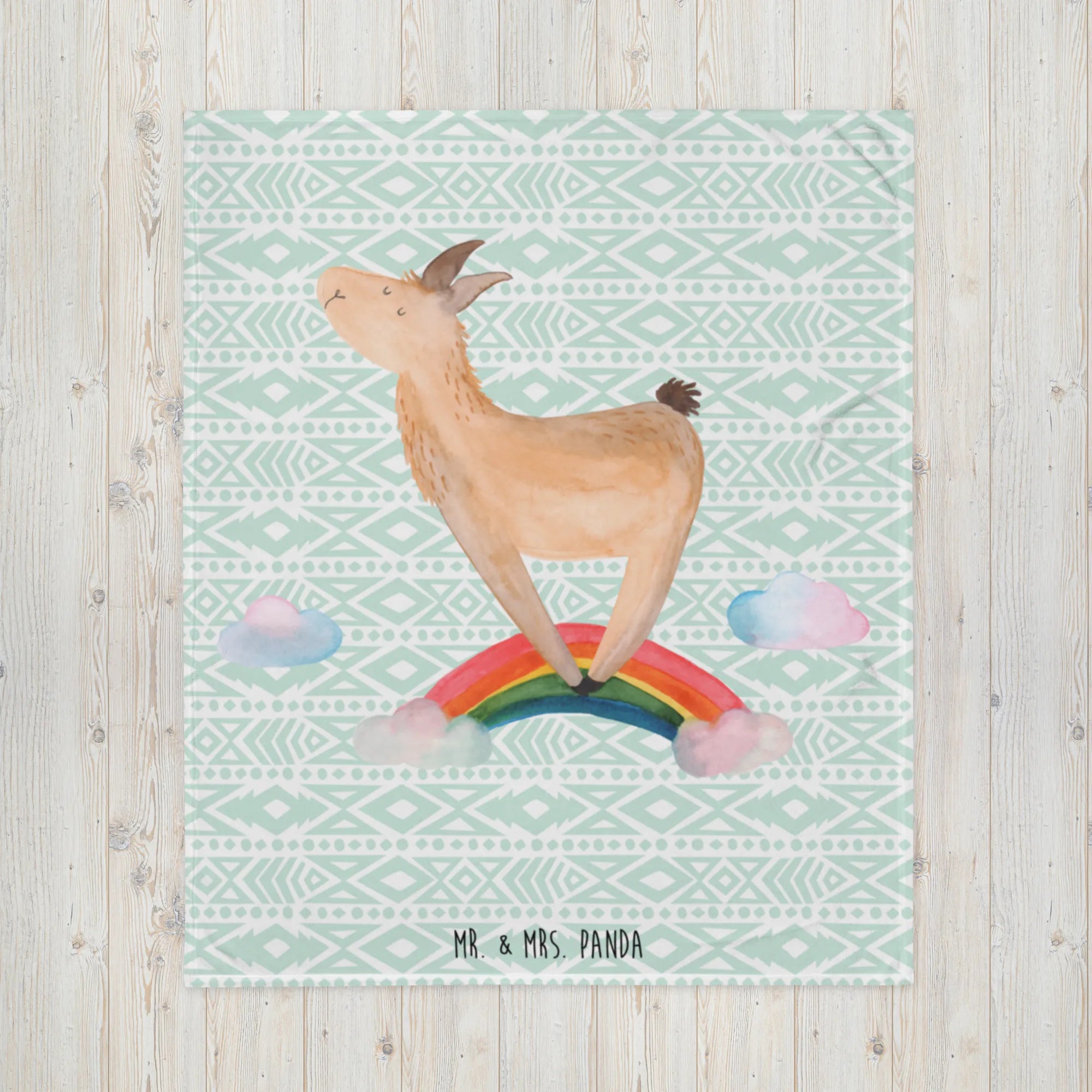 Kuscheldecke Lama Regenbogen - mit Spruch - Aztekenblau