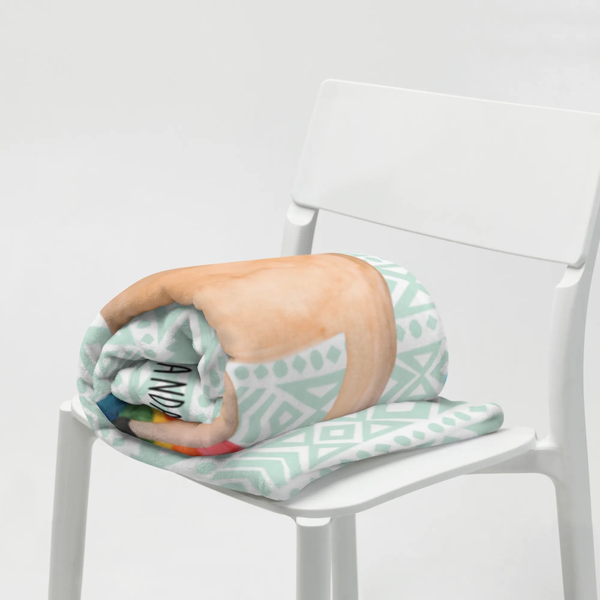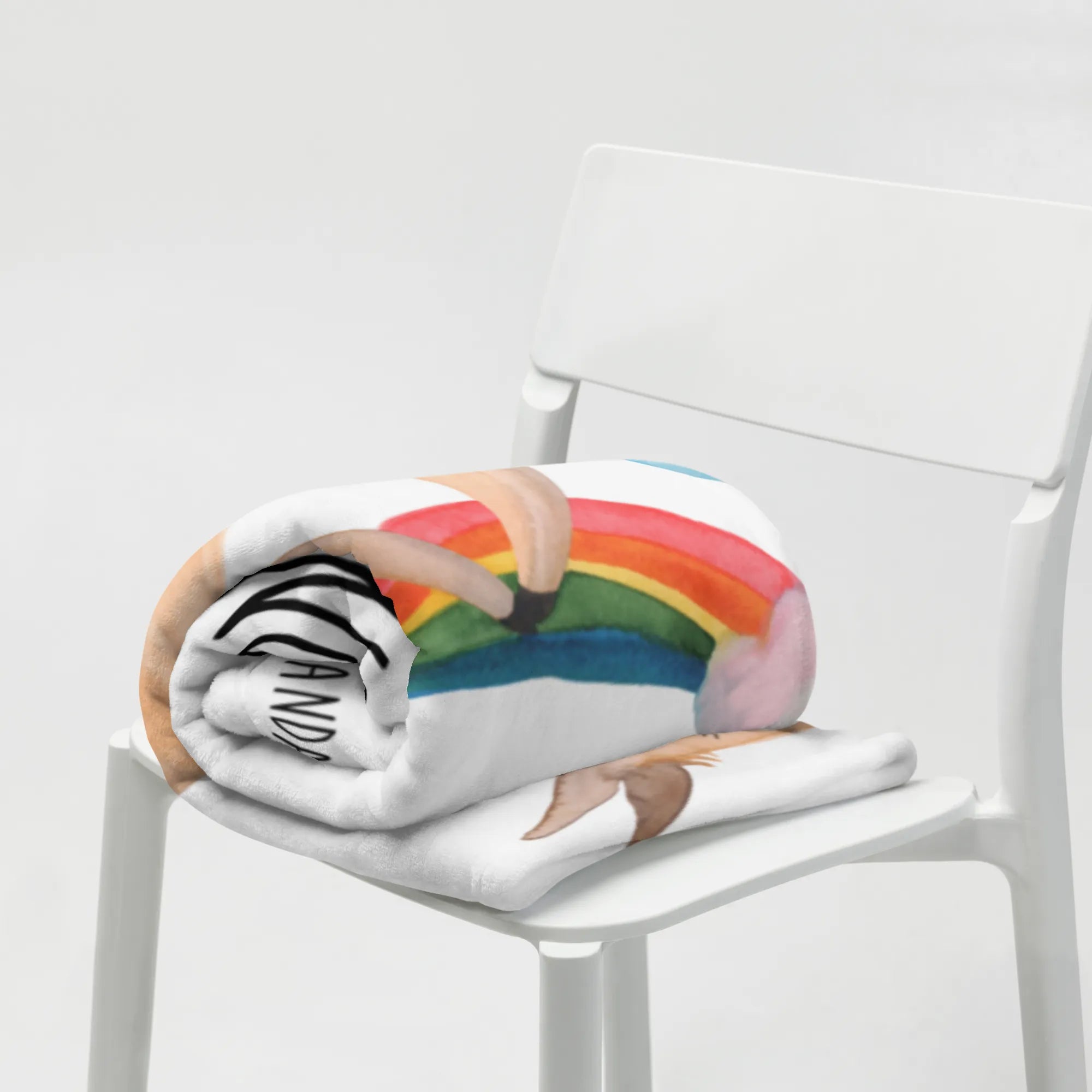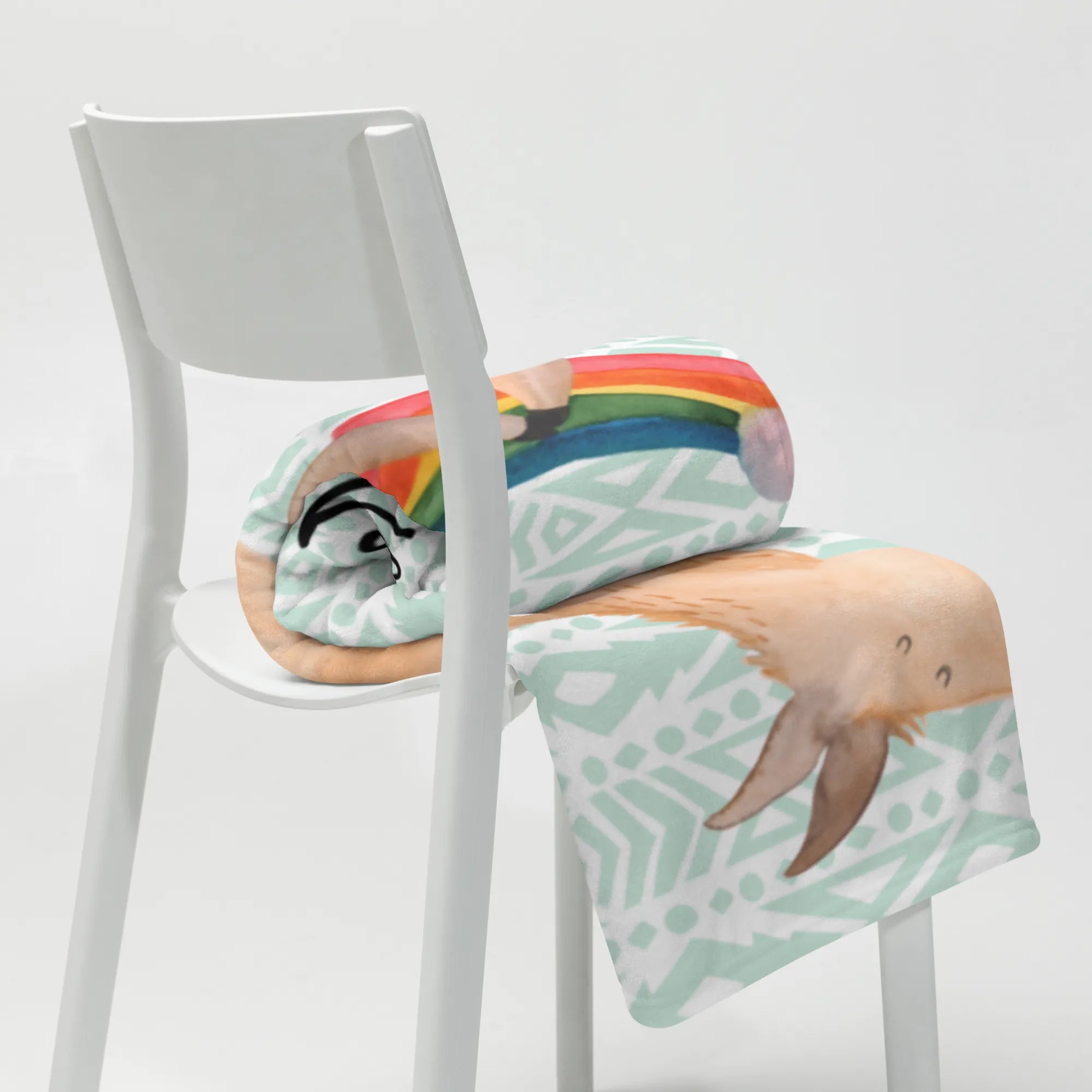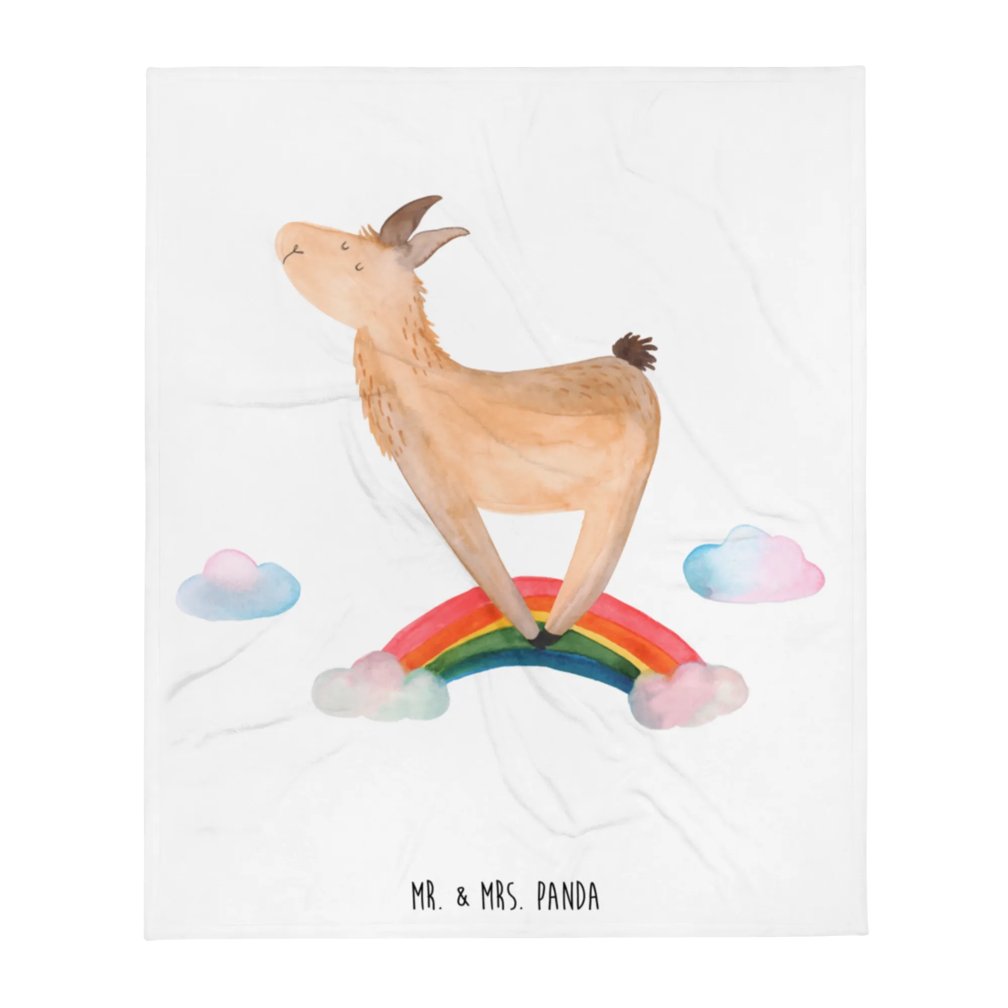 Kuscheldecke Lama Regenbogen - mit Spruch - Aztekenblau