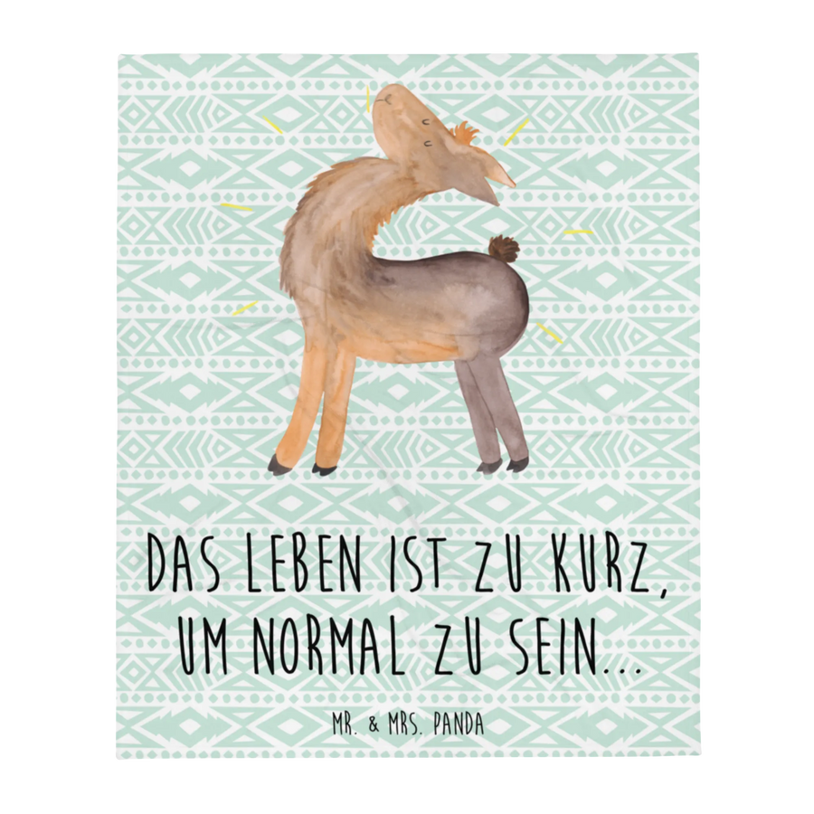 Kuscheldecke Lama stolz - mit Spruch - Aztekenblau