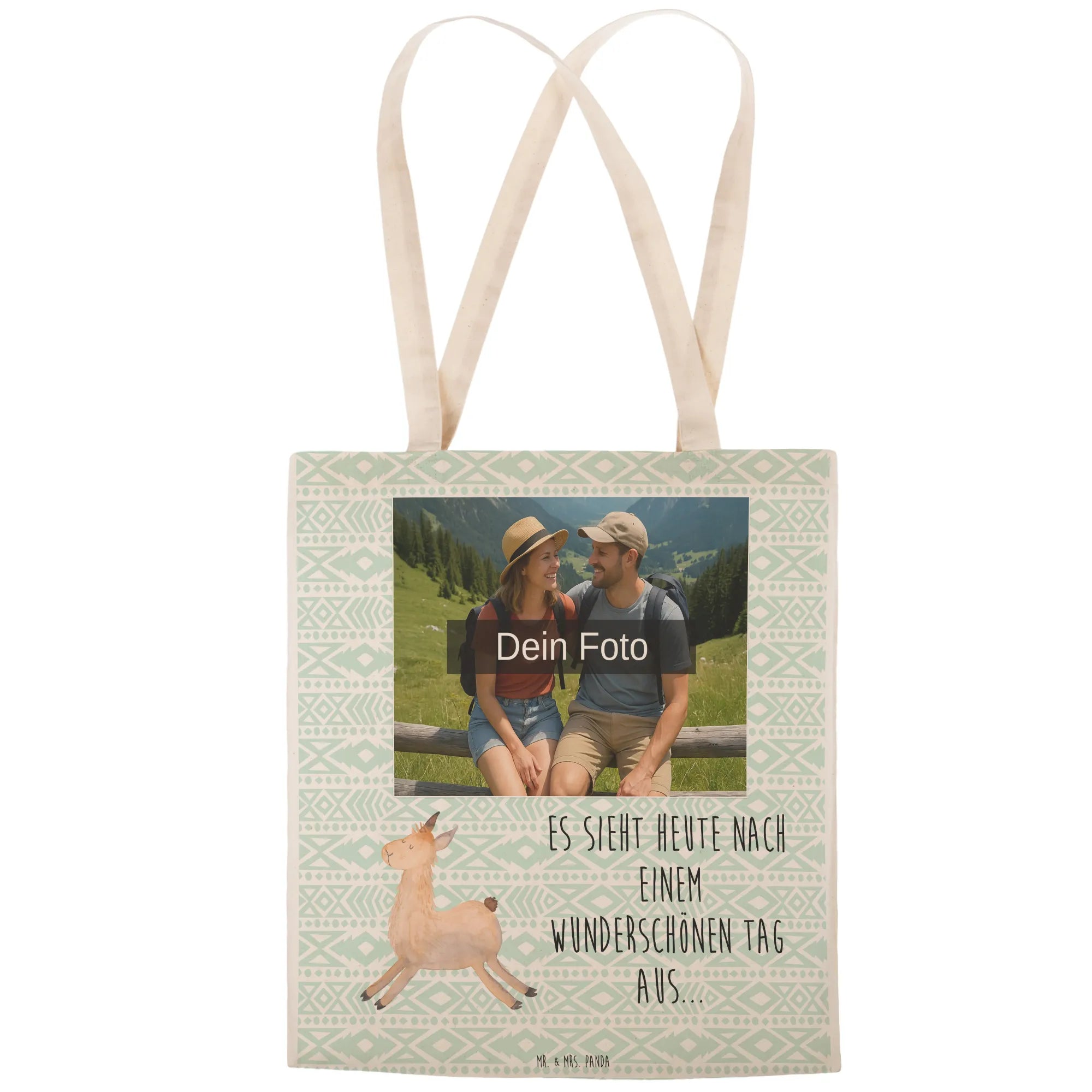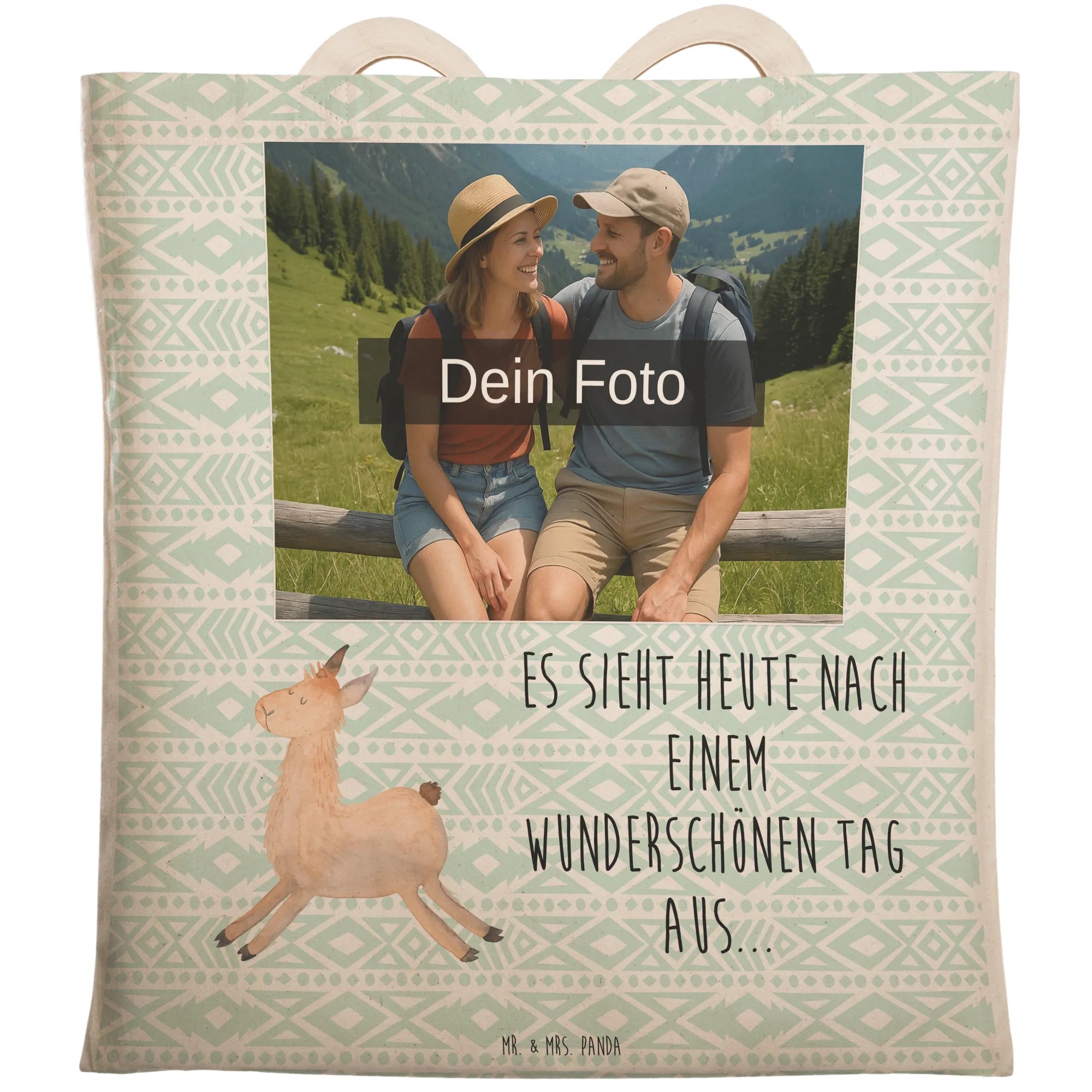 Personalisierte Foto Einkaufstasche Lama Springen