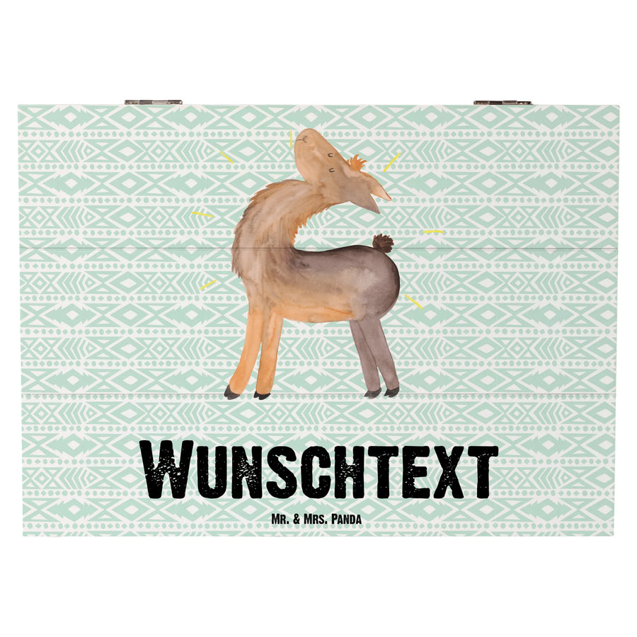 Personalisierte Holzkiste Lama Stolz - 25 x 18 cm - Aztekenblau