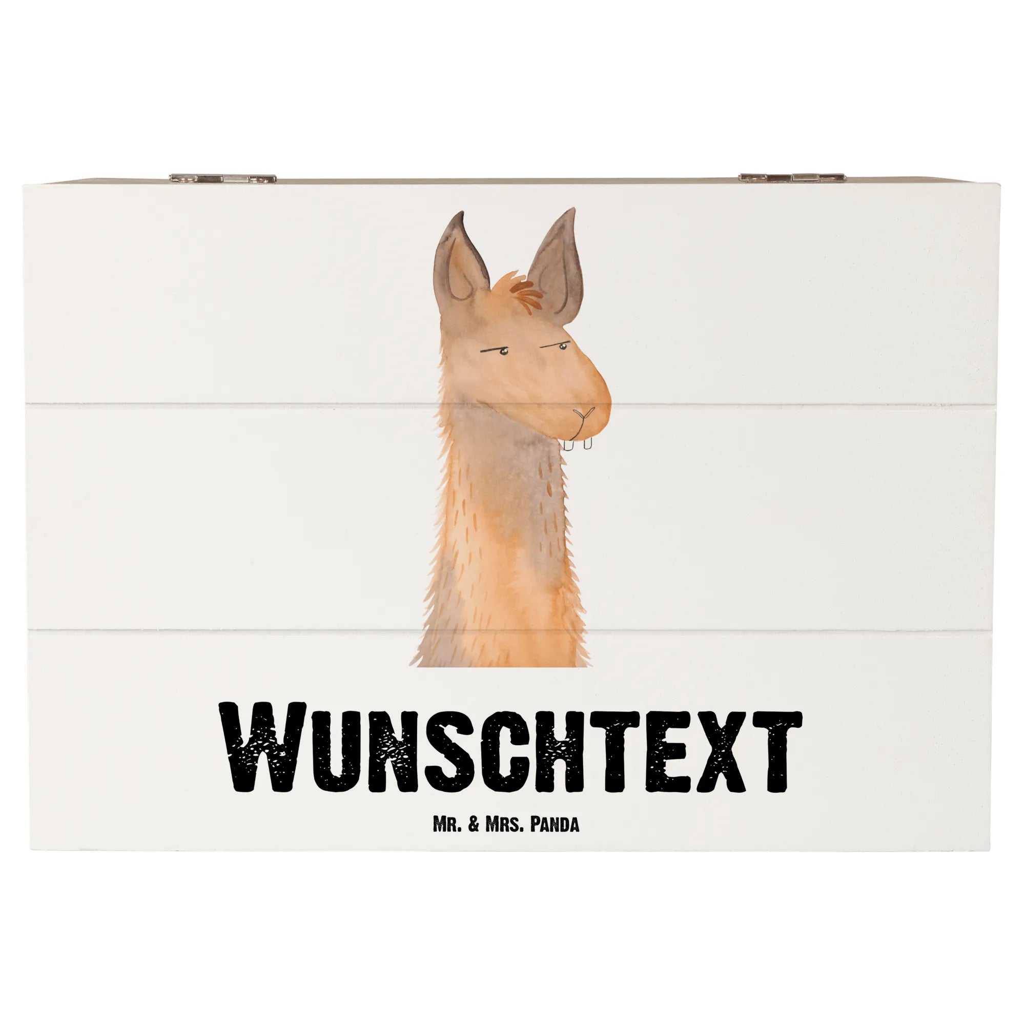 Du bist auf der Suche nach einem ganz besonderen Geschenk für einen lieben Menschen? Unsere personalisierte Holzkiste mit dem Lamakopf, der genervt zur Seite guckt, ist nicht nur ein echter Hingucker, sondern auch ein ganz persönliches und emotionales Geschenk! Die Holzkiste wird von Mr. & Mrs. Panda aus hochwertiger, stabiler Holzfaser hergestellt und ist perfekt geeignet, um deine wertvollsten Erinnerungen, Überraschungen oder alltäglichen Schätze stilvoll aufzubewahren.