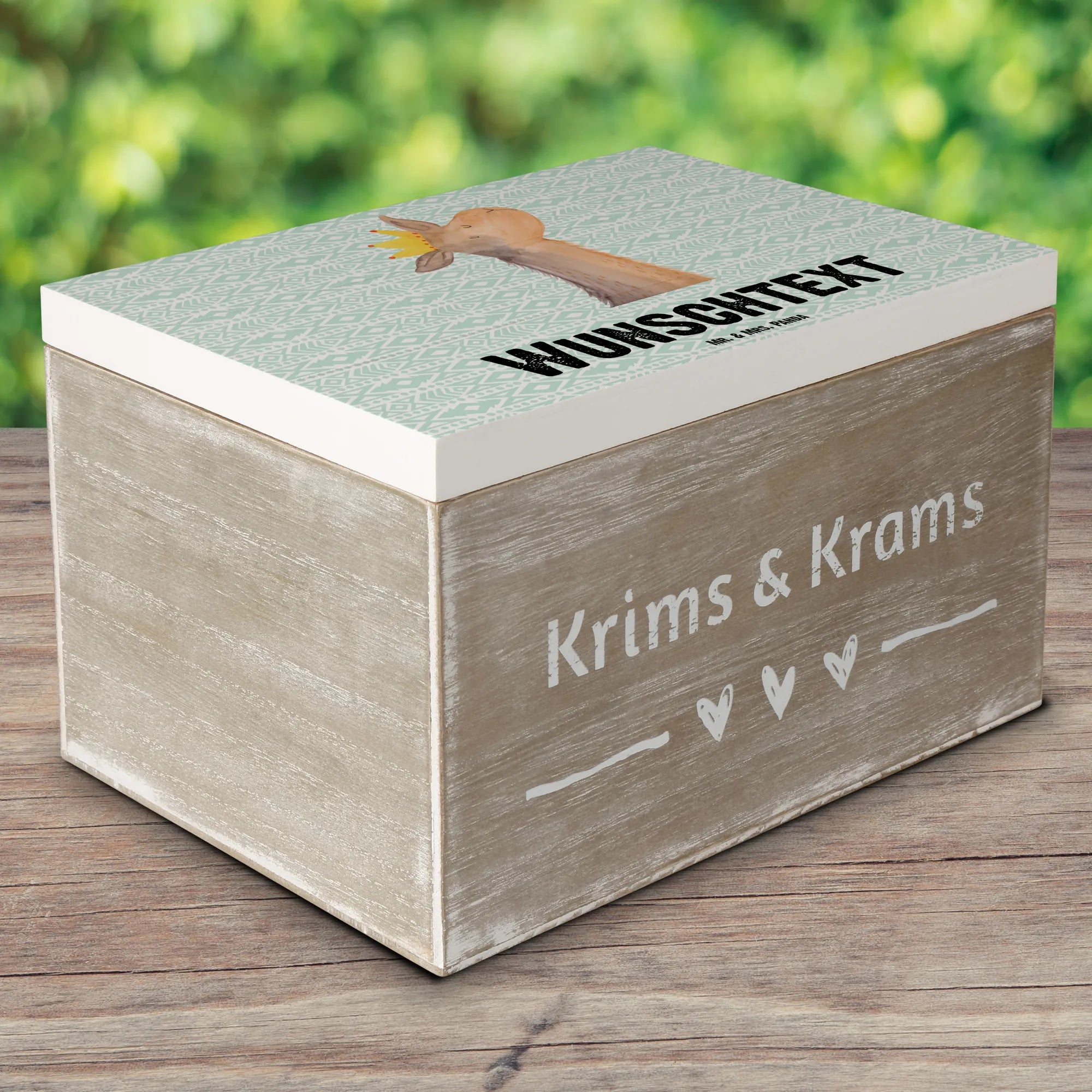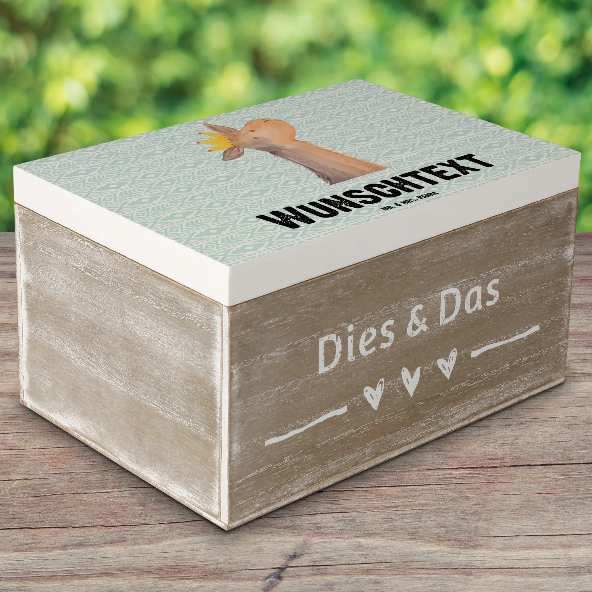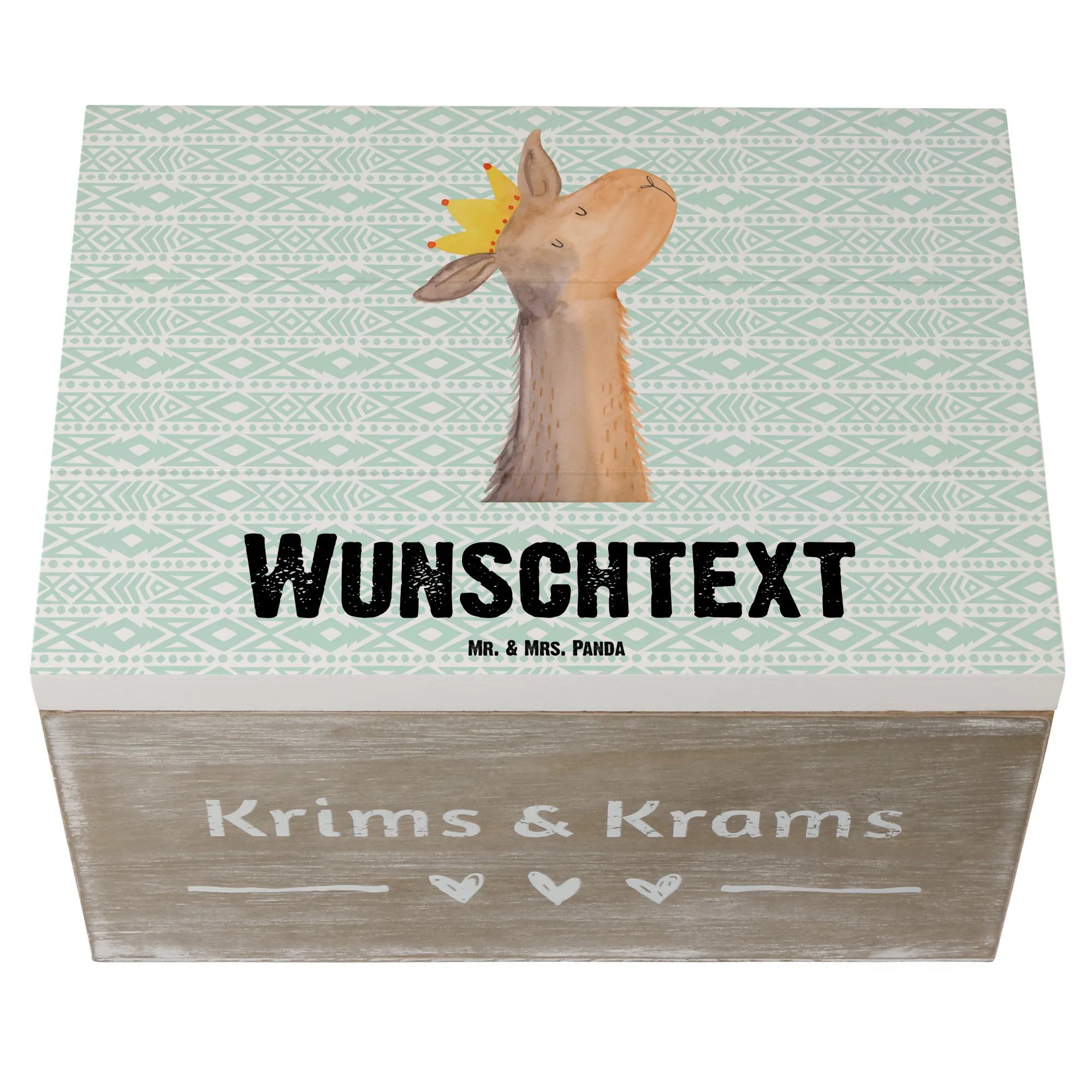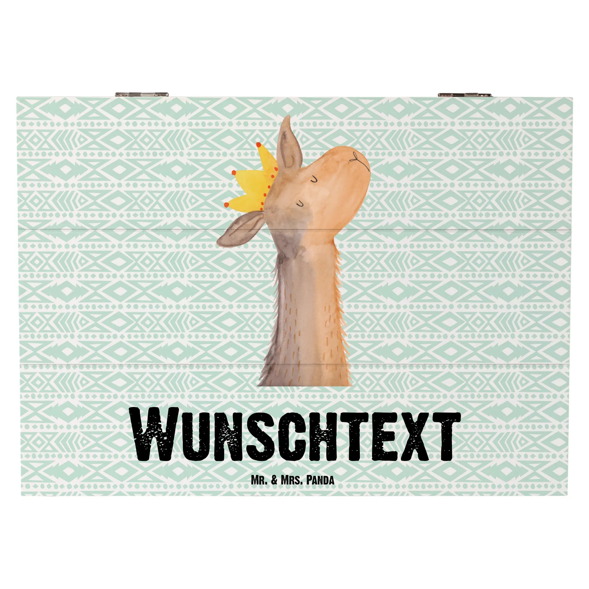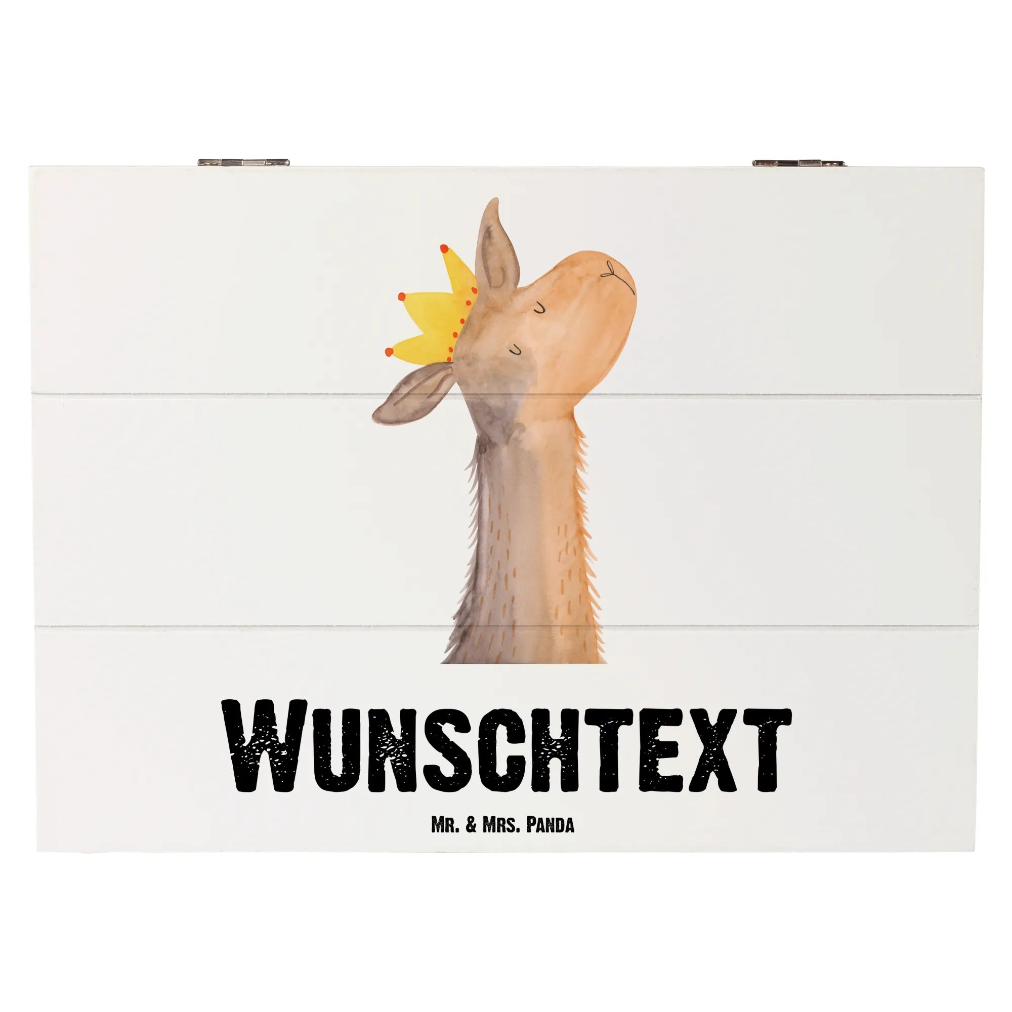 Suchst du das perfekte Geschenk für einen Lama-Fan oder möchtest du deine eigenen Schätze stilvoll aufbewahren? Die personalisierte Holzkiste mit dem süßen Lamakopf König aus der beliebten Lama-Kollektion von Mr. & Mrs. Panda ist genau das richtige für dich!
