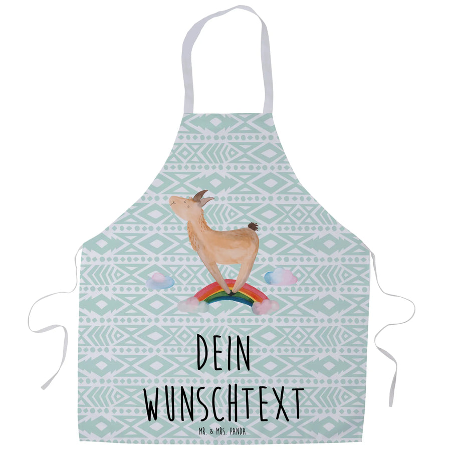 Personalisierte Kochschürze Lama Regenbogen - Aztekenblau