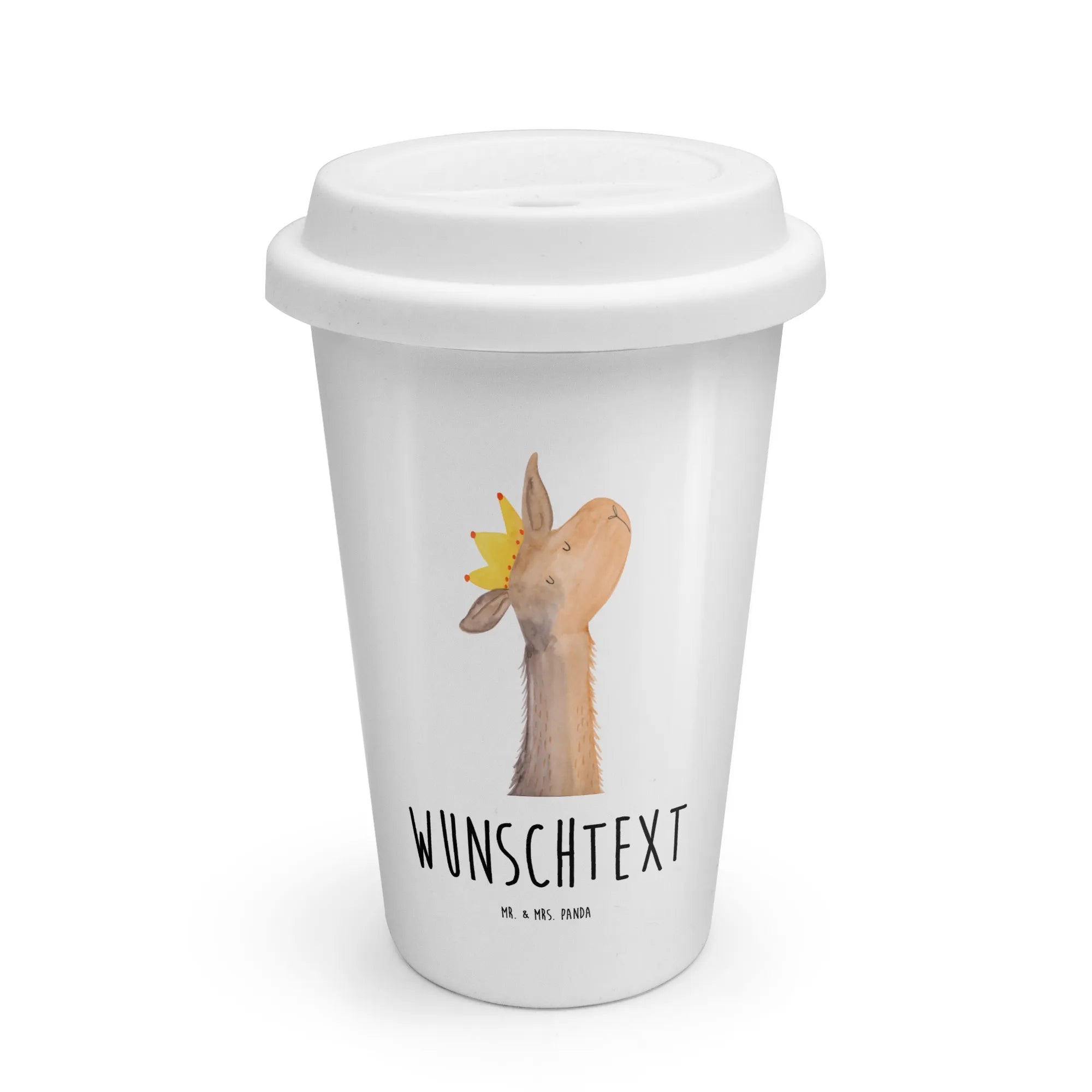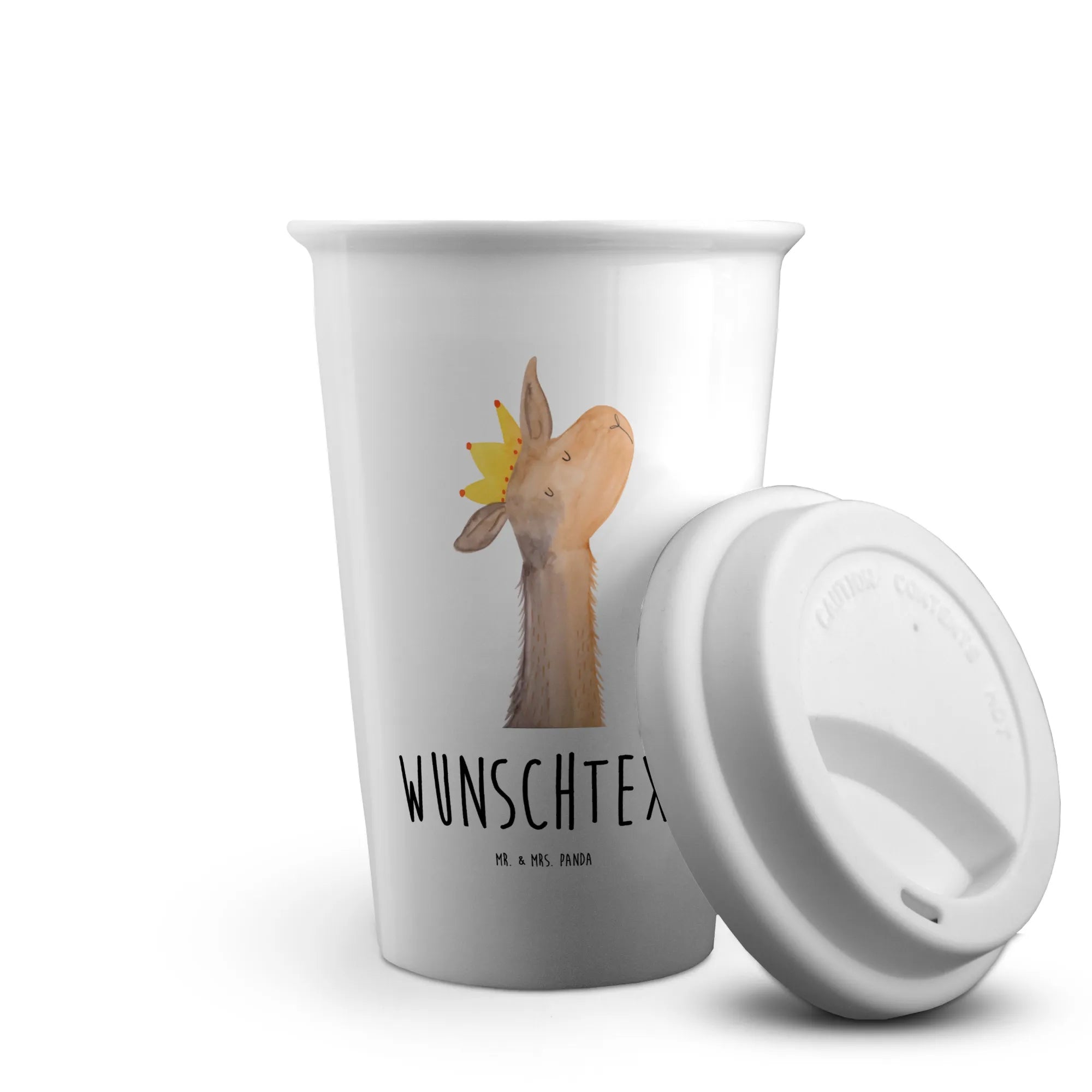 Entdecke den perfekten Begleiter für deinen Kaffeegenuss unterwegs – den personalisierten To Go Becher mit dem tollen Lamakopf König Motiv von Mr. & Mrs. Panda!