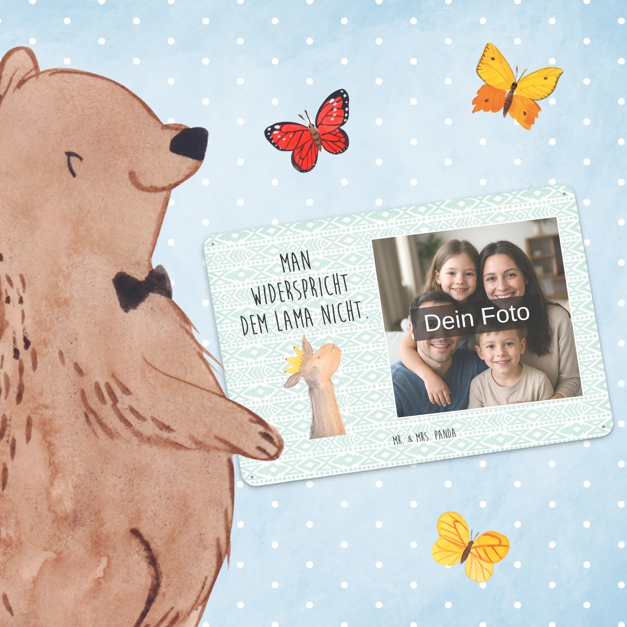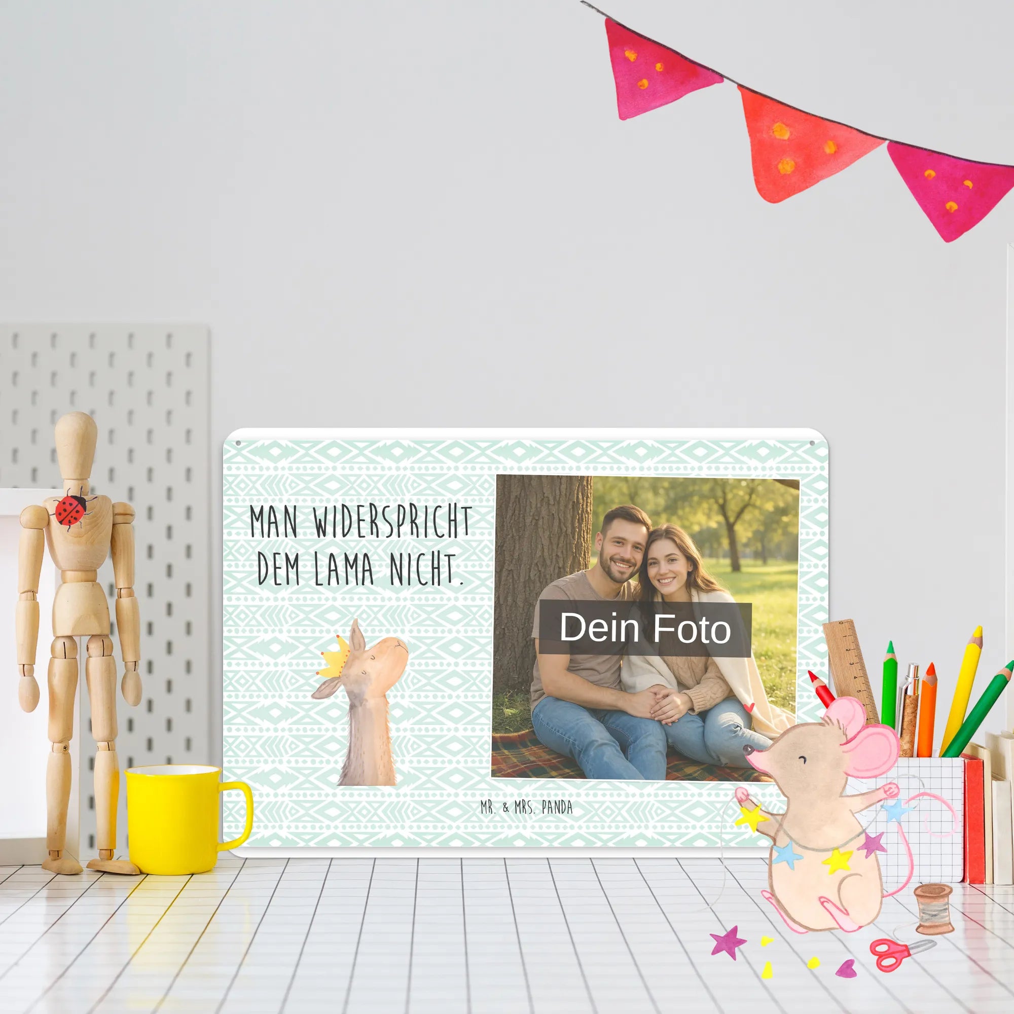 Personalisiertes Foto Blechschild Lamakopf König - DIN A6