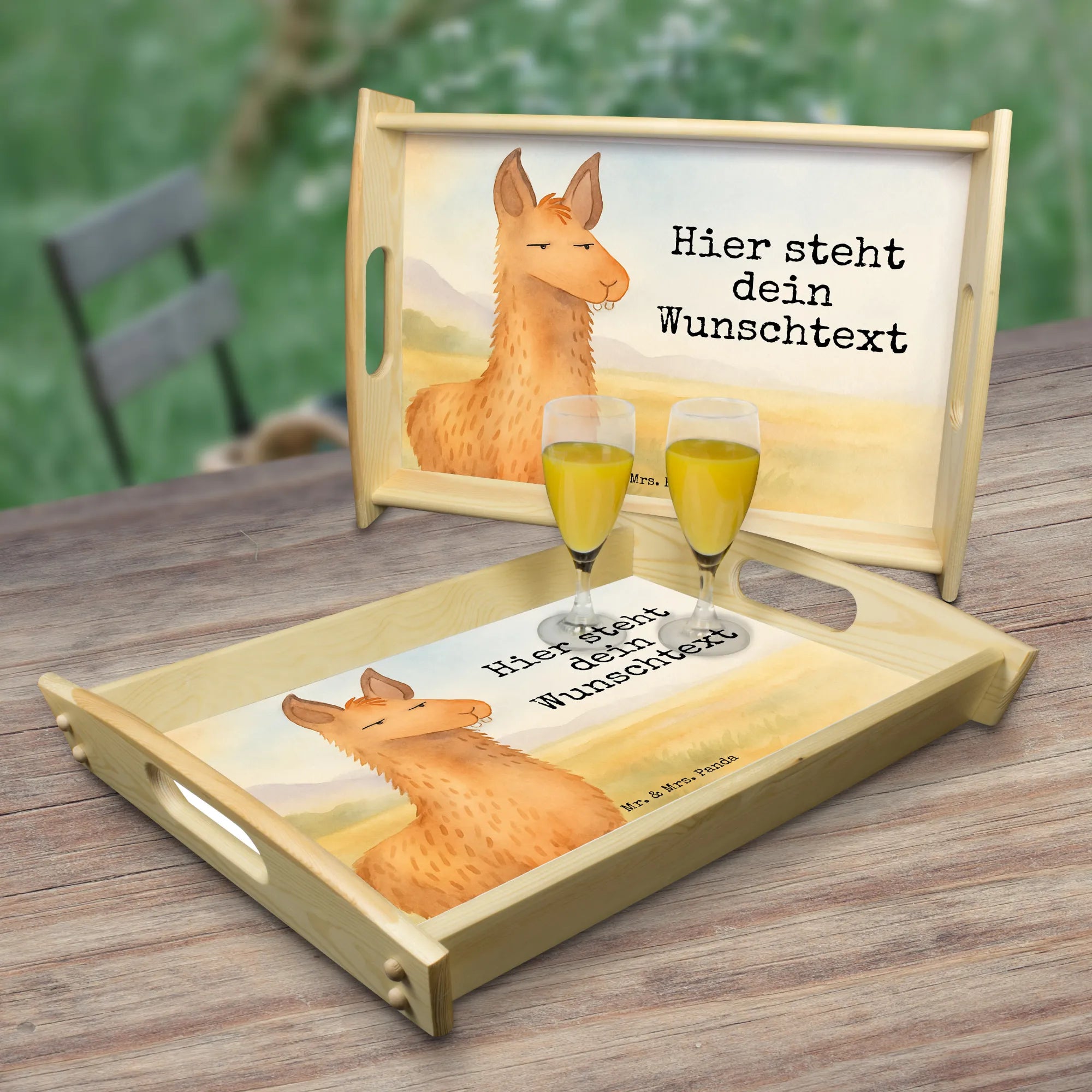 Personalisiertes Serviertablett Lamakopf Genervt Design – Mr. & Mrs. Panda