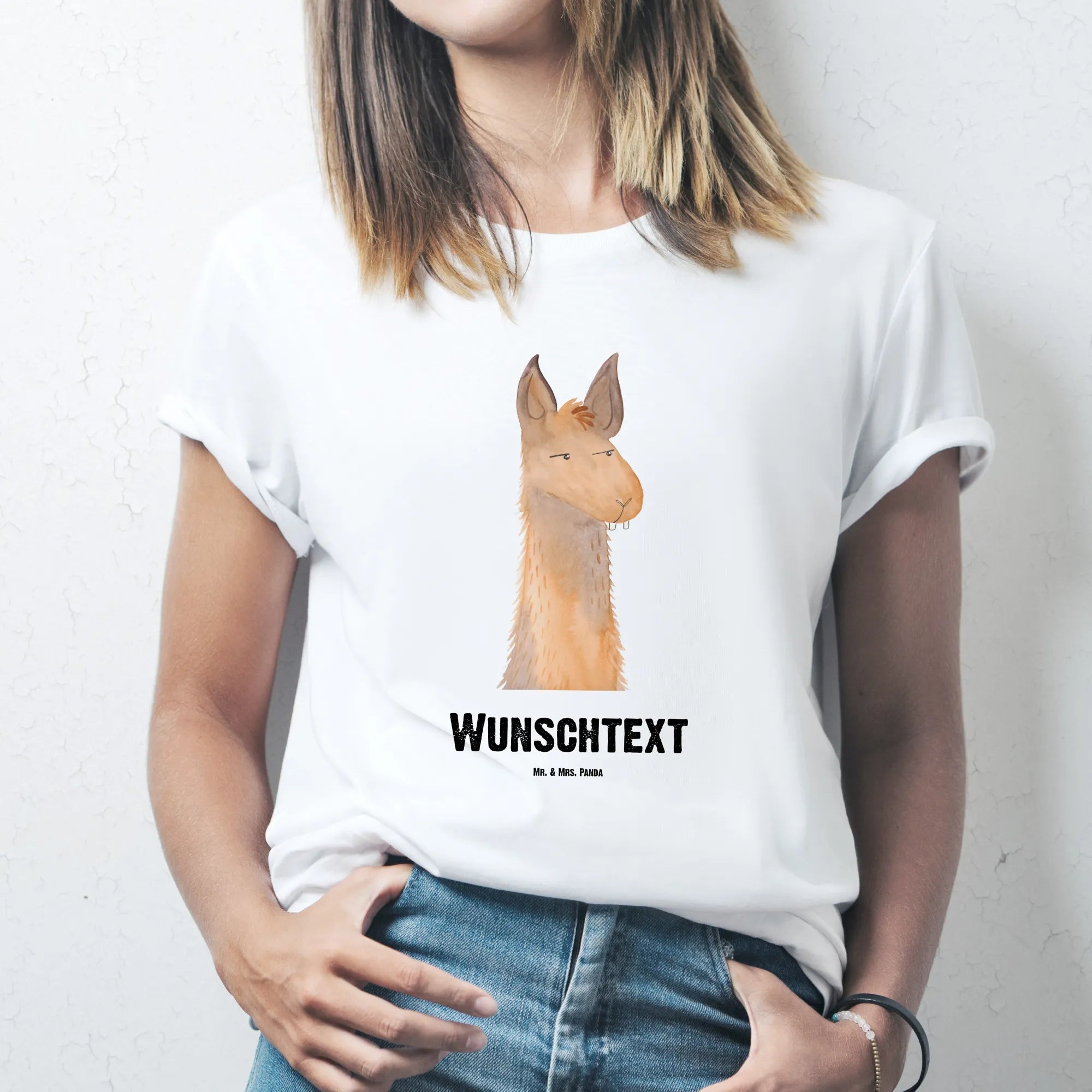 Jedes T-Shirt wird mit Liebe von Mr. & Mrs. Panda entworfen und hergestellt, um dir ein Stückchen Freude in den Alltag zu bringen. Hol dir jetzt dein Größe M Personalisiertes T-Shirt mit dem Lamakopf genervt und setze ein Statement!